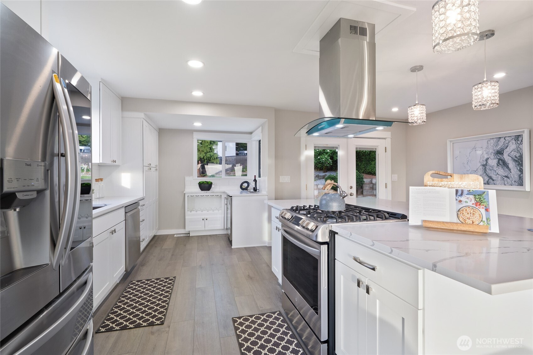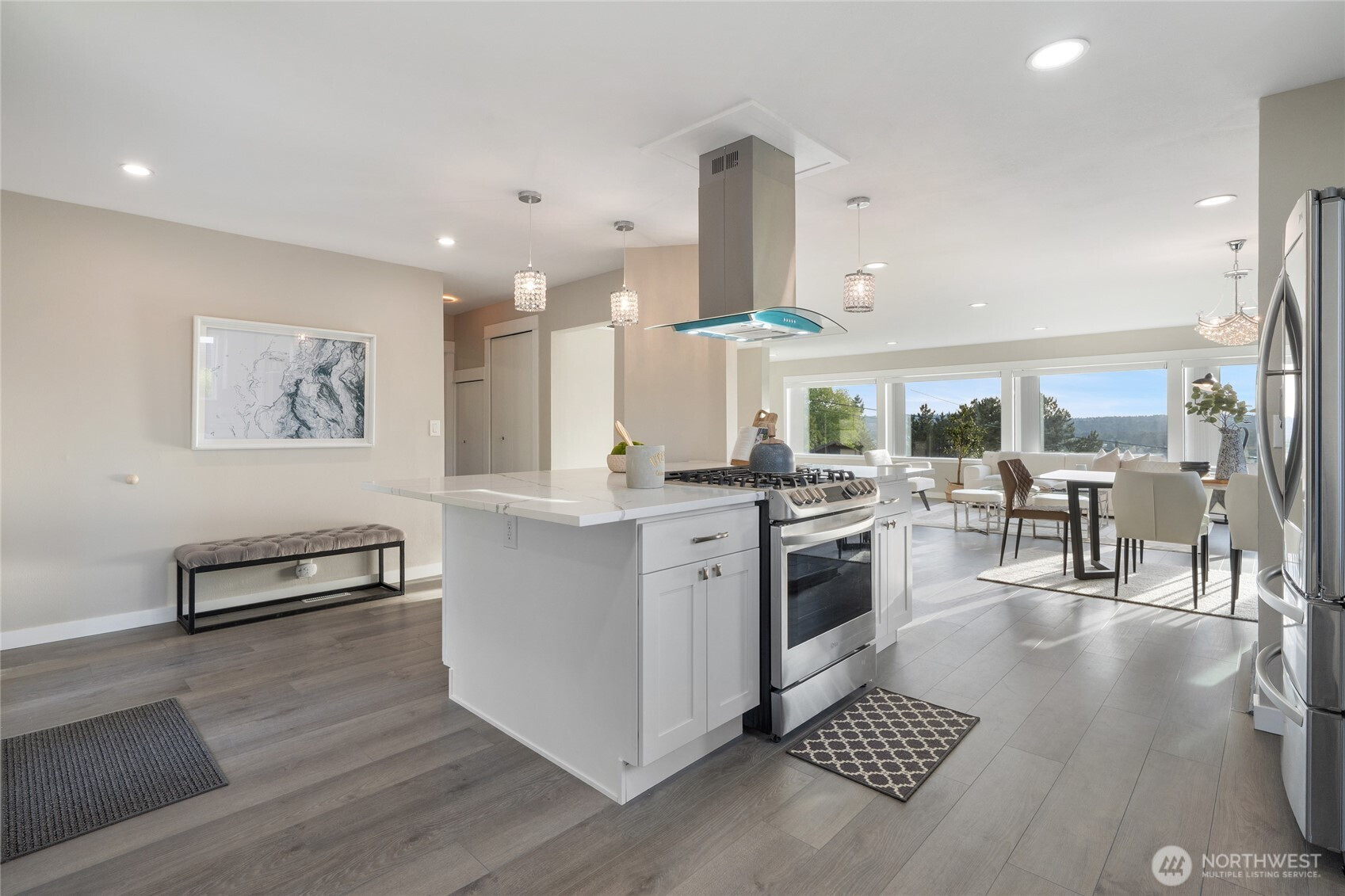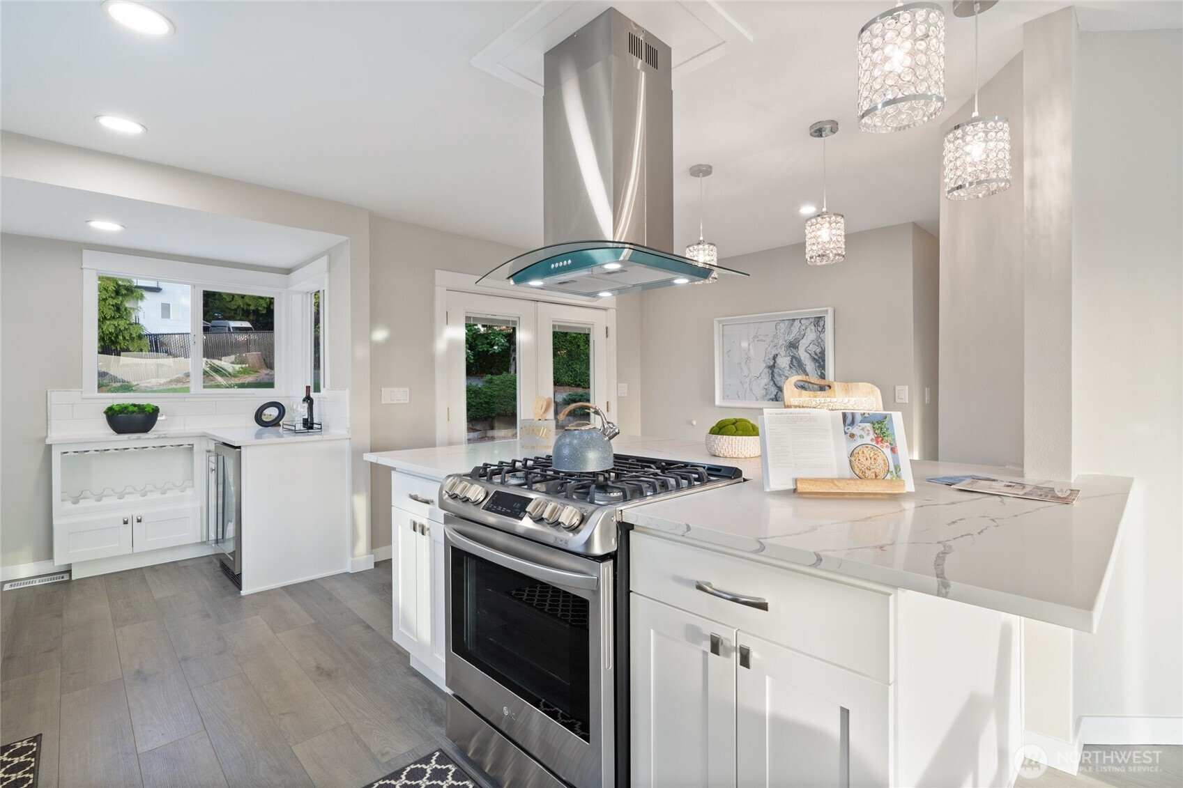 Amazing views of Lake Washington and City of Seattle + Magnificent Sunsets! Indulge in contemporary luxury at this old world charm home sitting on Historic Renton Hill. Home features a stunning kitchen w/quartz countertops, SS appliances, wine bar & ample storage. Natural lighting throughout the open living area, enhanced by a gas fireplace with 2 bedrooms and primary bedroom upstairs. The lower level has koi pond and own separate entry with a kitchen, ¾ bathroom and laundry room, perfect for rental or guest stay. Beautifully maintained backyard with in ground lighting, great for entertaining. Convenient location close to shopping, restaurants, and major highways!