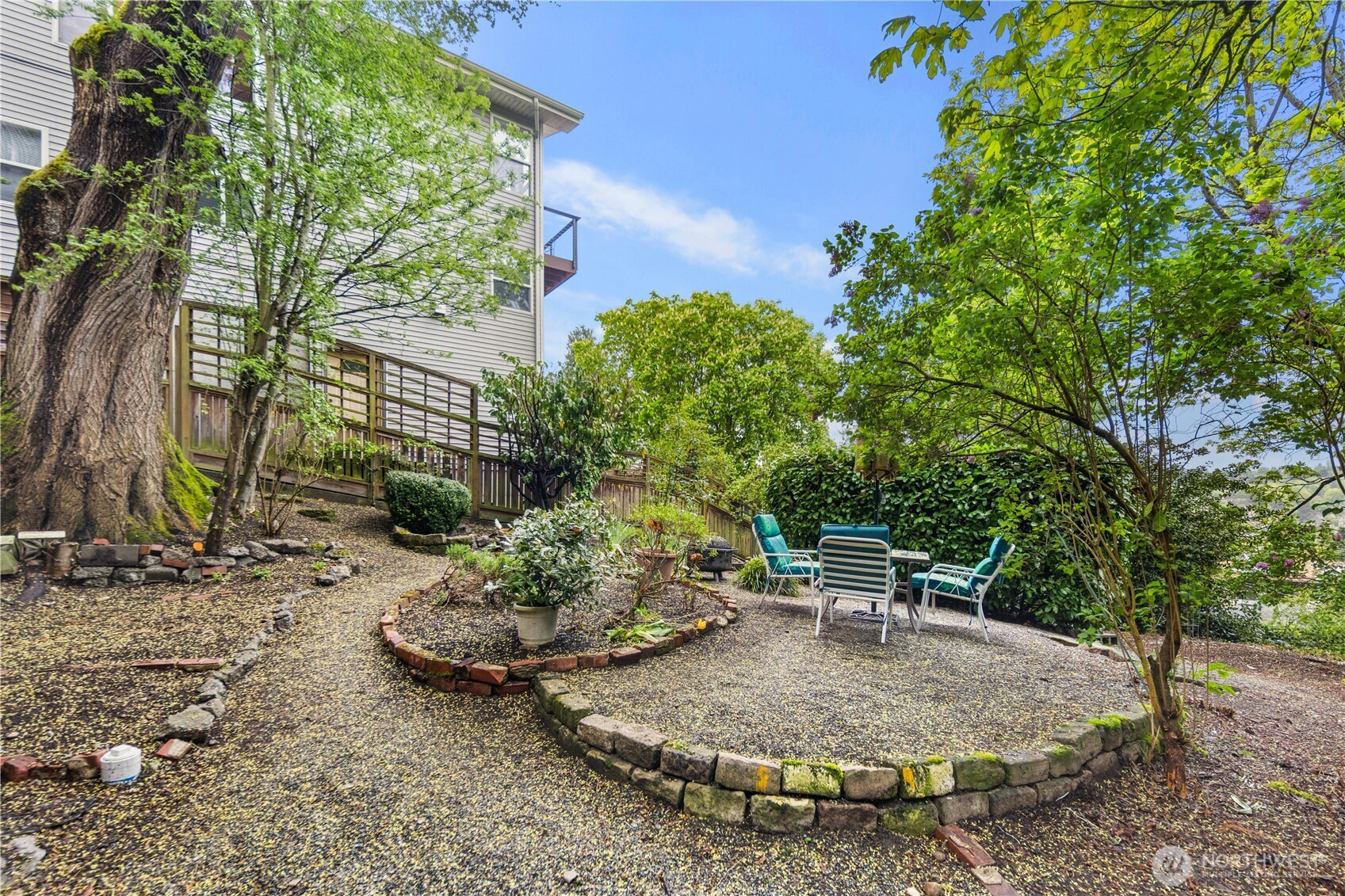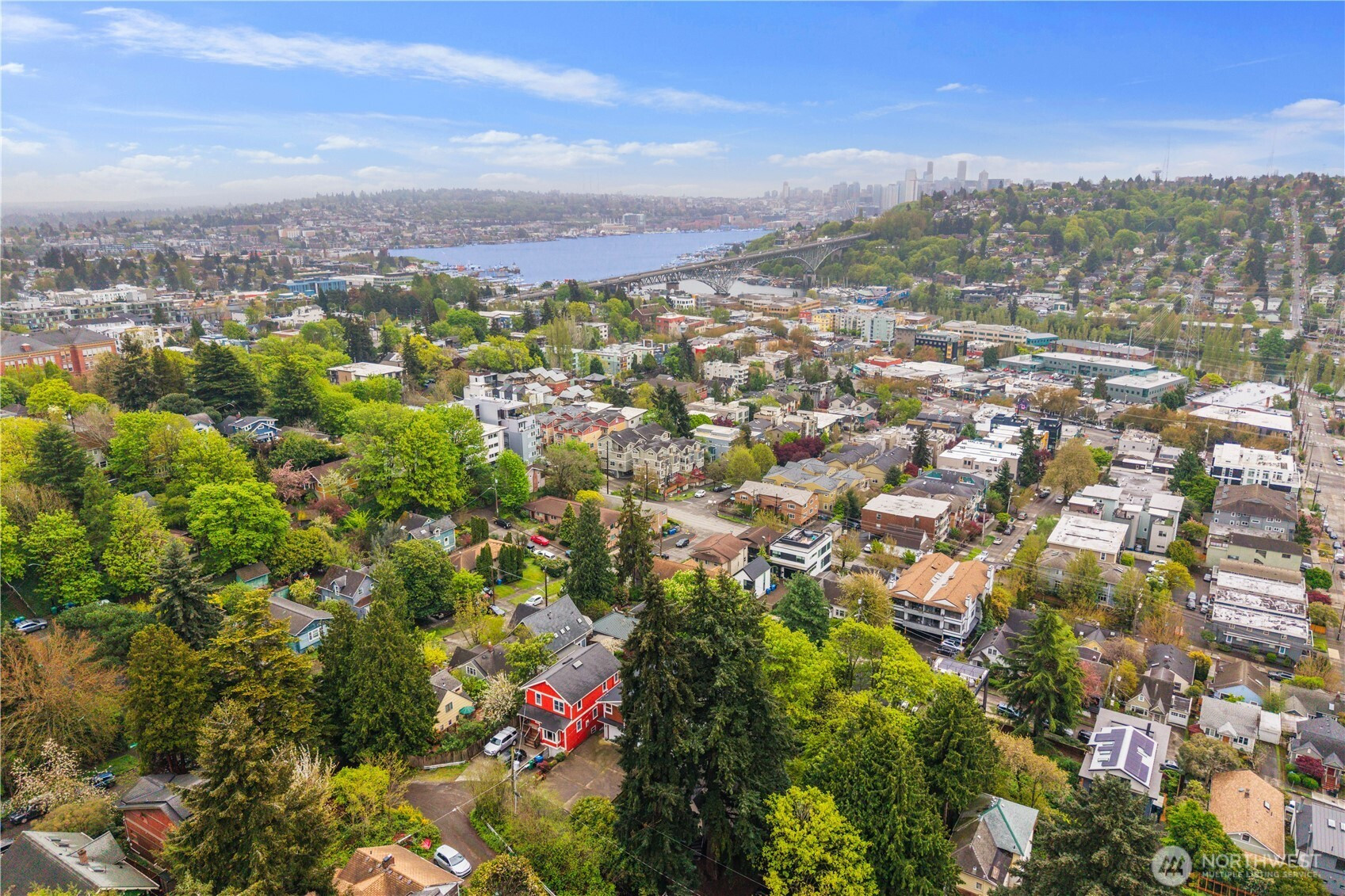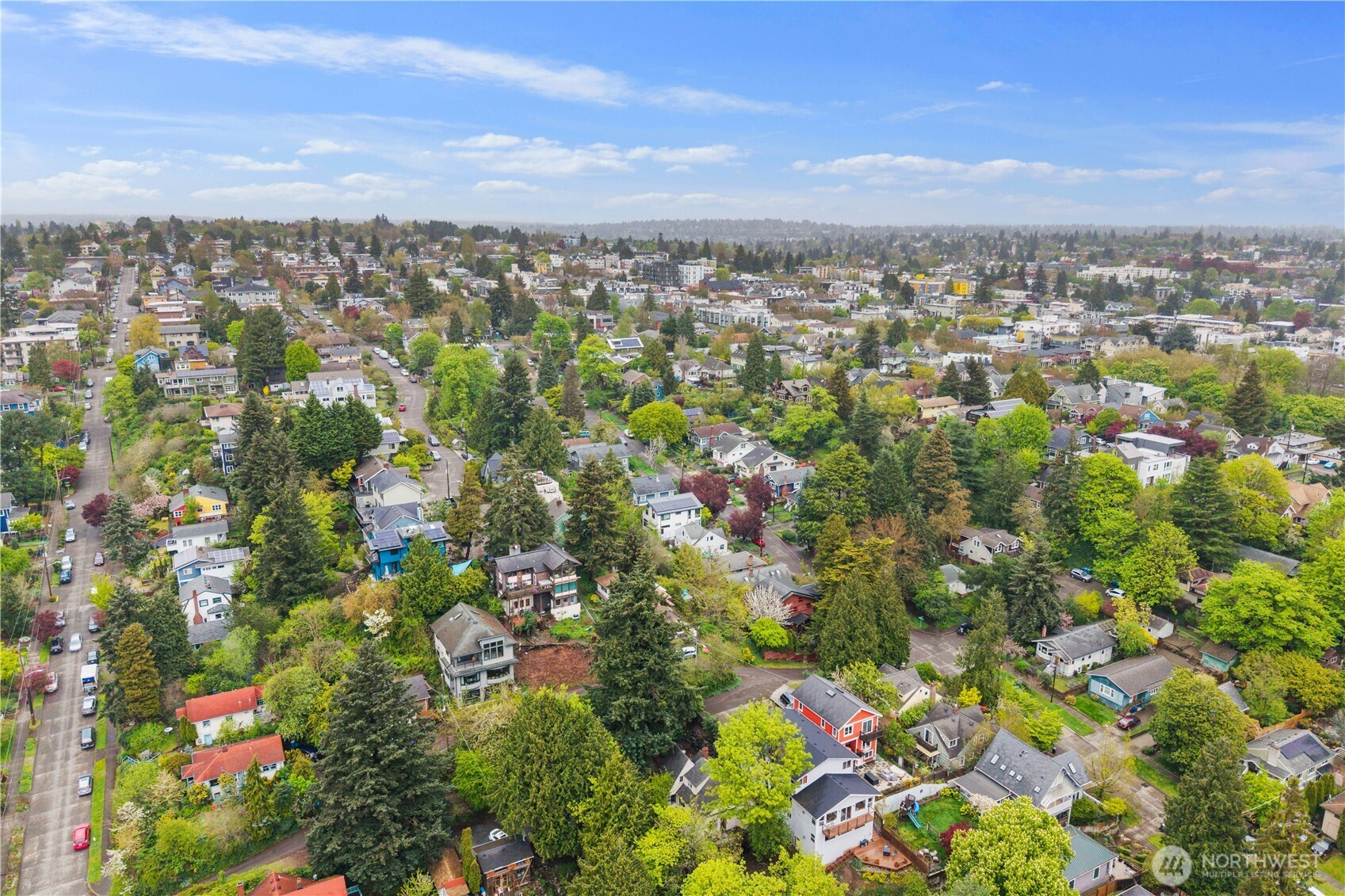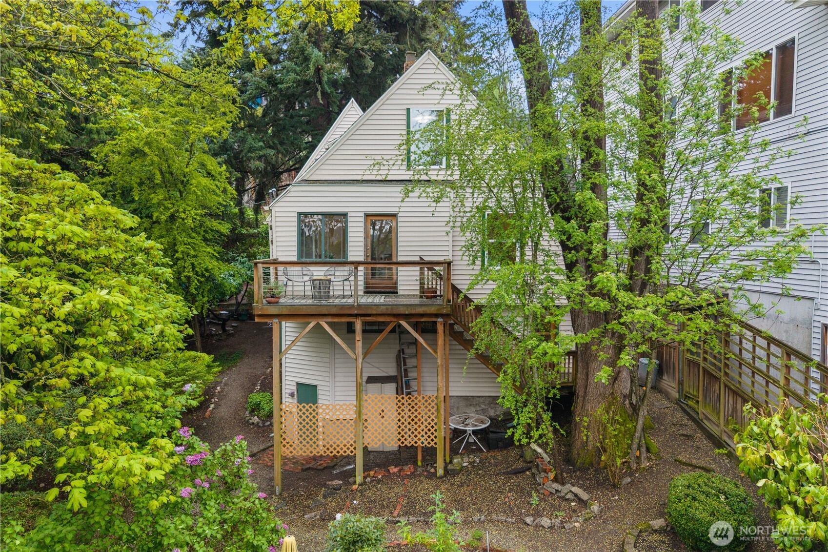 Nestled in the heart of Fremont, this storybook Tudor is a true hidden gem. Surrounded by lush greenery on a generous 7,200 sqft lot, the home lives like a private oasis, with picturesque windows framing natural light and serene views throughout. Enjoy the city skyline and a stunning view of Mt. Rainier from the kitchen window and back deck—an everyday reminder of the PNW’s beauty. This 5-bedroom, 2-bath residence is rich with preserved charm, blending timeless character with thoughtful functionality. A separate ADU offers flexibility for multigenerational living, guest accommodations, or income-producing potential—with a history of strong short-term rental performance.Step outside and into one of Seattle’s most vibrant, walkable neighborhoods—cafés, shops, parks, entertainment and the Burke-Gilman Trail are all just moments away, making it easy to live actively and stay connected to the outdoors. Located near highly rated schools and in Fremont’s iconic “Center of the Universe,” this is where lifestyle, location, and opportunity align.