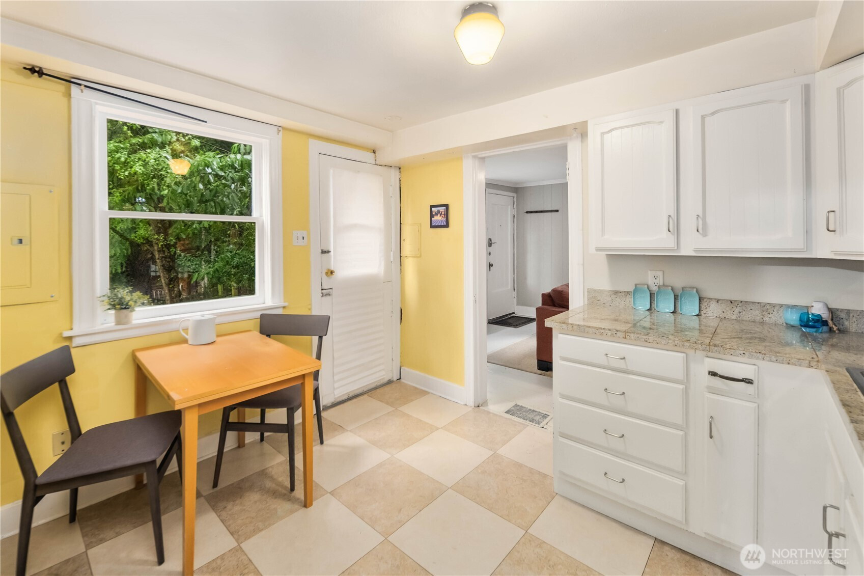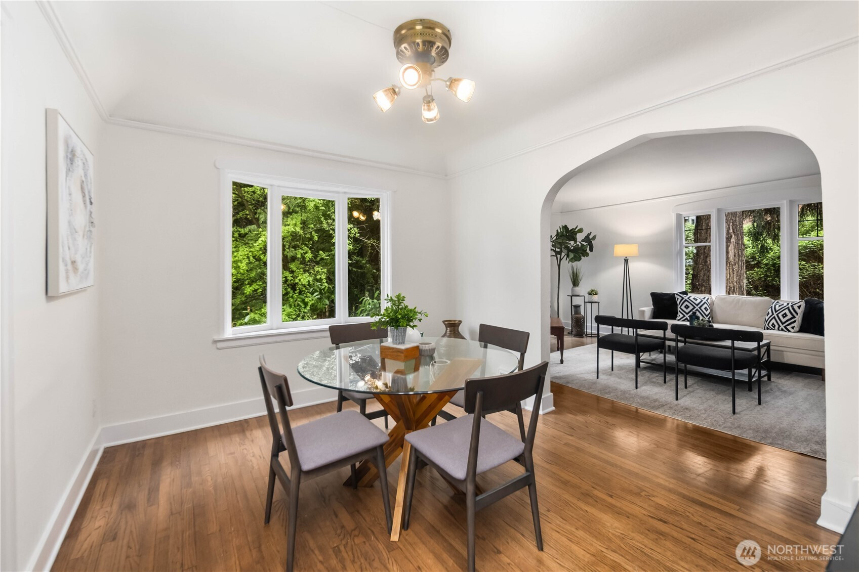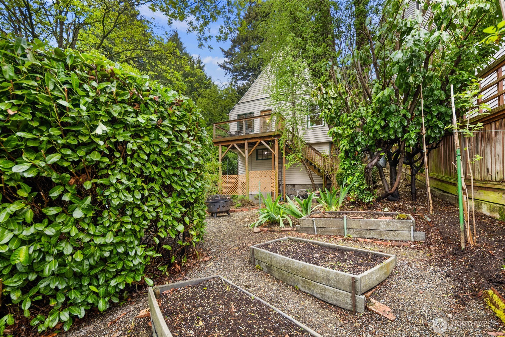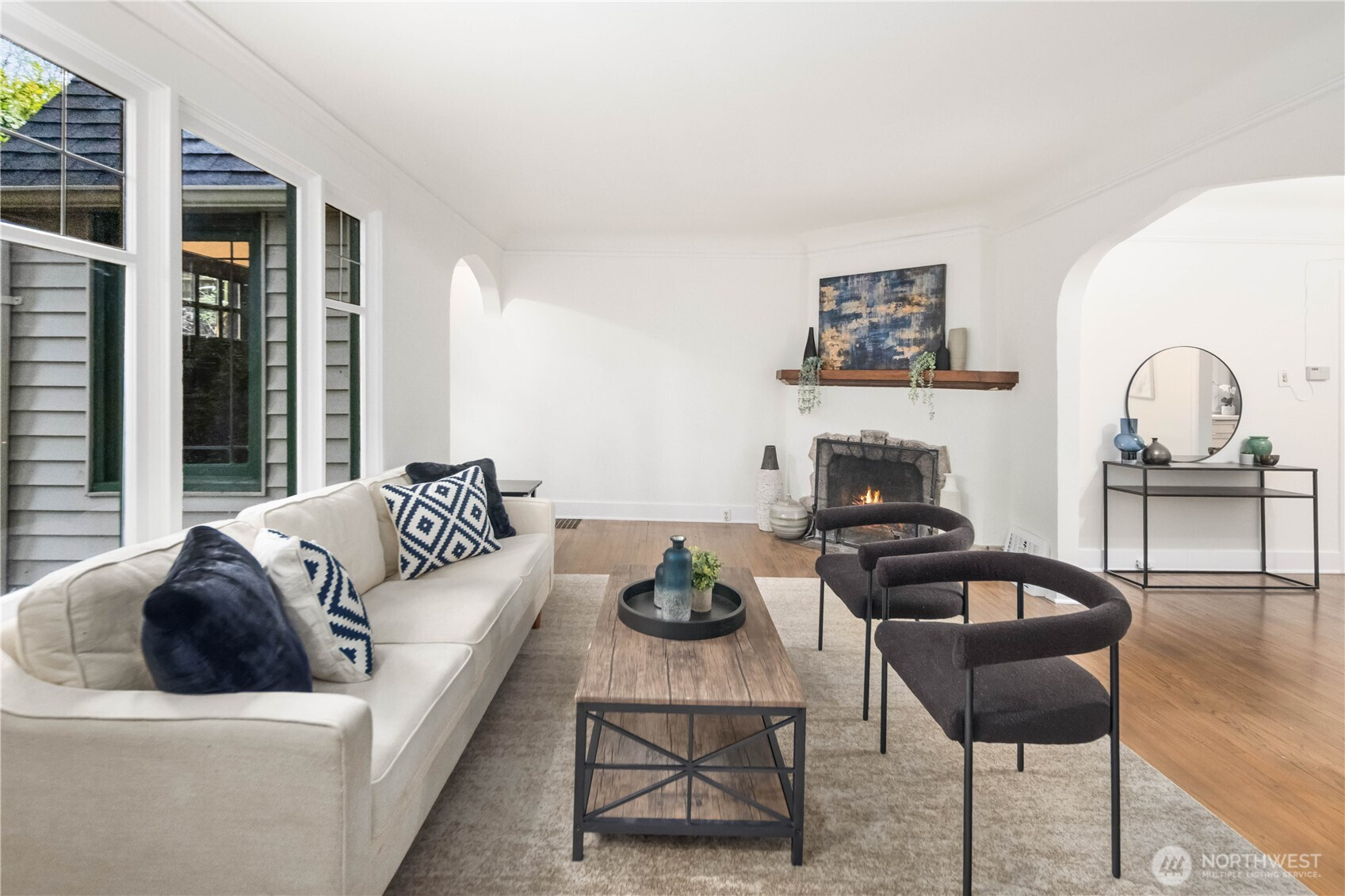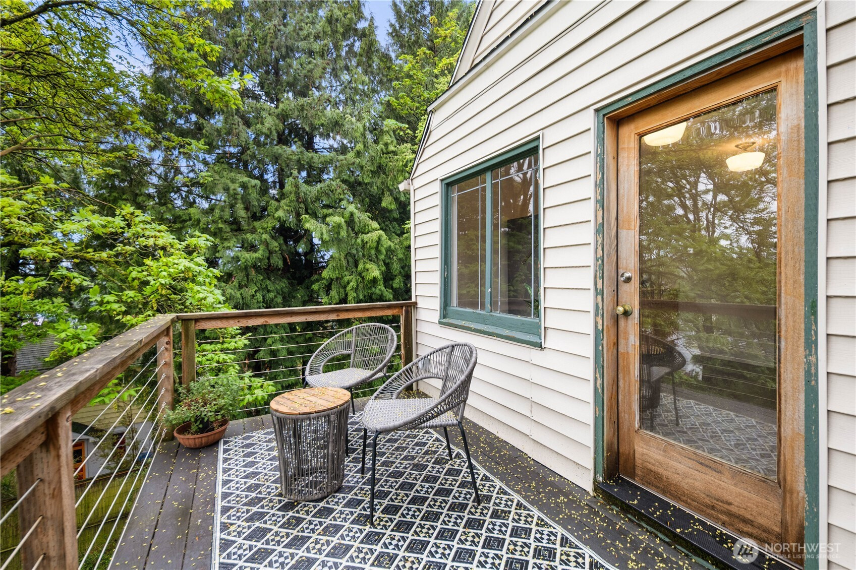 Nestled in the heart of Fremont, this storybook Tudor is a true hidden gem. Surrounded by lush greenery on a generous 7,200 sqft lot, the home lives like a private oasis, with picturesque windows framing natural light and serene views throughout. Enjoy the city skyline and a stunning view of Mt. Rainier from the kitchen window and back deck—an everyday reminder of the PNW’s beauty. This 5-bedroom, 2-bath residence is rich with preserved charm, blending timeless character with thoughtful functionality. A separate ADU offers flexibility for multigenerational living, guest accommodations, or income-producing potential—with a history of strong short-term rental performance.Step outside and into one of Seattle’s most vibrant, walkable neighborhoods—cafés, shops, parks, entertainment and the Burke-Gilman Trail are all just moments away, making it easy to live actively and stay connected to the outdoors. Located near highly rated schools and in Fremont’s iconic “Center of the Universe,” this is where lifestyle, location, and opportunity align.