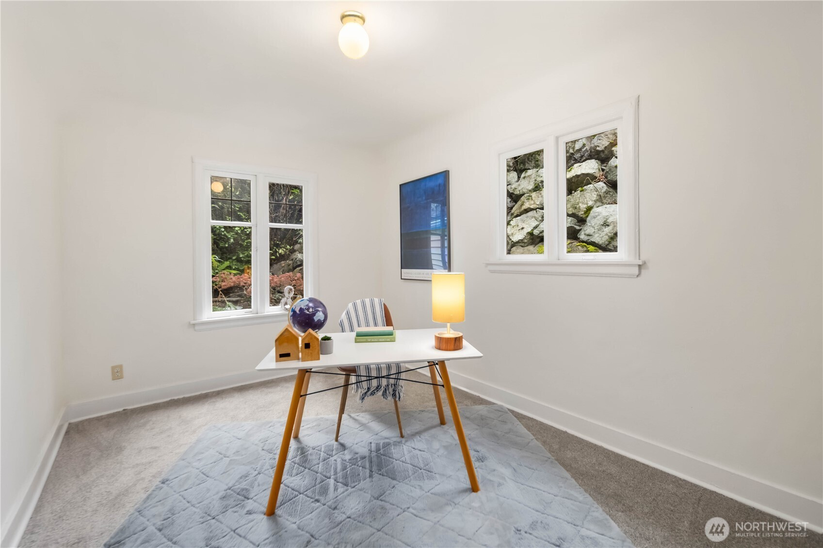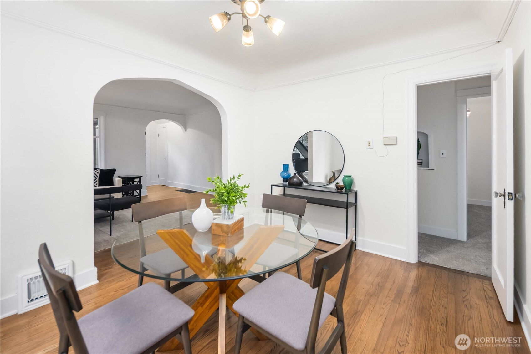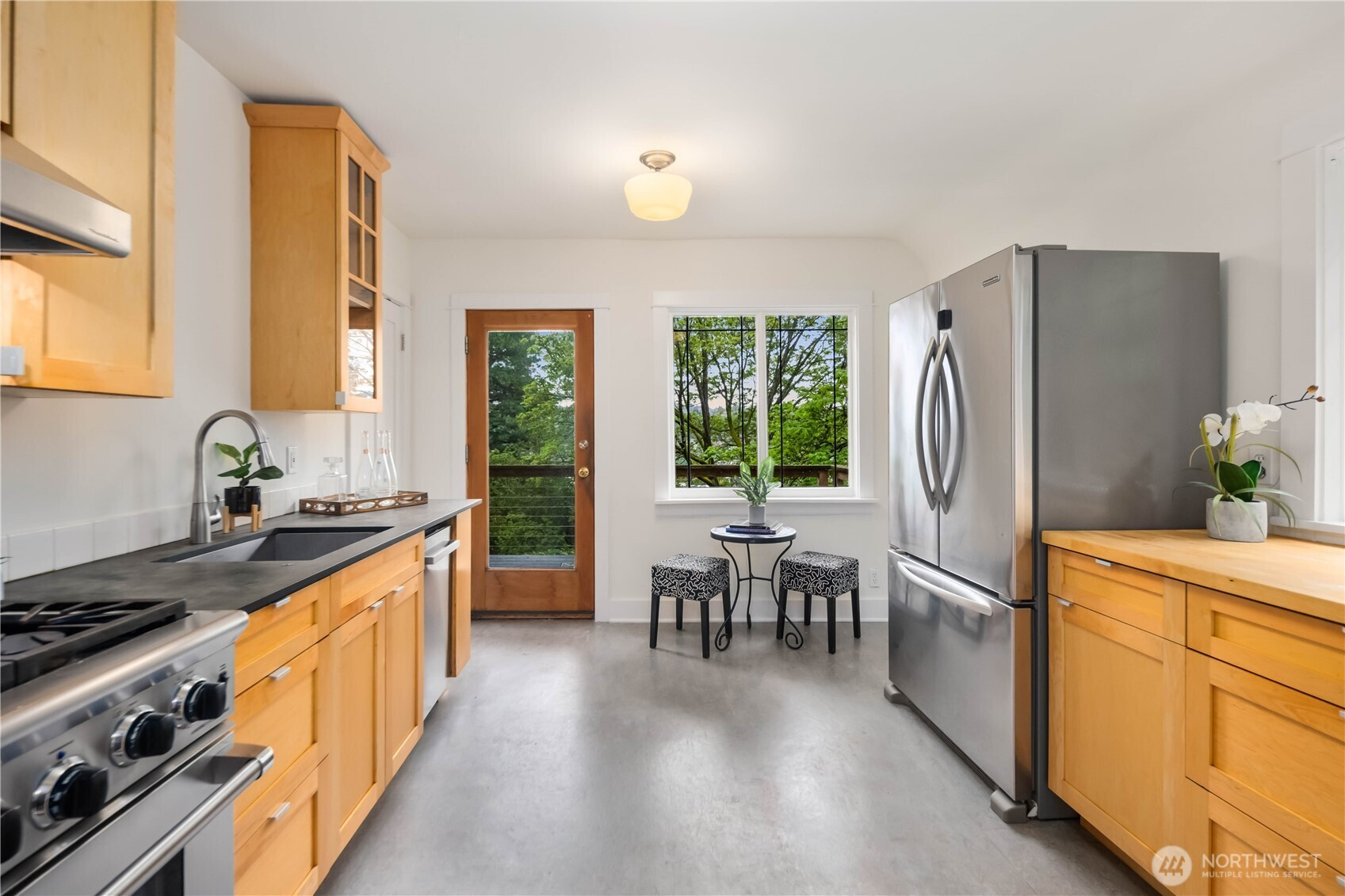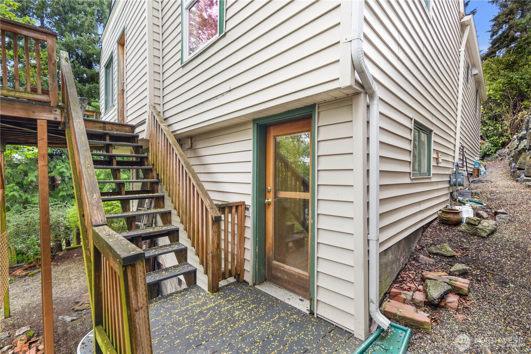 Nestled in the heart of Fremont, this storybook Tudor is a true hidden gem. Surrounded by lush greenery on a generous 7,200 sqft lot, the home lives like a private oasis, with picturesque windows framing natural light and serene views throughout. Enjoy the city skyline and a stunning view of Mt. Rainier from the kitchen window and back deck—an everyday reminder of the PNW’s beauty. This 5-bedroom, 2-bath residence is rich with preserved charm, blending timeless character with thoughtful functionality. A separate ADU offers flexibility for multigenerational living, guest accommodations, or income-producing potential—with a history of strong short-term rental performance.Step outside and into one of Seattle’s most vibrant, walkable neighborhoods—cafés, shops, parks, entertainment and the Burke-Gilman Trail are all just moments away, making it easy to live actively and stay connected to the outdoors. Located near highly rated schools and in Fremont’s iconic “Center of the Universe,” this is where lifestyle, location, and opportunity align.