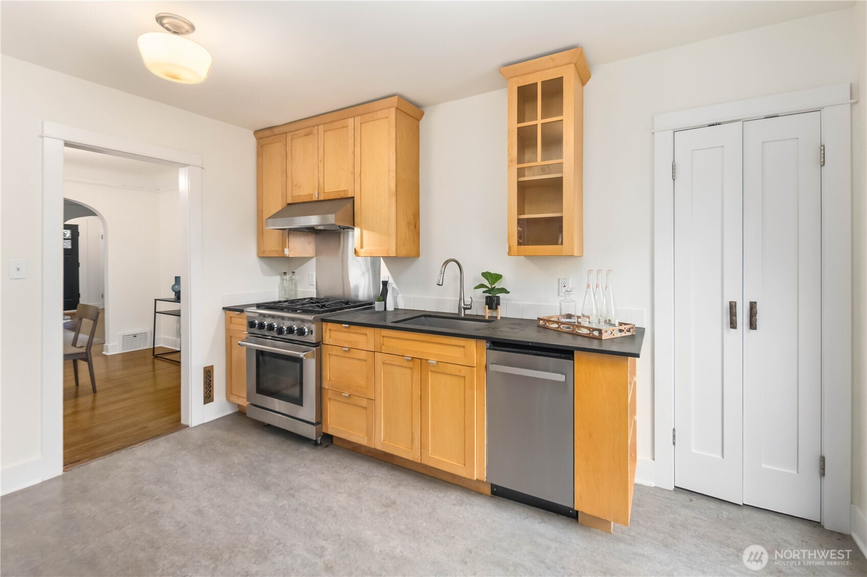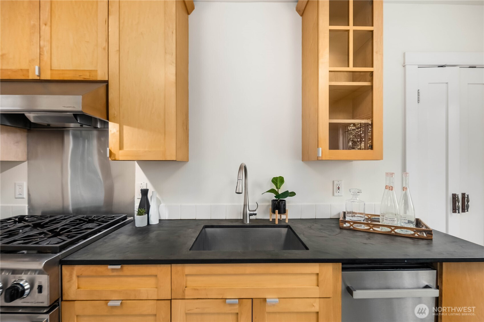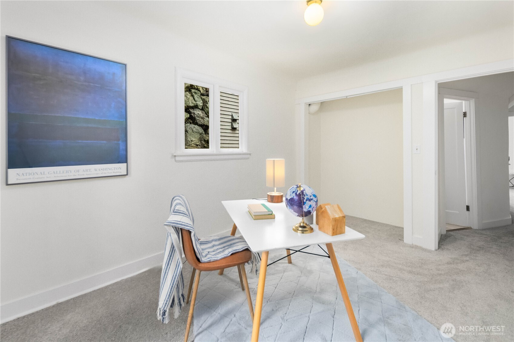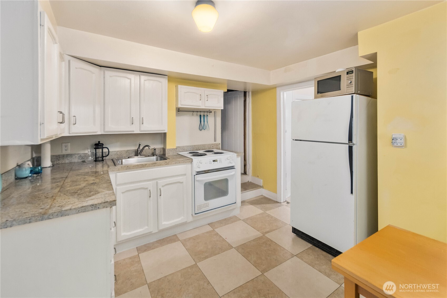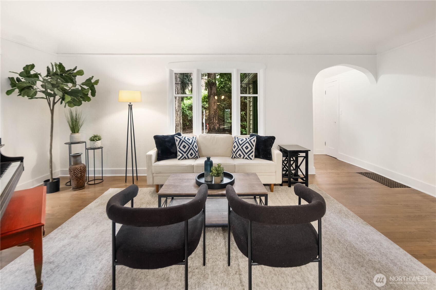 Nestled in the heart of Fremont, this storybook Tudor is a true hidden gem. Surrounded by lush greenery on a generous 7,200 sqft lot, the home lives like a private oasis, with picturesque windows framing natural light and serene views throughout. Enjoy the city skyline and a stunning view of Mt. Rainier from the kitchen window and back deck—an everyday reminder of the PNW’s beauty. This 5-bedroom, 2-bath residence is rich with preserved charm, blending timeless character with thoughtful functionality. A separate ADU offers flexibility for multigenerational living, guest accommodations, or income-producing potential—with a history of strong short-term rental performance.Step outside and into one of Seattle’s most vibrant, walkable neighborhoods—cafés, shops, parks, entertainment and the Burke-Gilman Trail are all just moments away, making it easy to live actively and stay connected to the outdoors. Located near highly rated schools and in Fremont’s iconic “Center of the Universe,” this is where lifestyle, location, and opportunity align.