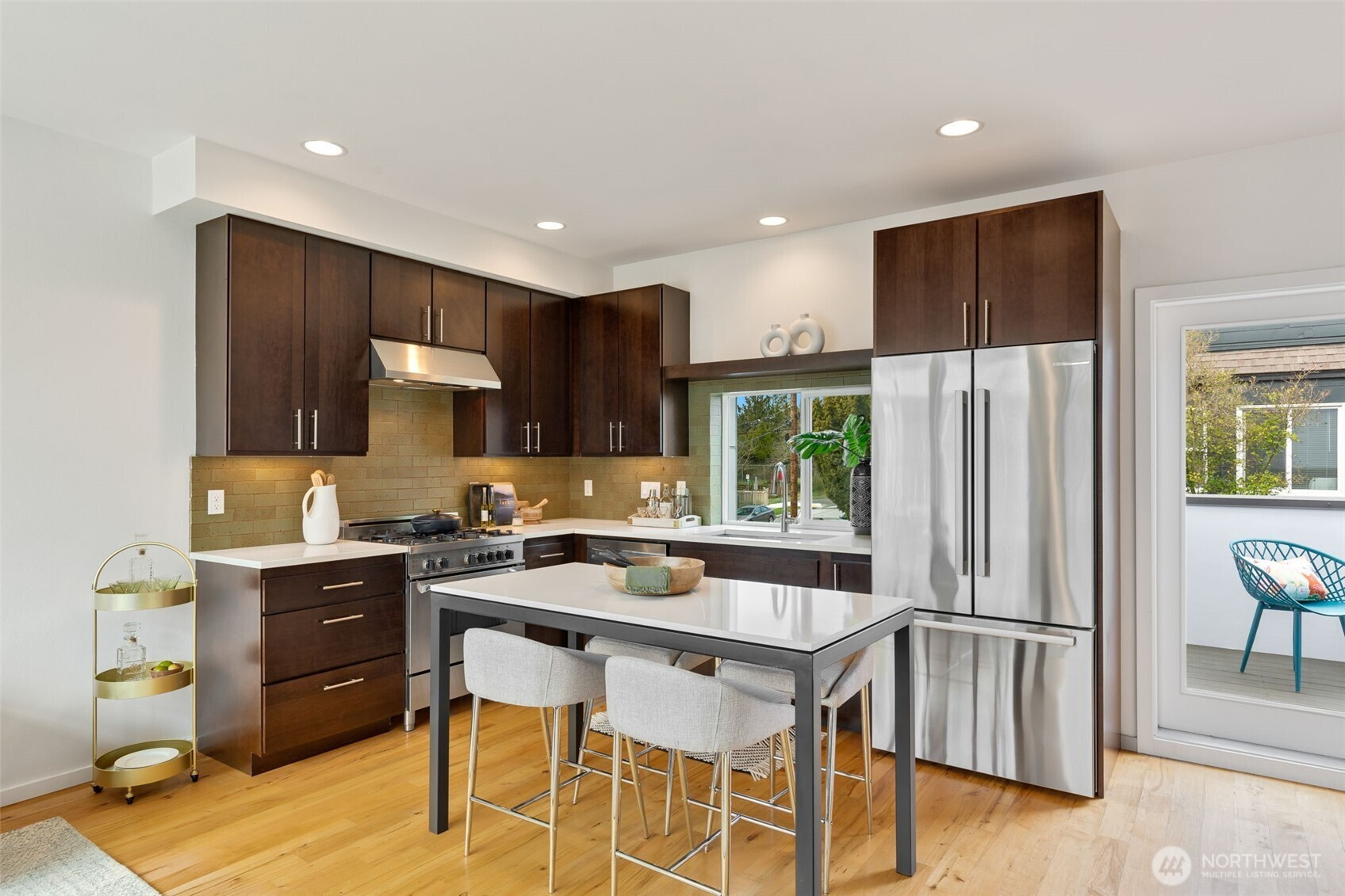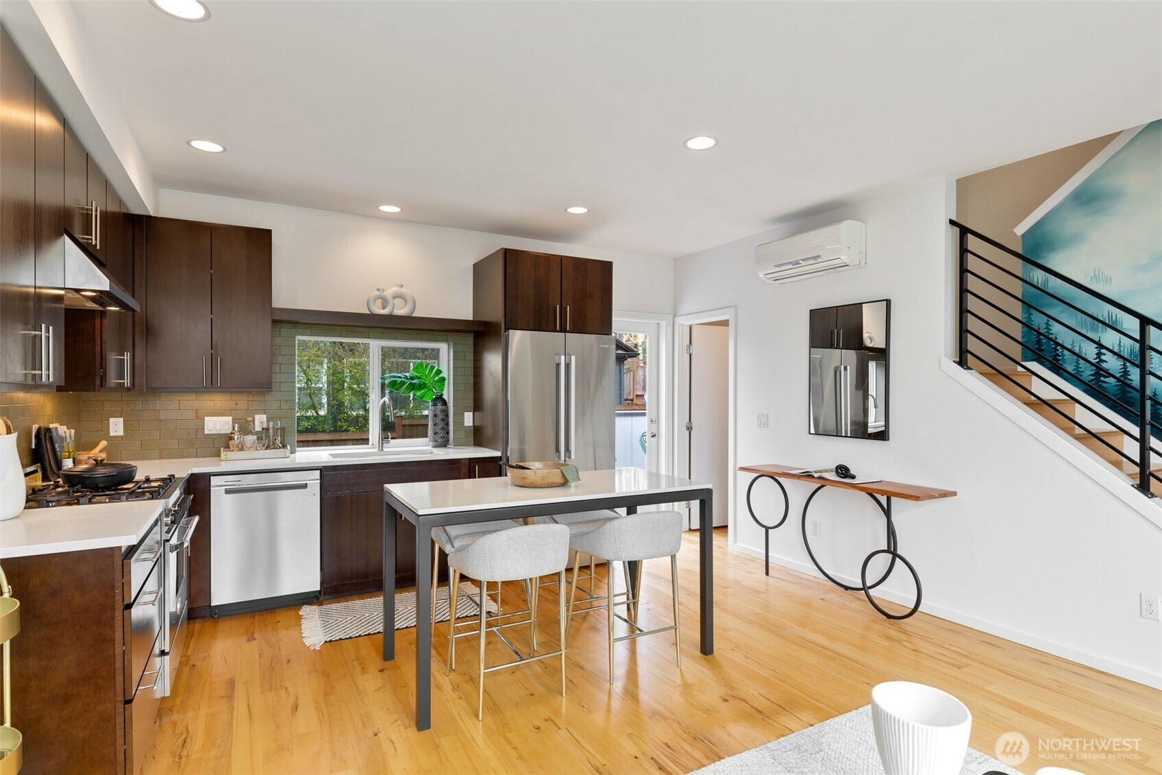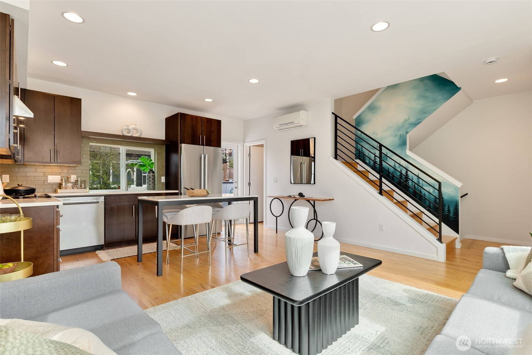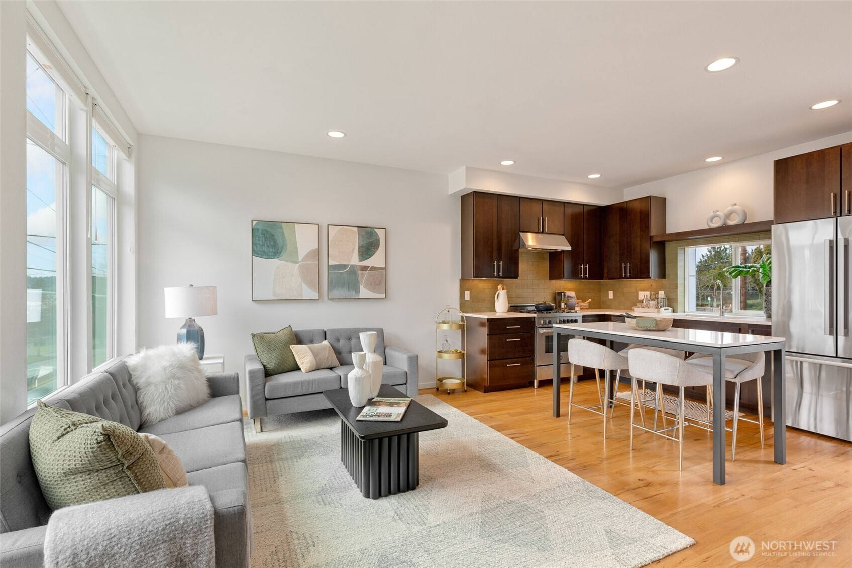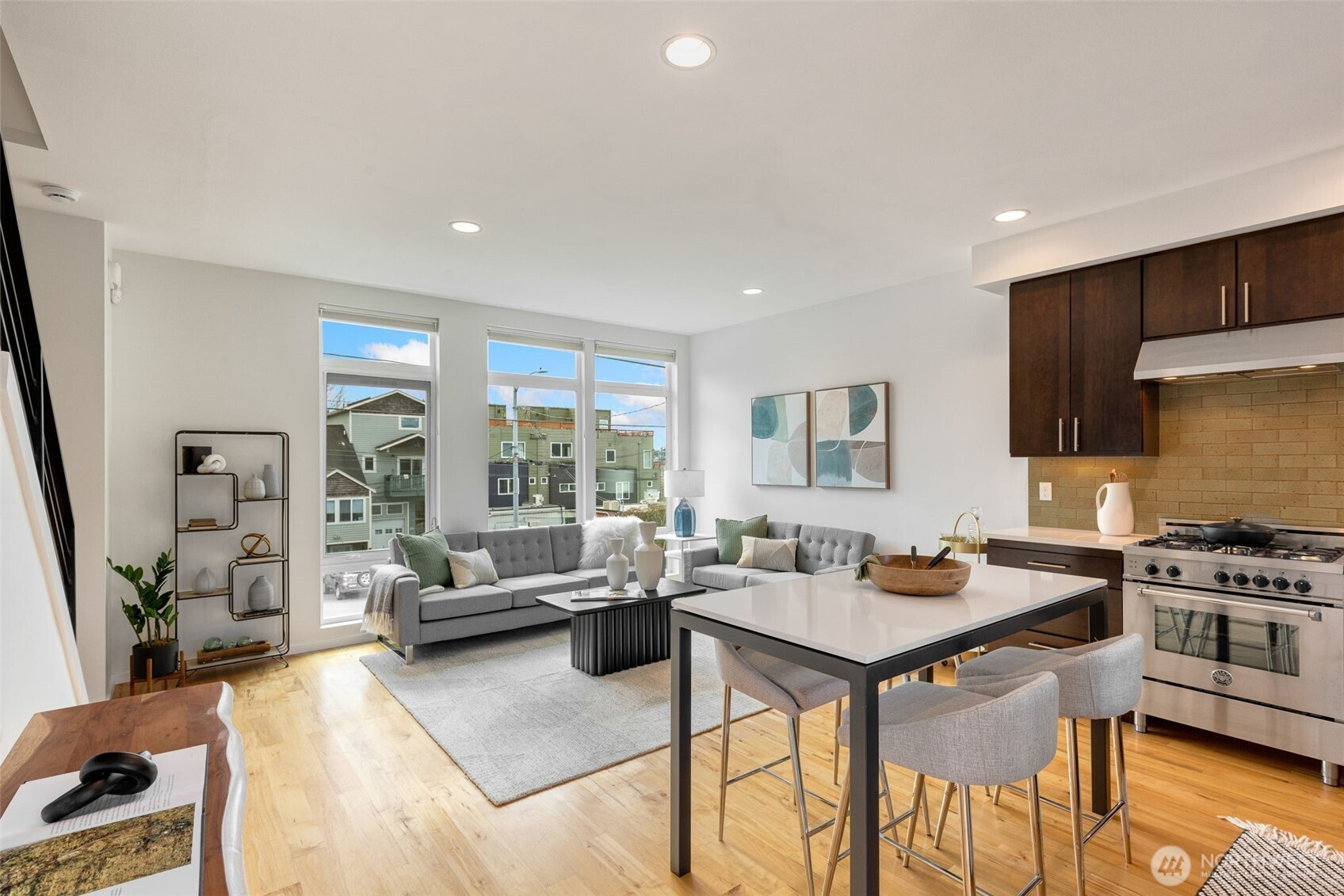 (503) 893-8874Welcome to the bright, spacious townhome you’ve been waiting for! Perfectly positioned at the crossroads of Ballard, Phinney, and Fremont, this unique property offers generous space, two lovely decks, quiet triple-pane windows, unbeatable walkability, and baths on every level. The well-appointed kitchen, featuring a Bertazzoni gas range and Bosch fridge, opens into the sun-filled living room and out to your alfresco dining terrace. Retreat to the airy primary suite with walk-in closet and LG washer and dryer. A flexible office/guest bedroom with a built-in Murphy bed and an attached heated garage for your hobbies + storage. Enjoy amazing sunsets and Olympic views from your expansive rooftop garden deck. Boutique community with no HOA.