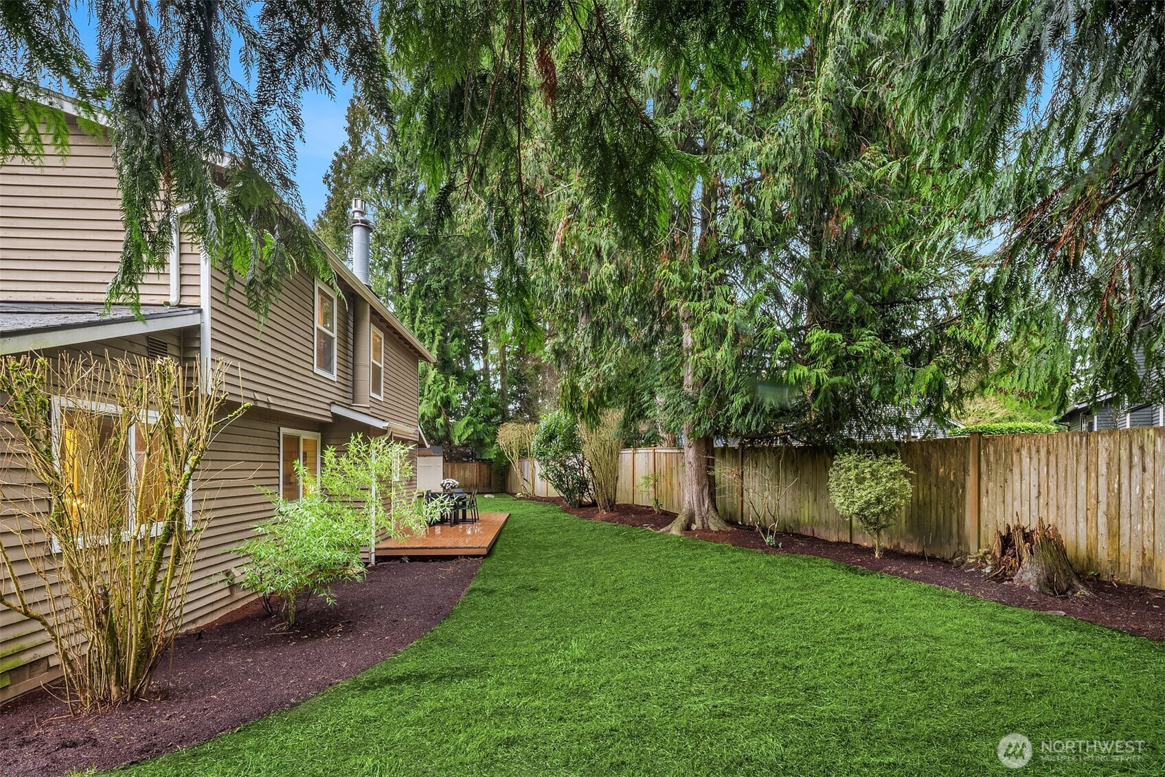 Freshly Refined. Perfectly Positioned. Perfectly positioned at the top of a quiet cul-de-sac in the desirable Timberline neighborhood, this beautifully refreshed 4-bedroom home offers 2132 sq ft of move-in-ready living. Brand-new interior paint, new carpet, and refinished hardwood floors create a bright, updated feel throughout. The vaulted dining room with new lighting adds architectural interest, while the cozy brick fireplace anchors the main living space. Updated bathrooms provide modern comfort and style. Step outside to a private, fully fenced backyard with mature landscaping and an expansive Trex deck, ideal for entertaining, play, or relaxing. A charming covered front porch completes the welcoming curb appeal and a new roof installed in 2024 adds lasting value and peace of mind, enhancing the home’s overall appeal and readiness for years to come. Exceptional location, thoughtful updates, and timeless livability in one of Sammamish’s most sought-after communities.