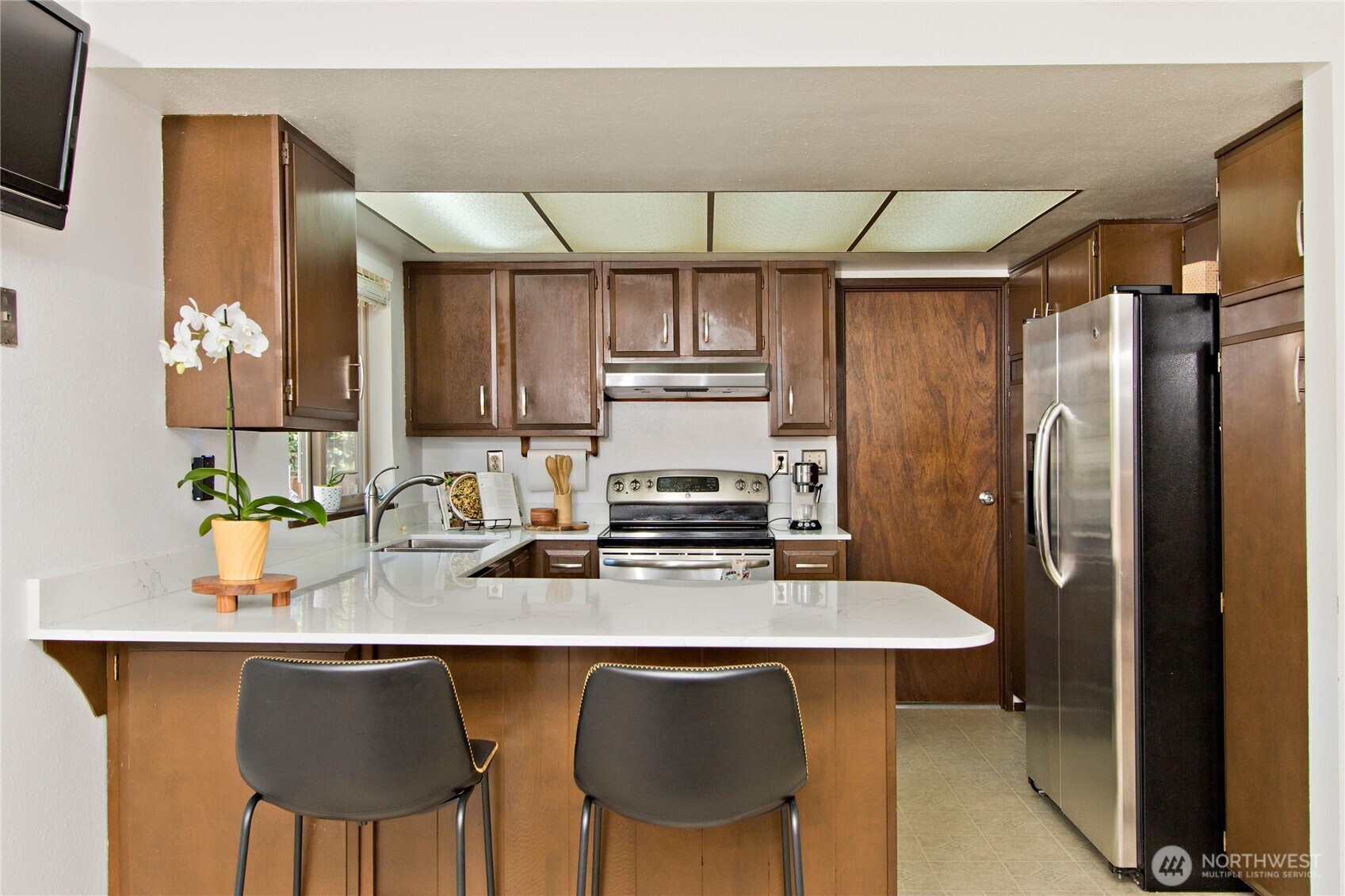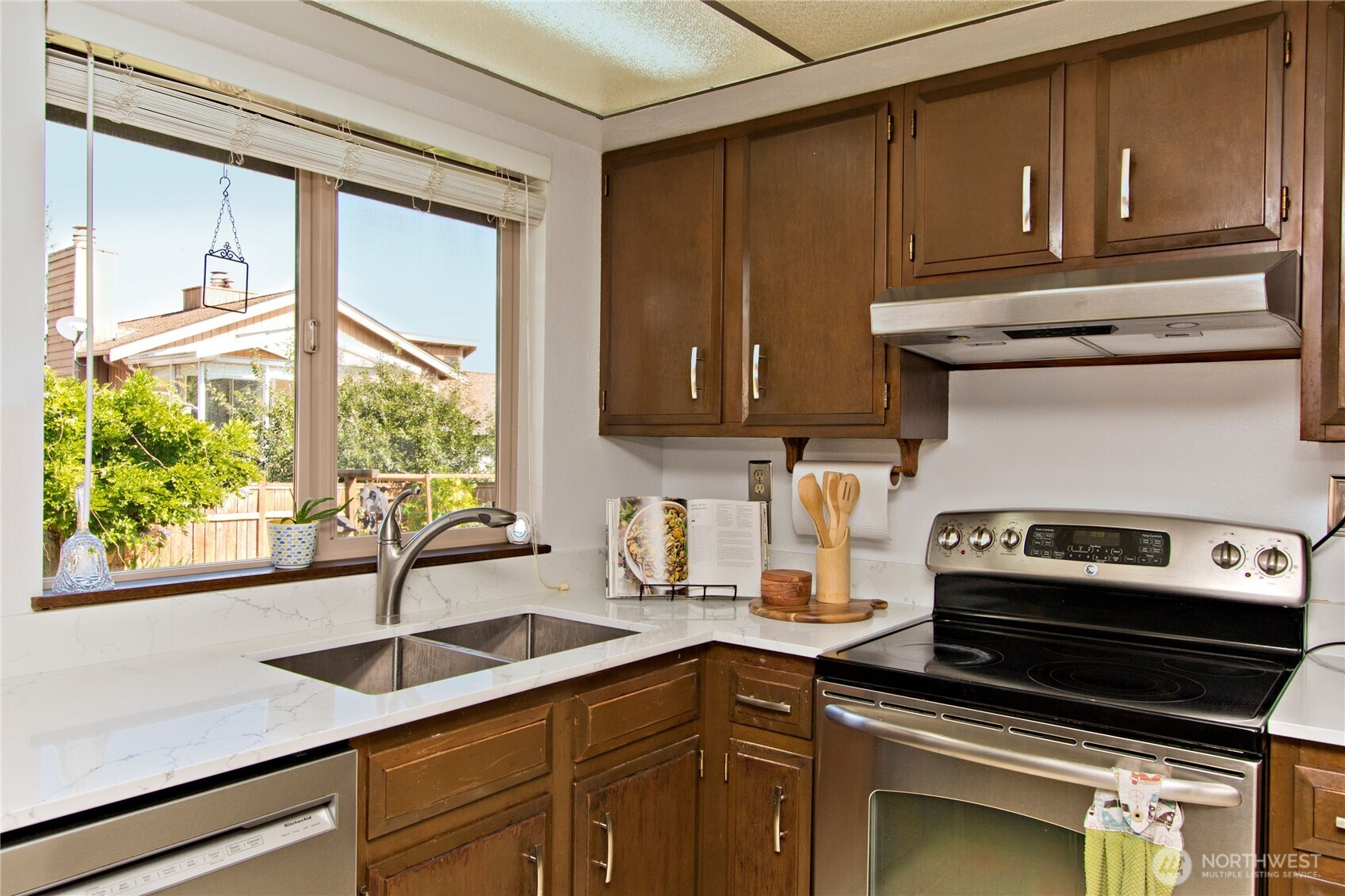 Welcome Home to this ideally located tri-level home, situated conveniently between I-5 and Highway 167, offering easy access to major freeways. Yet, enjoy your outdoor living area with a fenced backyard and garden area, watching the eagles and hawks flying overhead. This move-in-ready gem boasts updated quartz countertops, a brand-new roof, 4 bedrooms, and a flex/rec room area. Don't miss this opportunity to own this home in an established neighborhood with unbeatable convenience.