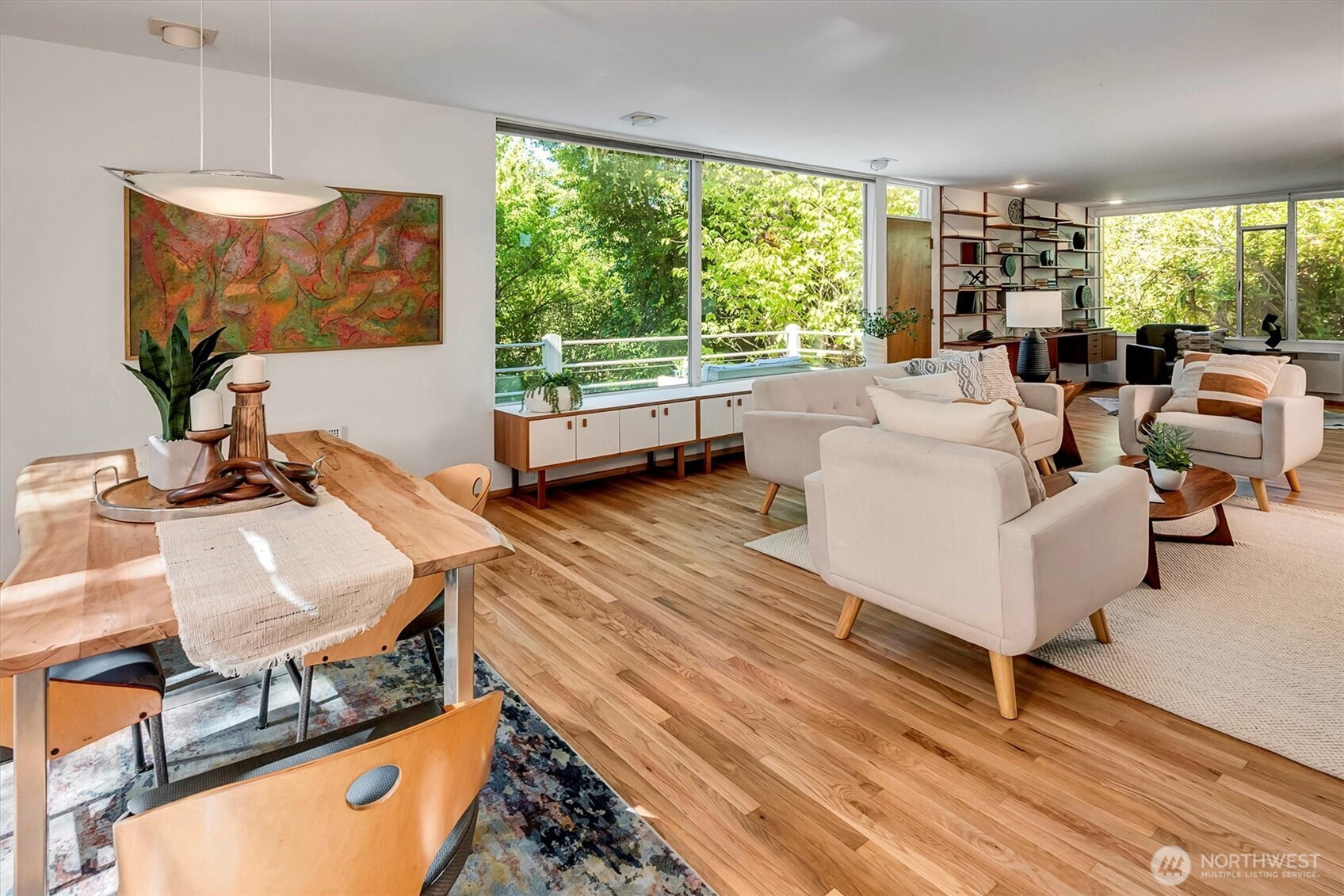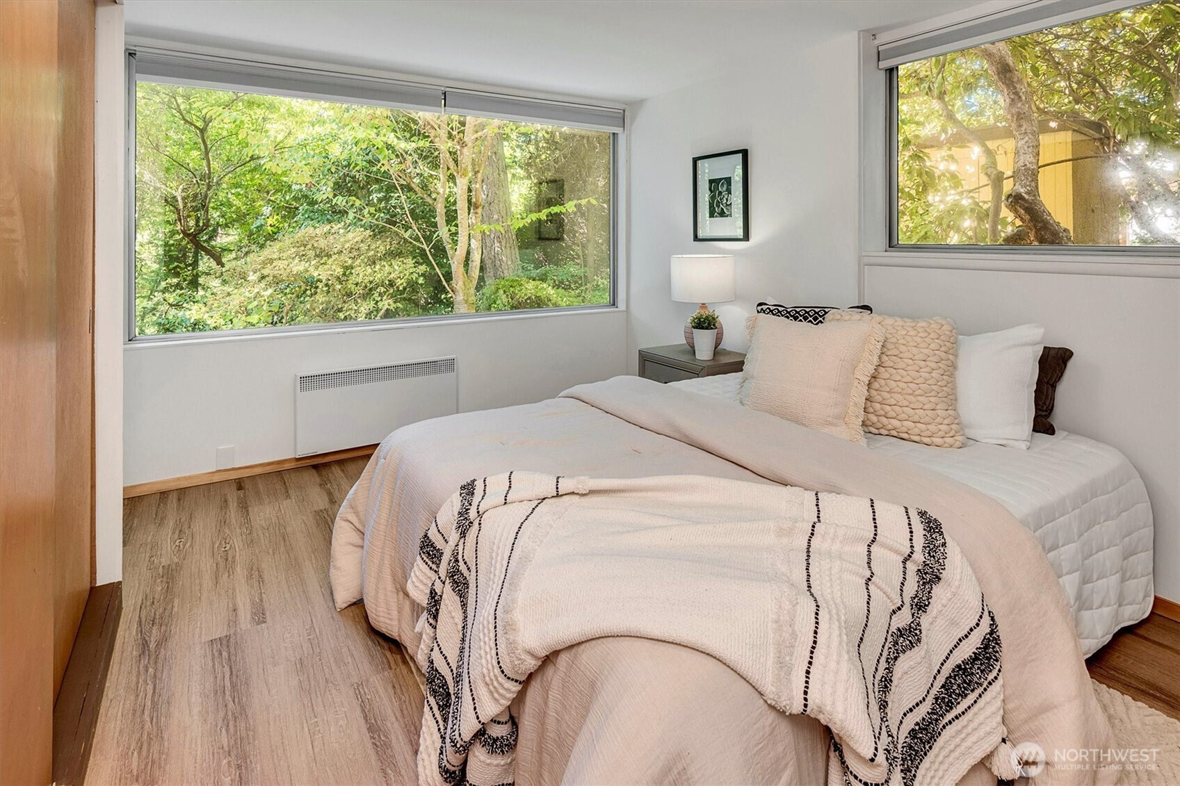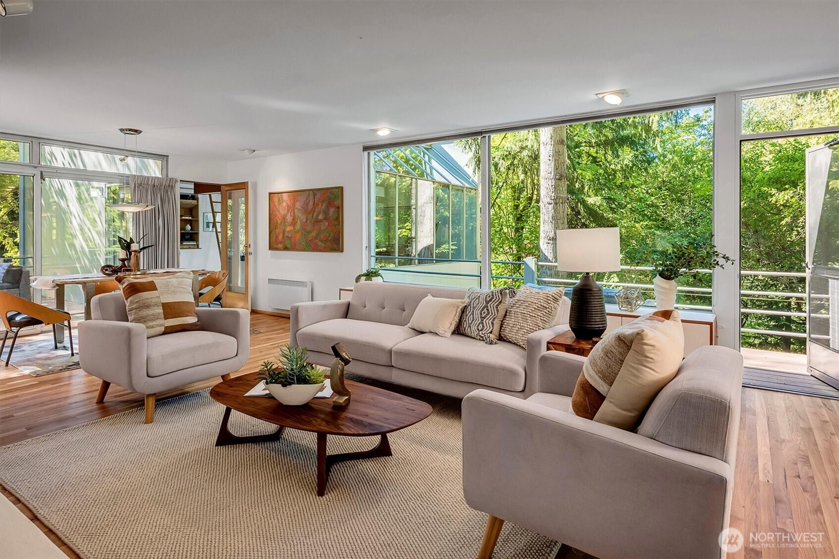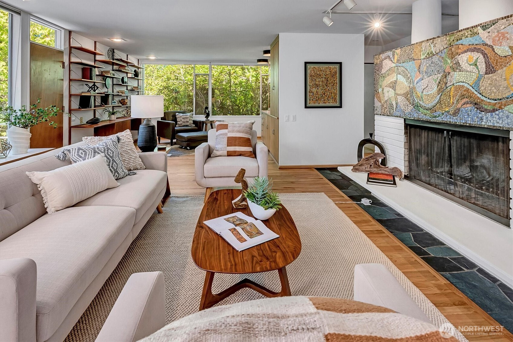 Updated, Custom-Designed Mid-Century Home by noted Van Horne & Van Horne Architects. Set Well Above the Street & Containing Amazing Spaces; Currently a Large Art-Studio upstairs, the Owner was a Renowned Artist, or a Potential Home Office, or 2nd Primary Suite! Plus a Potential ADU downstairs. Both have separate entrances! $200K+ in Upgrades, incl New Roof, Painted inside & Out, New Baths, Refinshed Hardwood Floors, etc, ETC! Gorgeous 1-Half Acre Lot with Beautiful SW Light! Only two doors south of W Mercer Elementary School, so not noisy, but with easy access. 5-10 minutes from Homestead Field. And just a quick drive to the Mercer Island Shopping Center and I-90 Freeway. This is a Very Special Home!