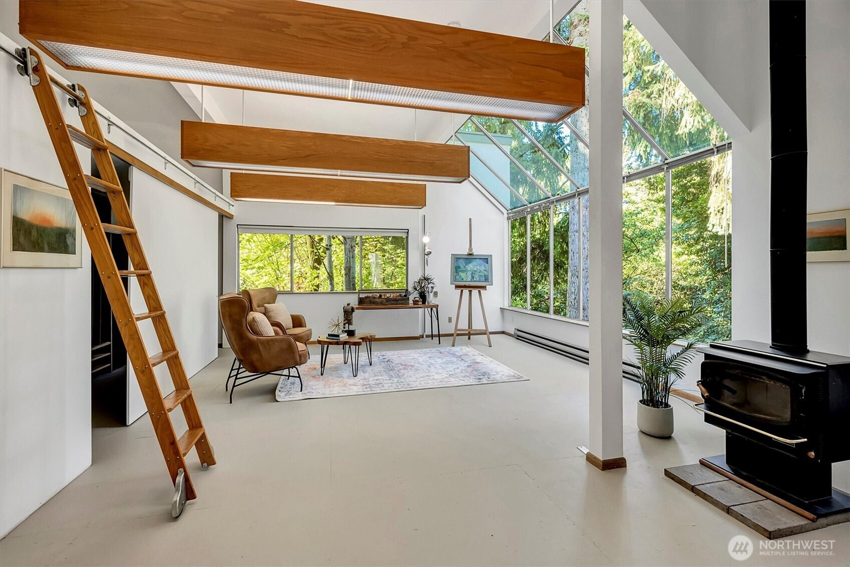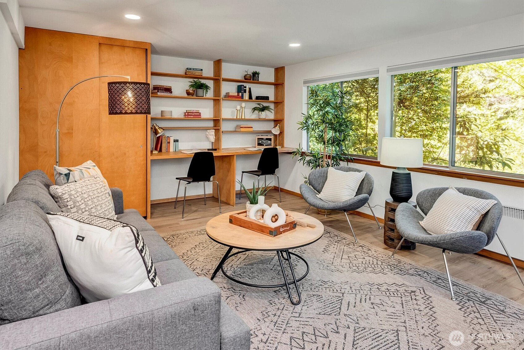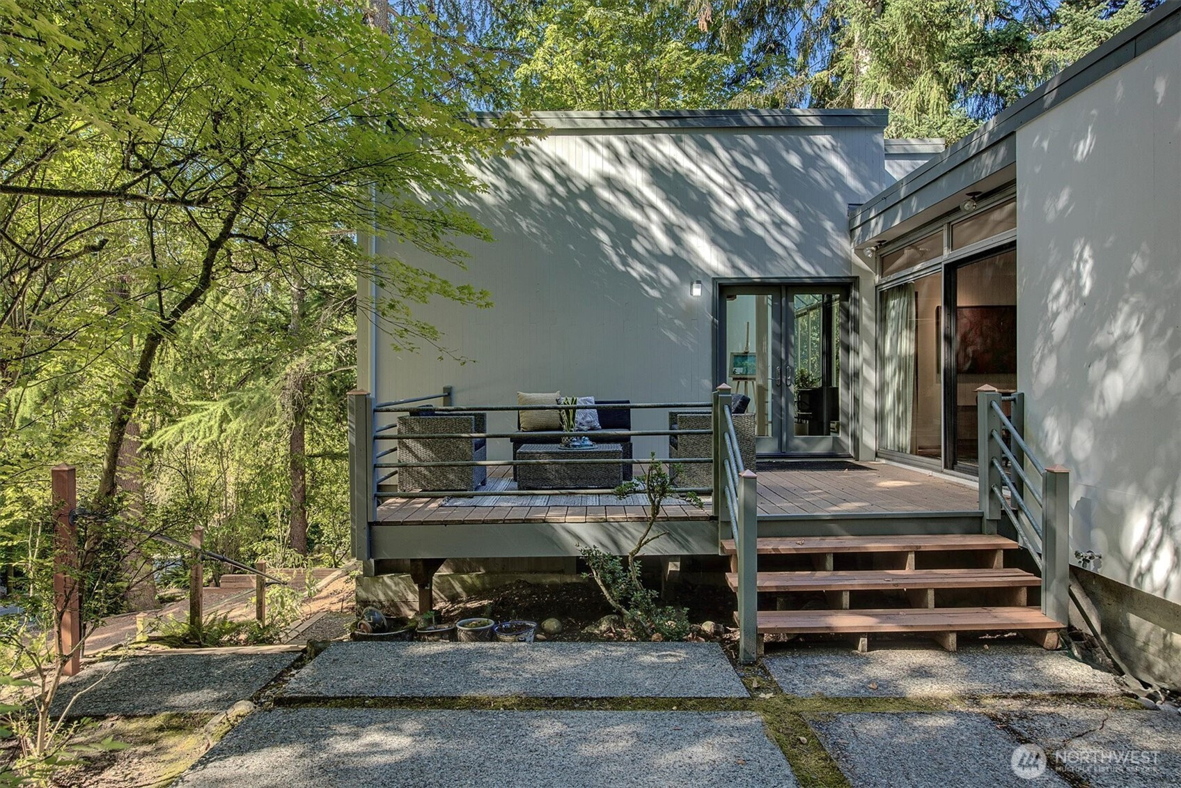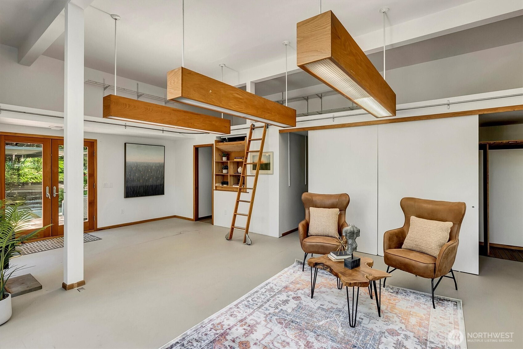 Updated, Custom-Designed Mid-Century Home by noted Van Horne & Van Horne Architects. Set Well Above the Street & Containing Amazing Spaces; Currently a Large Art-Studio upstairs, the Owner was a Renowned Artist, or a Potential Home Office, or 2nd Primary Suite! Plus a Potential ADU downstairs. Both have separate entrances! $200K+ in Upgrades, incl New Roof, Painted inside & Out, New Baths, Refinshed Hardwood Floors, etc, ETC! Gorgeous 1-Half Acre Lot with Beautiful SW Light! Only two doors south of W Mercer Elementary School, so not noisy, but with easy access. 5-10 minutes from Homestead Field. And just a quick drive to the Mercer Island Shopping Center and I-90 Freeway. This is a Very Special Home!