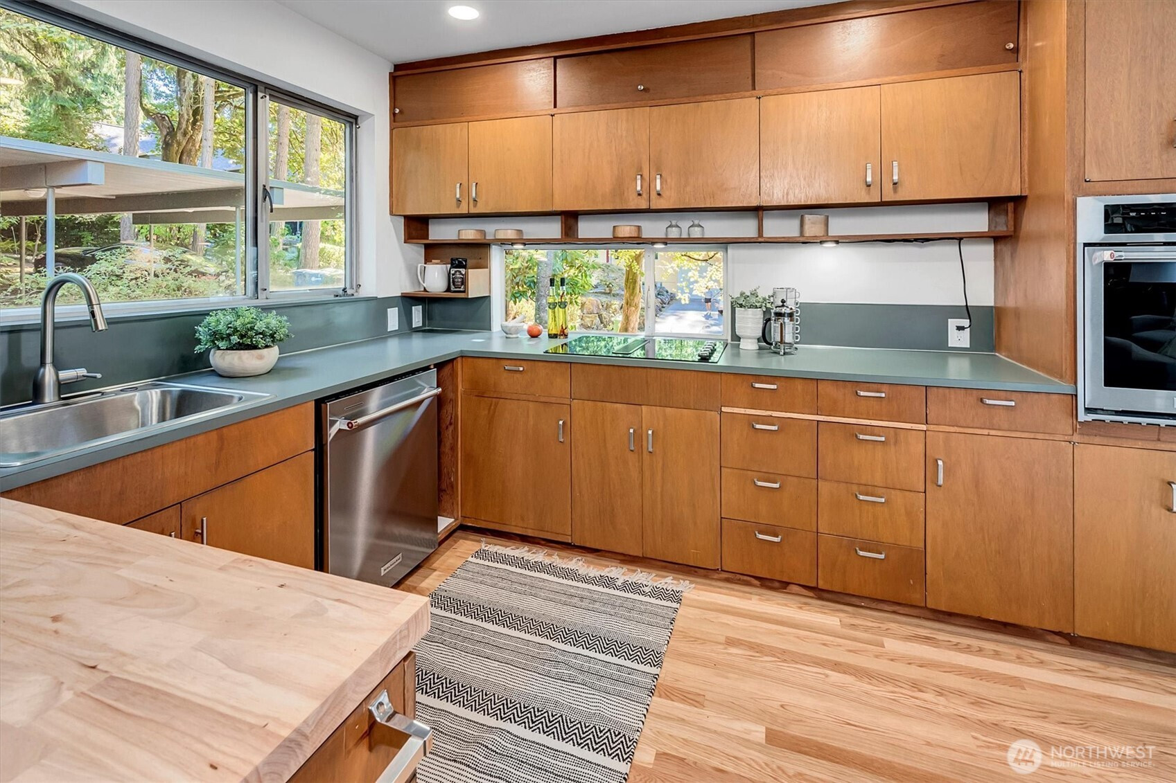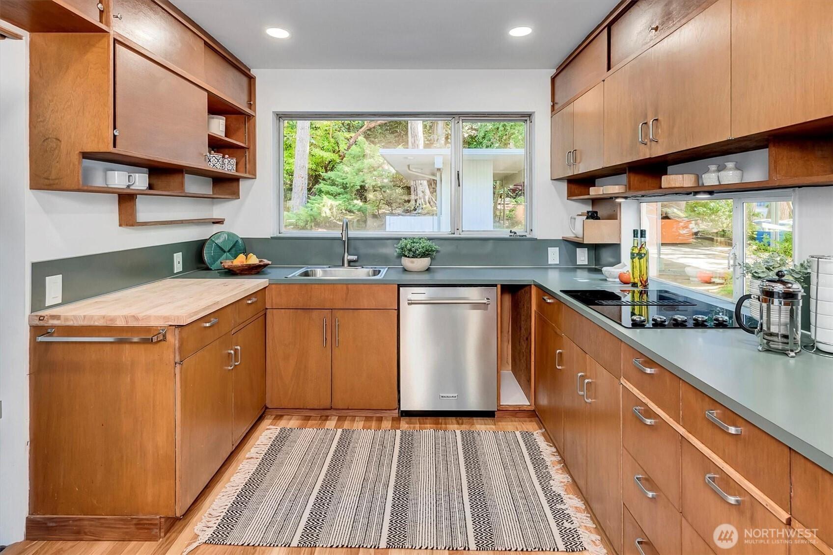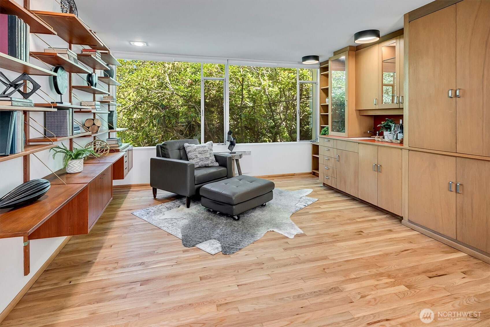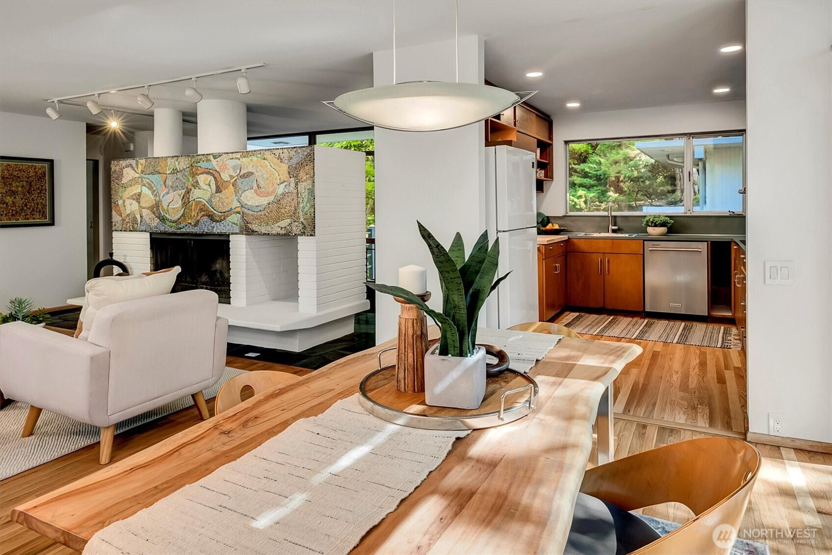 Updated, Custom-Designed Mid-Century Home by noted Van Horne & Van Horne Architects. Set Well Above the Street & Containing Amazing Spaces; Currently a Large Art-Studio upstairs, the Owner was a Renowned Artist, or a Potential Home Office, or 2nd Primary Suite! Plus a Potential ADU downstairs. Both have separate entrances! $200K+ in Upgrades, incl New Roof, Painted inside & Out, New Baths, Refinshed Hardwood Floors, etc, ETC! Gorgeous 1-Half Acre Lot with Beautiful SW Light! Only two doors south of W Mercer Elementary School, so not noisy, but with easy access. 5-10 minutes from Homestead Field. And just a quick drive to the Mercer Island Shopping Center and I-90 Freeway. This is a Very Special Home!