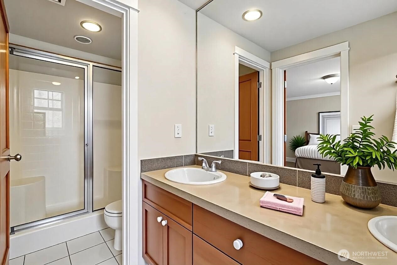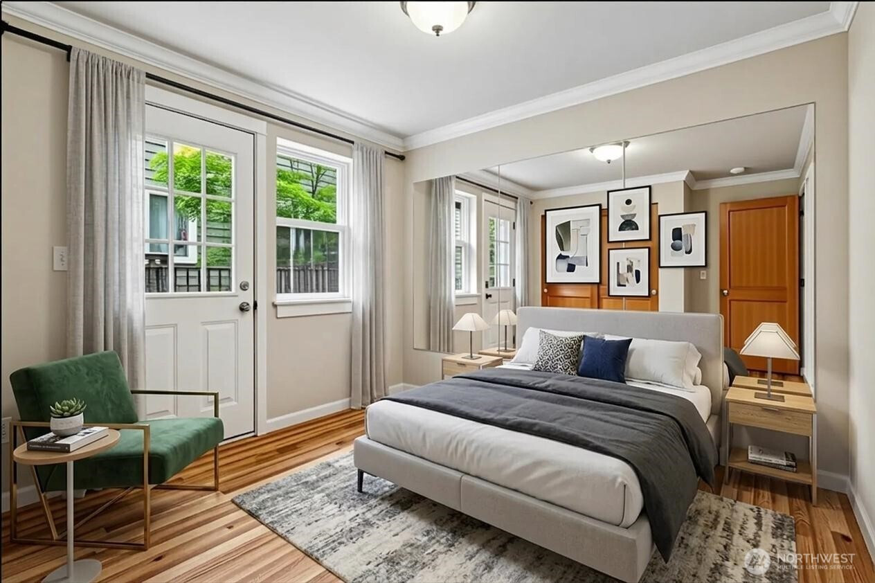 Welcome to this extra-wide 3-bed, 3.25-bath home ideally situated near shopping, medical centers, downtown, and lake, with convenient transportation in all directions. On a quiet, tree-lined street, enter through iron gates to your private oasis in the city. Enjoy rare abundant parking: a double garage plus a wide private driveway for guests or storage. How will you personalize the fully remodeled garage – a gym , shop, studio, or simply let the mirror gloss floors showcase your cars? Turn into the entry-level bedroom featuring its own ensuite bath, entrance, and private yard. Then, walk up to the expansive main living floor boasting a seamless layout from dining area and wide airy living room to family room and modern kitchen. Two decks extend the main floor for seamless indoor-outdoor living and entertainment. Leave behind the hustle and bustle as you take in the fragrance of your rose garden, snuggle up by the fireplace, or gaze at the city with a beverage in hand. Walk up the grand two-story stairwell where you relax in the huge primary suite. Keep loved ones close by in the spacious third bedroom with their own full bath. Stay cozy year-round with heated bathroom floors. Exquisite woodwork and solid oak floors speak to the quality construction and care of this home. No HOA dues. Bright, airy, and warm. Never rented. A rare combination of space, flexibility, and location, this home delivers urban convenience with quality, comfort, and privacy.