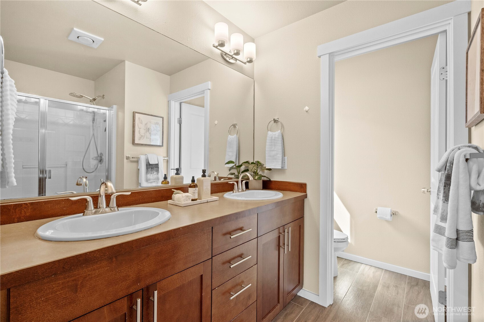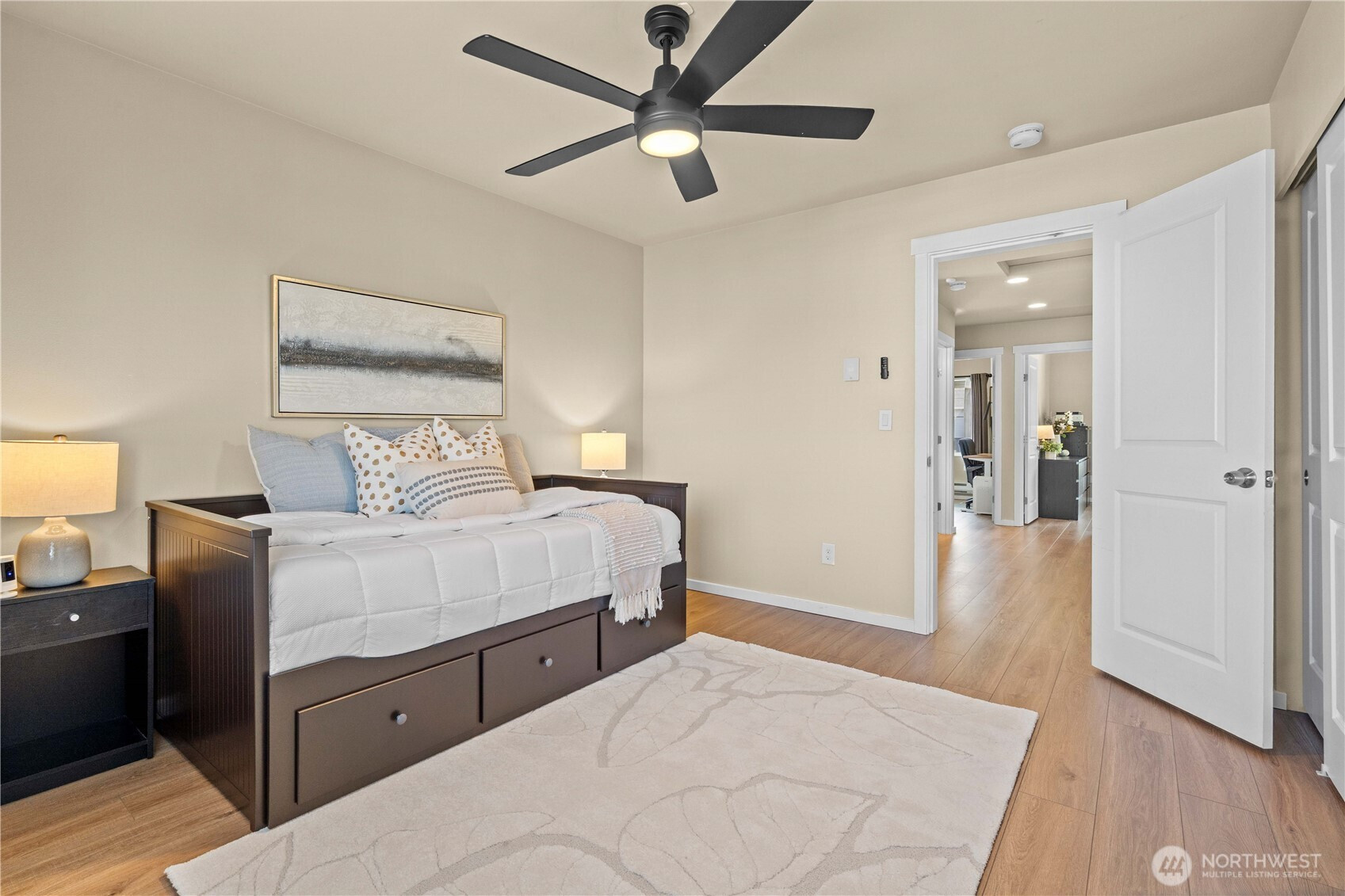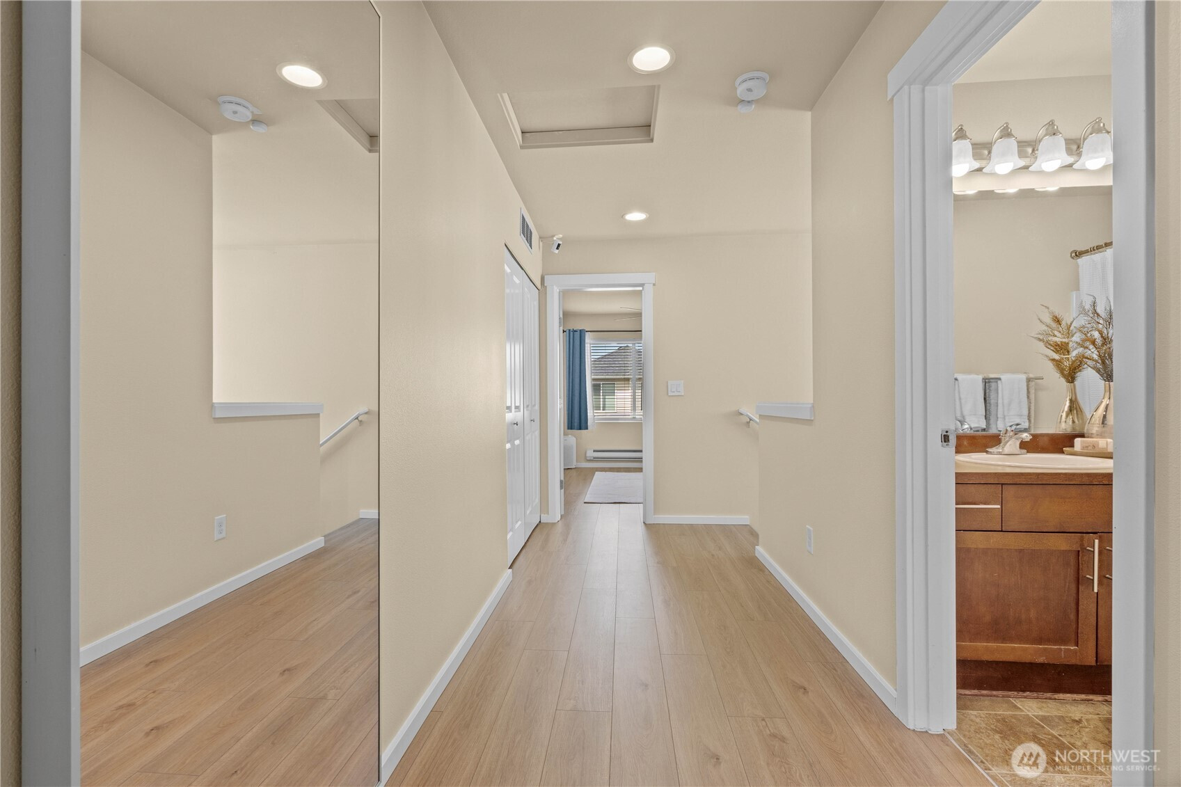 Move in ready and beautifully maintained, this 3-bedroom, 2.5-bath home in the sought after Monterey Park community offers comfort, style, and everyday convenience. The open concept main level is designed for modern living and effortless entertaining, featuring upgraded LVP flooring that adds a fresh, cohesive feel throughout the entire home. The kitchen flows seamlessly into the dining and living areas, creating a bright and inviting atmosphere filled with natural light. Upstairs, you’ll find well sized bedrooms, including a comfortable primary suite that provides a perfect retreat at the end of the day. All heaters are controlled by SMART WIFI thermostats for added efficiency and convenience. Step outside to a low maintenance backyard ideal for summer BBQs, relaxing evenings, or simply enjoying the outdoors without the extra upkeep. The home also includes Chamberlain MyQ WiFi Smart garage door hub, open and close garage door from anywhere with your smart phone. Located in a welcoming neighborhood with walkable streets, nearby parks, and easy access to shopping, schools, and major commuter routes, this home truly checks all the boxes. A great opportunity for buyers looking for value, condition, and location don’t miss your chance to make it yours!