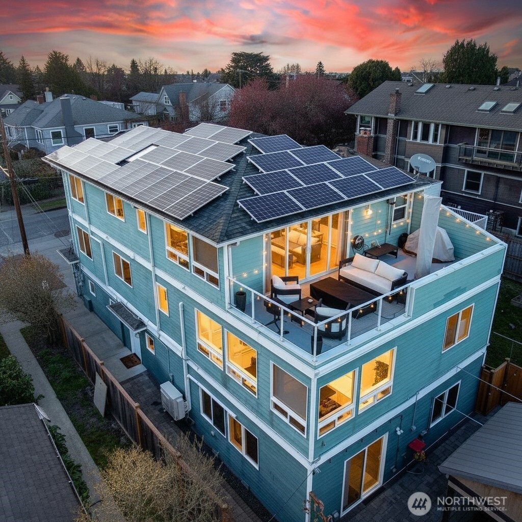 STUNNING. The ultimate private home. 4 bedrooms, 4 bathrooms. Nestled in the heart of the coffee enriched Wallingford/Woodlawn Park neighborhood of Seattle. The primary room is on the top floor that opens out to a private deck. Basement: Recently fully finished basement. A full bathroom, new carpet, and new fixtures. Possible rental. Solar Panel: Purchased 2015. Manufactured by Solar World/Emphase. Installed by West Seattle Energy. Boiler: Purchased 1995. Repaired 2017. Manufactured by Munchikin Contender (MC120). Installed by Washington Energy Services. Security System: Digital Home Northwest *(Ring camera over garage door). Woodland Zoo Park: Walking distance. BY APPOINTMENT ONLY. TENANTS OCCUPY ROOMS. 24 HOUR NOTICE REQUIRED. NO APPOINTMENTS UNTIL APRIL 24THL BETWEEN 10 AM to 6 PM. CONTACT LISTING AGENT: ART HIDALGO. 425-466-45623.