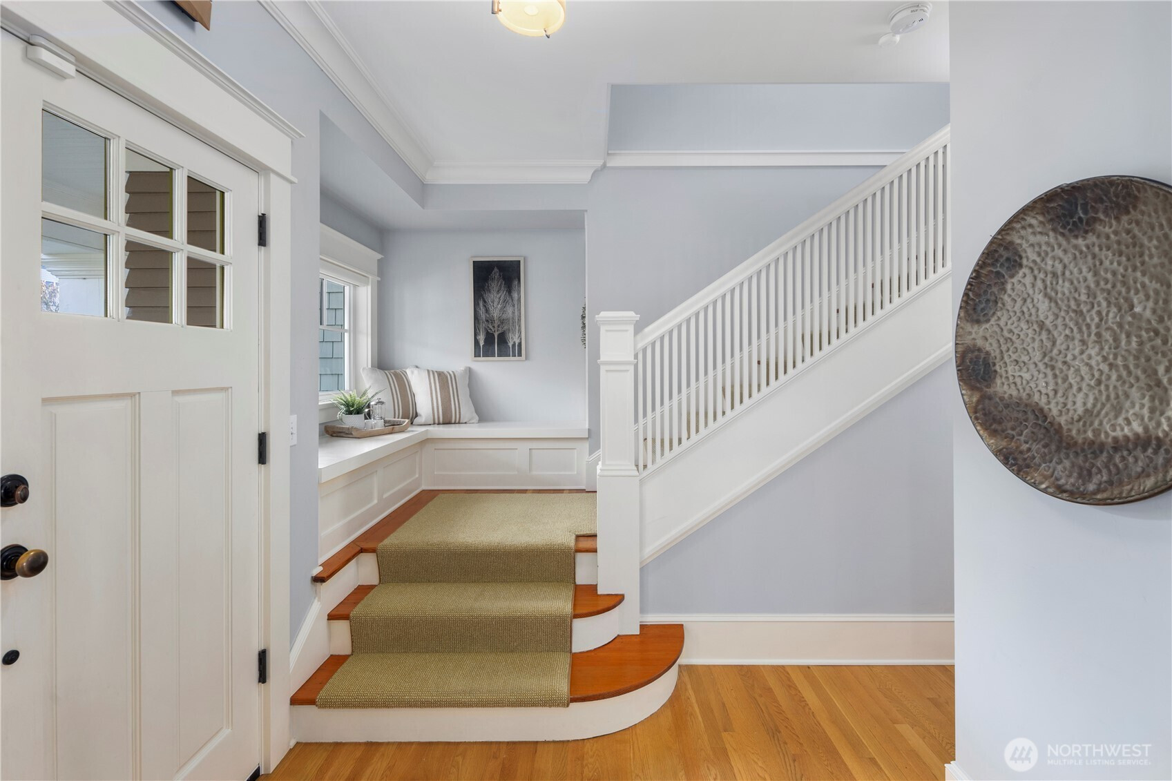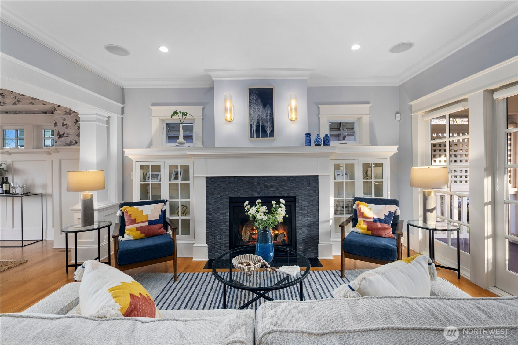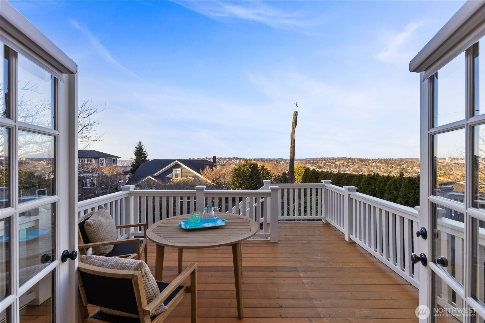 A rare south-slope offering where architectural legacy meets extraordinary horizon views. Gracefully positioned on Queen Anne’s coveted south slope, this fully renovated 1910 Craftsman captures a breathtaking sweep of the Pacific Northwest’s most iconic landscapes. From Mount Baker and the Cascade Range to the Olympic Mountains, the layered panorama unfolds across Lake Union and westward over the Lake Washington Ship Canal toward the Ballard Locks, Shilshole Bay, and the expanse of Puget Sound beyond. It is a remarkable convergence of mountain, waterway, and maritime vistas that defines elevated Seattle living. Complete remodel 2011. Classic covered front porch creates a commanding presence, while windowed French doors offer an inviting glimpse into light-filled interiors. Thoughtful sightlines extend through the living and dining rooms, blending historic warmth with the drama of the surrounding horizon. Period details & timeless craftsmanship remain intact, honoring the heritage of this distinguished Queen Anne residence while delivering the comfort and functionality expected today. With four bedrooms total, including two primary suites — one with lower-level access — the layout offers exceptional flexibility for guests, extended living, or private retreat space. All of this, moments from Queen Anne Avenue’s boutiques and dining, with seamless access to downtown Seattle and South Lake Union.