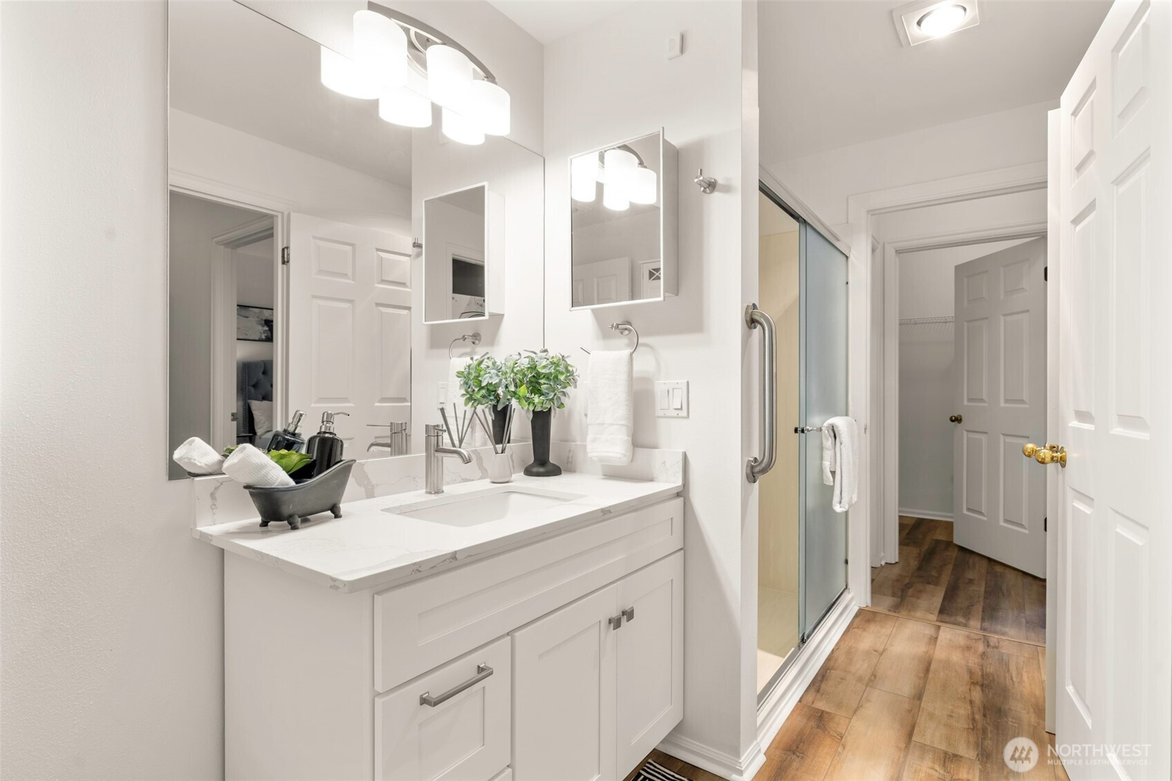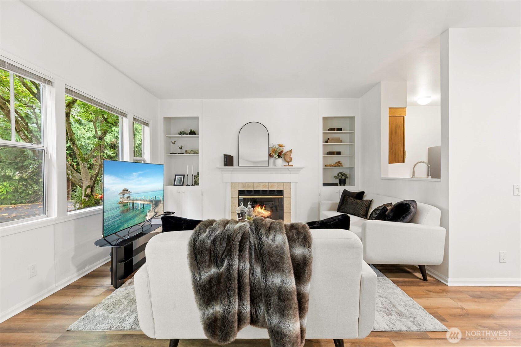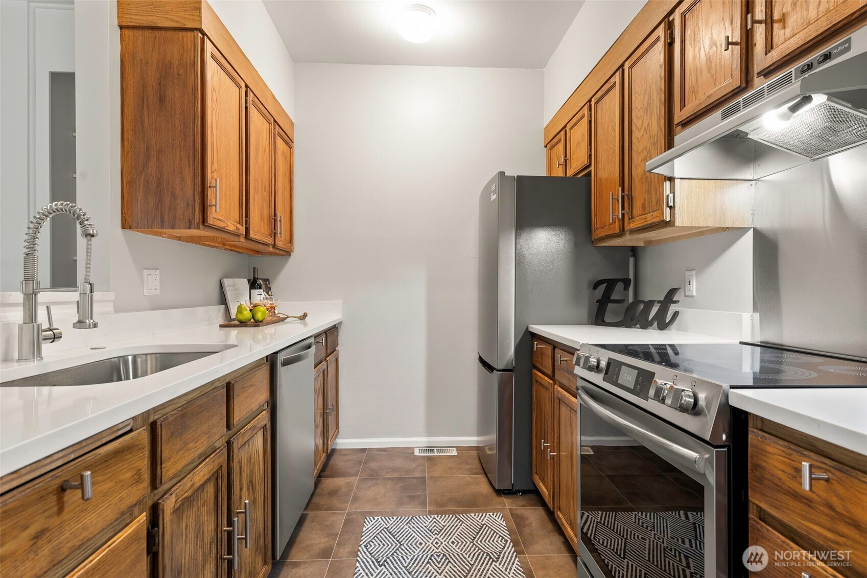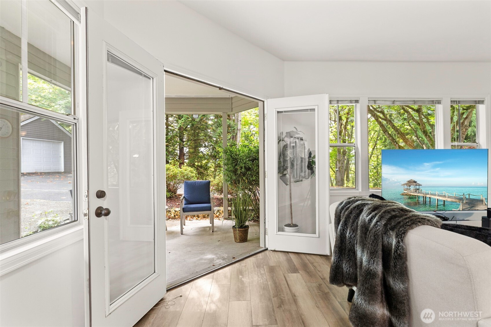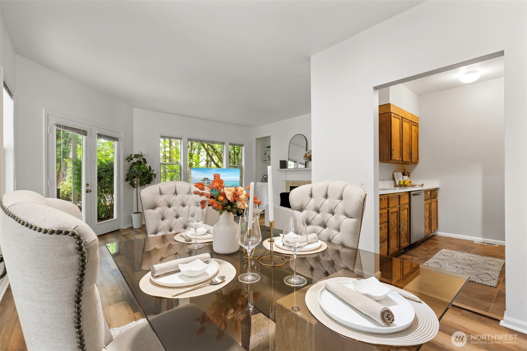 Welcome to your serene retreat for 55+ in the heart of Providence Point! This charming lower-level condo is tucked away on a quiet cul-de-sac & offers the perfect blend of comfort & convenience. Step out from your living room through elegant French doors onto a covered patio w/peaceful forest views—an ideal spot for morning coffee, gardening, or relaxing with pets. Inside, the kitchen shines w/quartz countertops, updated hardware & all brand-new SS appliances. The dining & living area is warm & inviting, featuring a cozy wood-burning fireplace for those crisp Northwest evenings. The spacious primary suite includes a walk-in closet & an updated bath w/convenient in-unit washer & dryer. Come discover the lifestyle you’ve been looking for!
