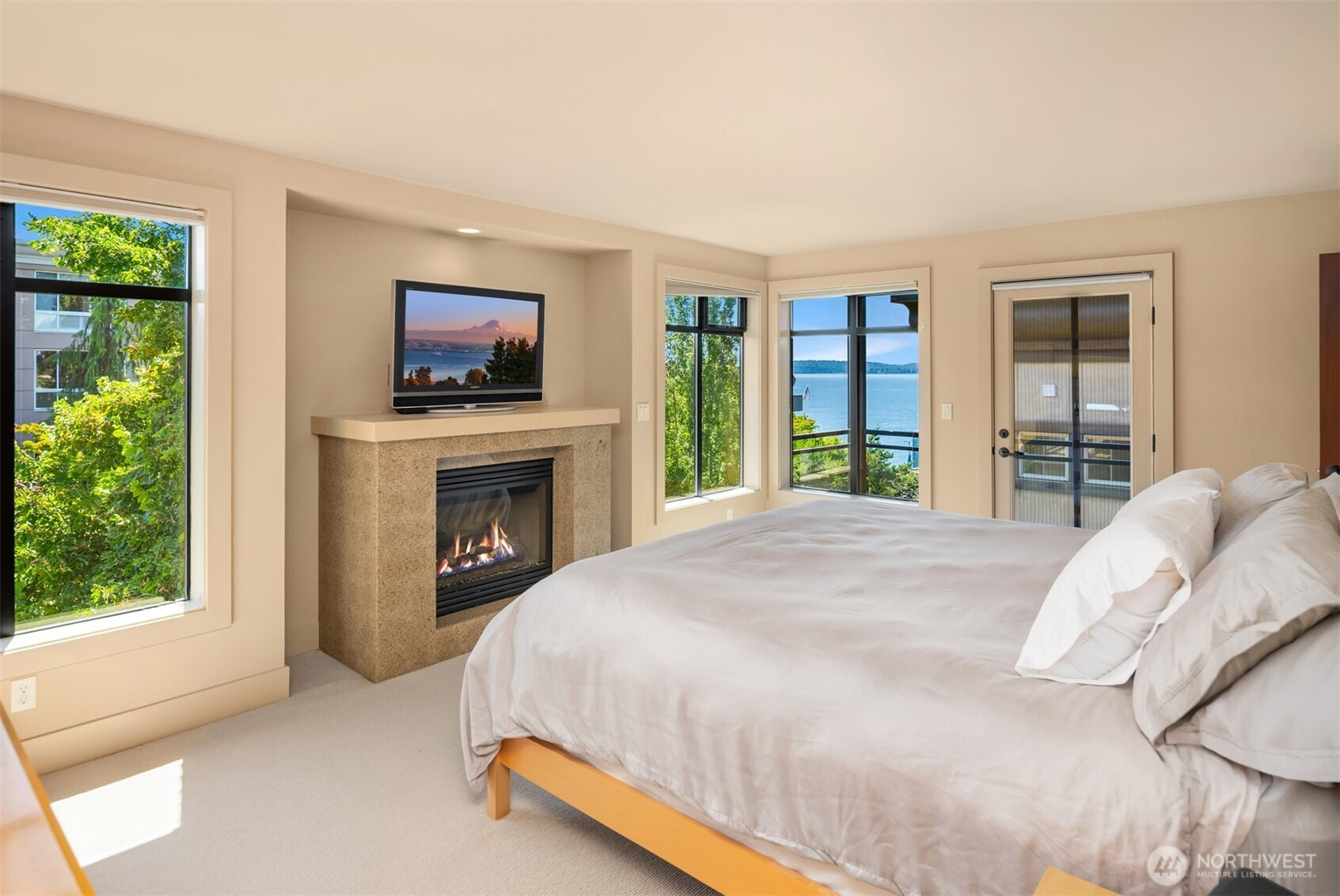 Nestled in Kirkland’s coveted Moss Bay, this end-unit townhome exudes luxury just steps from the lake, parks, Google, and the vibrant downtown waterfront. Soaring ceilings, walls of windows, and high-quality finish work throughout create an inviting, refined atmosphere as you move through the home. Two private balconies showcase panoramic views of Lake Washington, the Olympics, and the lush garden lawn. Rich cherry floors and custom cabinetry define the chef’s kitchen, featuring top-rated appliances and flowing seamlessly to dining and the spacious living room with balcony—ideal for al fresco grilling and effortless entertaining. Upstairs, two en-suite bedrooms await, including a tranquil primary retreat with private balcony, fireplace, soaking tub, and walk-in closet. And on the main floor, a generous bedroom with fireplace, wet bar, and full bath lives like a private suite—beautifully suited for multi-generational living, guests, a luxe office, media room, or studio-style retreat. Pre-inspected, turnkey, and impeccable!