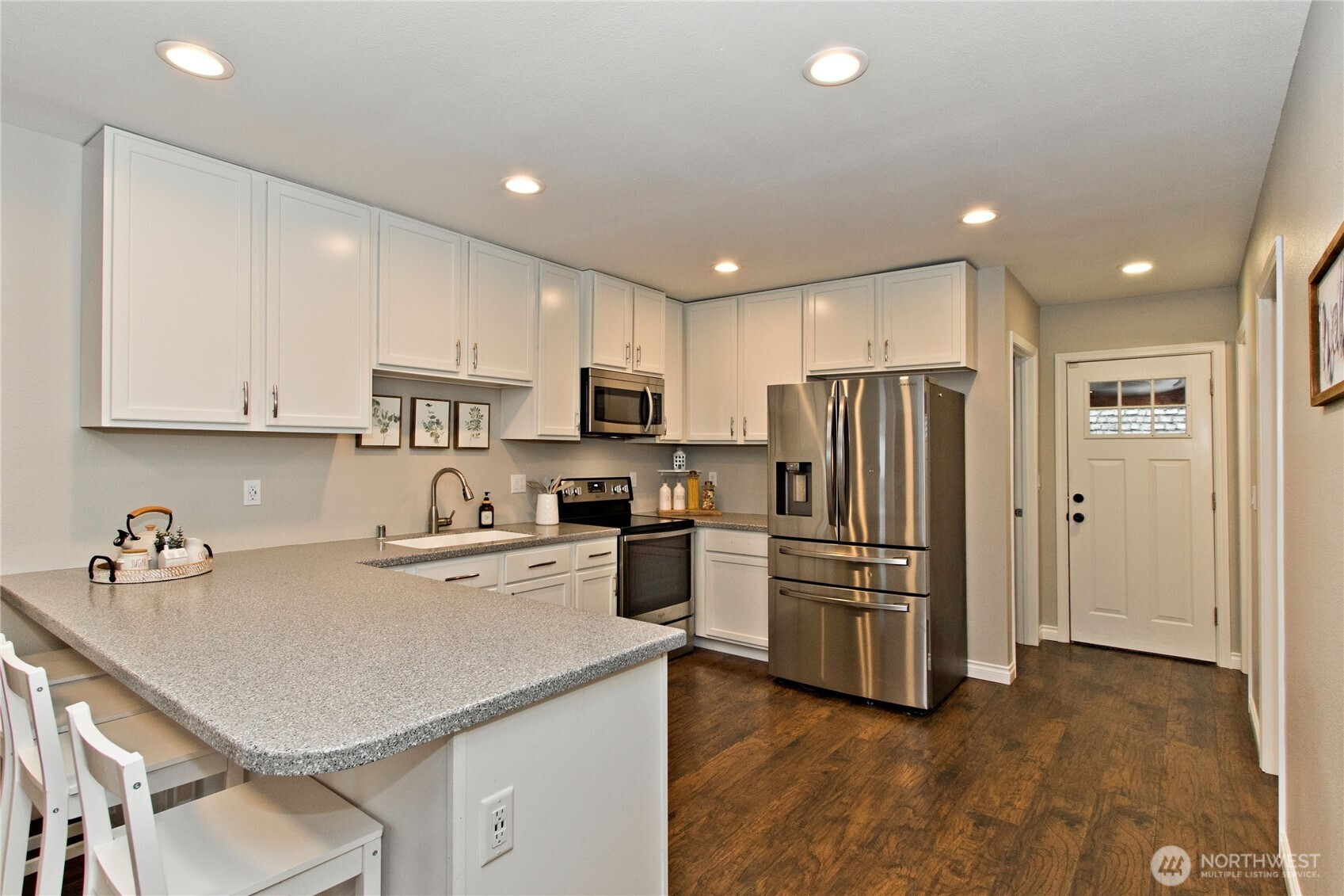 Welcome to the best of Enumclaw living! This charming 2-bedroom home features an extra finished room with a closet, offering the flexibility and comfort that today's buyers are looking for. With 2 full bathrooms, spacious bedrooms, beautiful engineered hardwood flooring, and a convenient utility/mudroom, the layout is as functional as it is inviting. Gather around the classic wood-burning fireplace, framed by a brick surround and mantel — the perfect centerpiece for cozy evenings at home. Step outside and discover even more possibilities with a detached flex space — perfect as a craft room, home office, workout room, or whatever suits your lifestyle. The fully fenced, generous .20-acre lot provides plenty of room to relax, play, and entertain, complete with front and back decks ideal for enjoying the beautiful Pacific Northwest outdoors. This home was thoughtfully and fully updated in 2018, including new siding, windows, kitchen, bathrooms, flooring, electrical, A/C, plumbing, hot water heater, and furnace. It is also wired for a generator, giving you added peace of mind year-round. A brand-new septic system was installed in 2023, and a new roof and gutters were completed in 2026, making this truly a move-in-ready home with major investments already made for you. All of this in the heart of Enumclaw — don't miss your opportunity to make it yours!