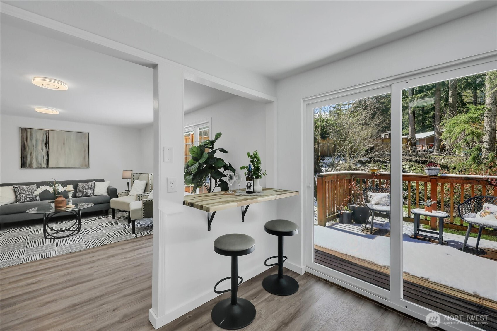Wonderful, remodeled rambler in the coveted Wilderness Rim neighborhood of North Bend. This home features vinyl plank flooring as well as new carpet in all 3 bedrooms. The kitchen has newer cabinets with quartz counters, stainless steel appliances as well as a pantry. It flows into an eating nook with access to the back deck that is plumbed for a BBQ as well as an oversized patio. Cozy family room with fireplace adjoins the kitchen/eating area. A separate room perfect for an at home office is conveniently located right when you walk in from the garage. Close to recreation such as Rattle Snake Lake and easy freeway access. Welcome home!