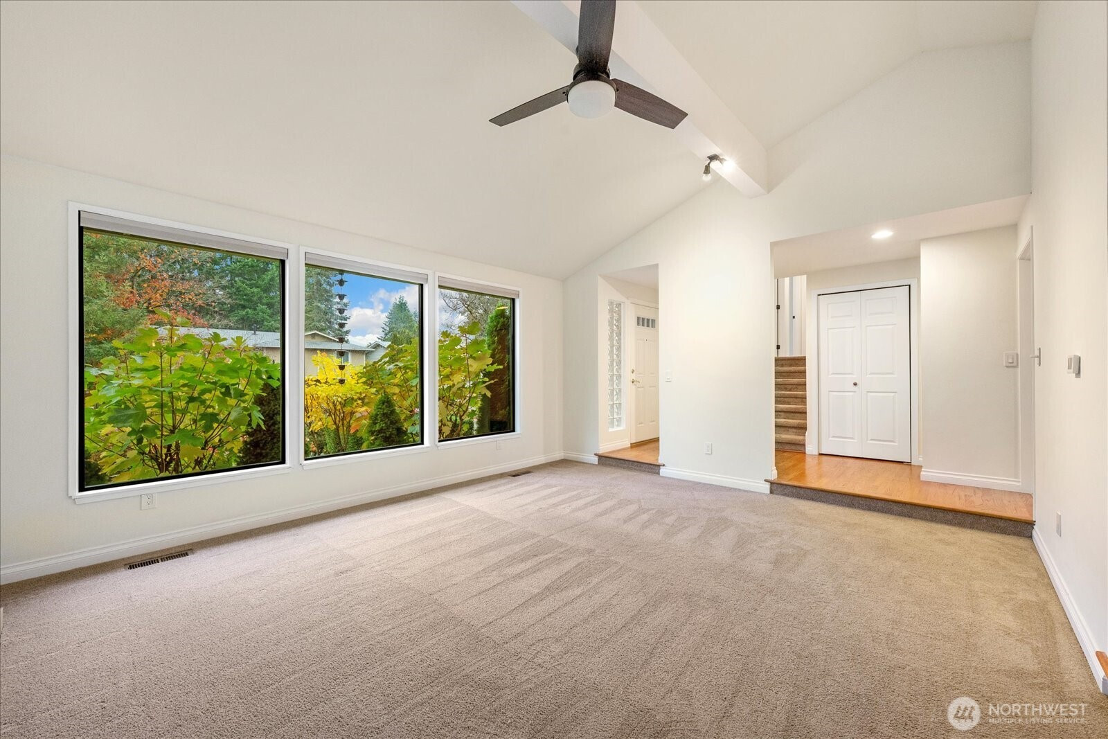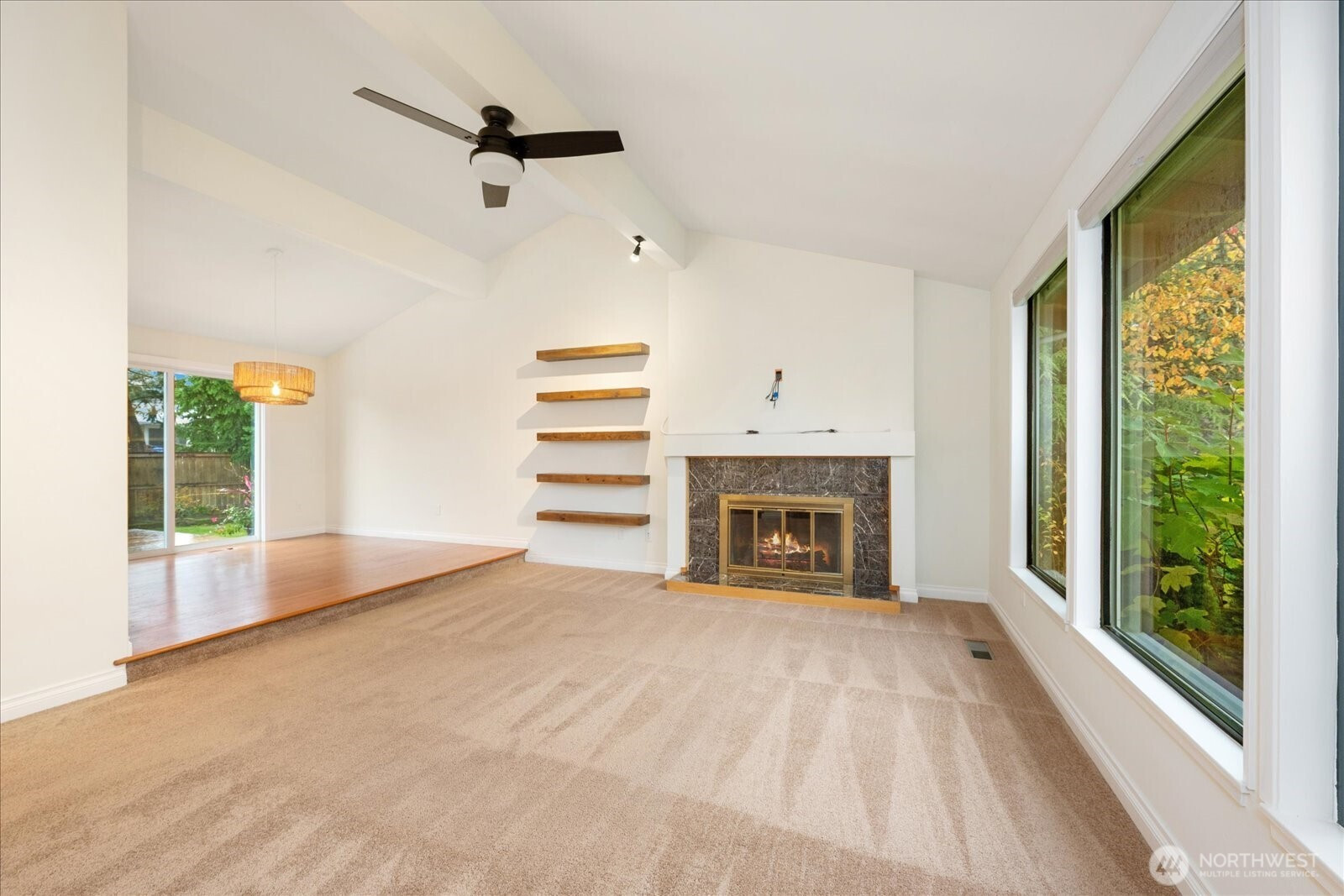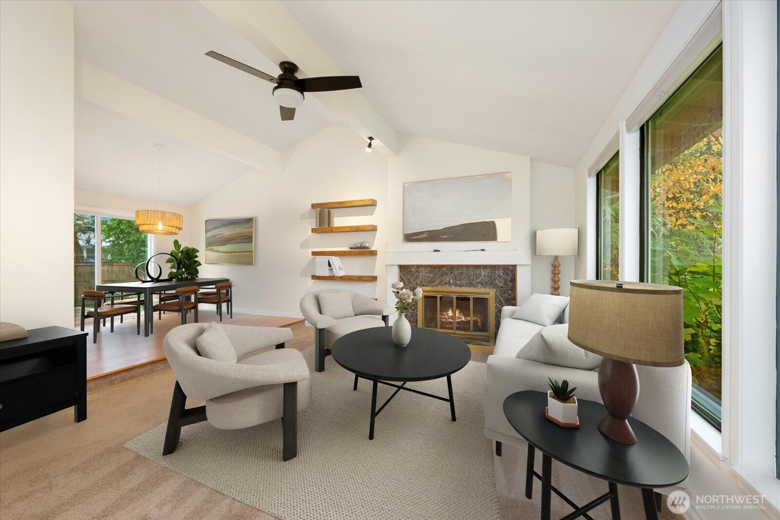 Bath Off Primary, Ceiling Fan(s), Double Pane/Storm Window, Dining Room, Fireplace, Vaulted Ceiling(