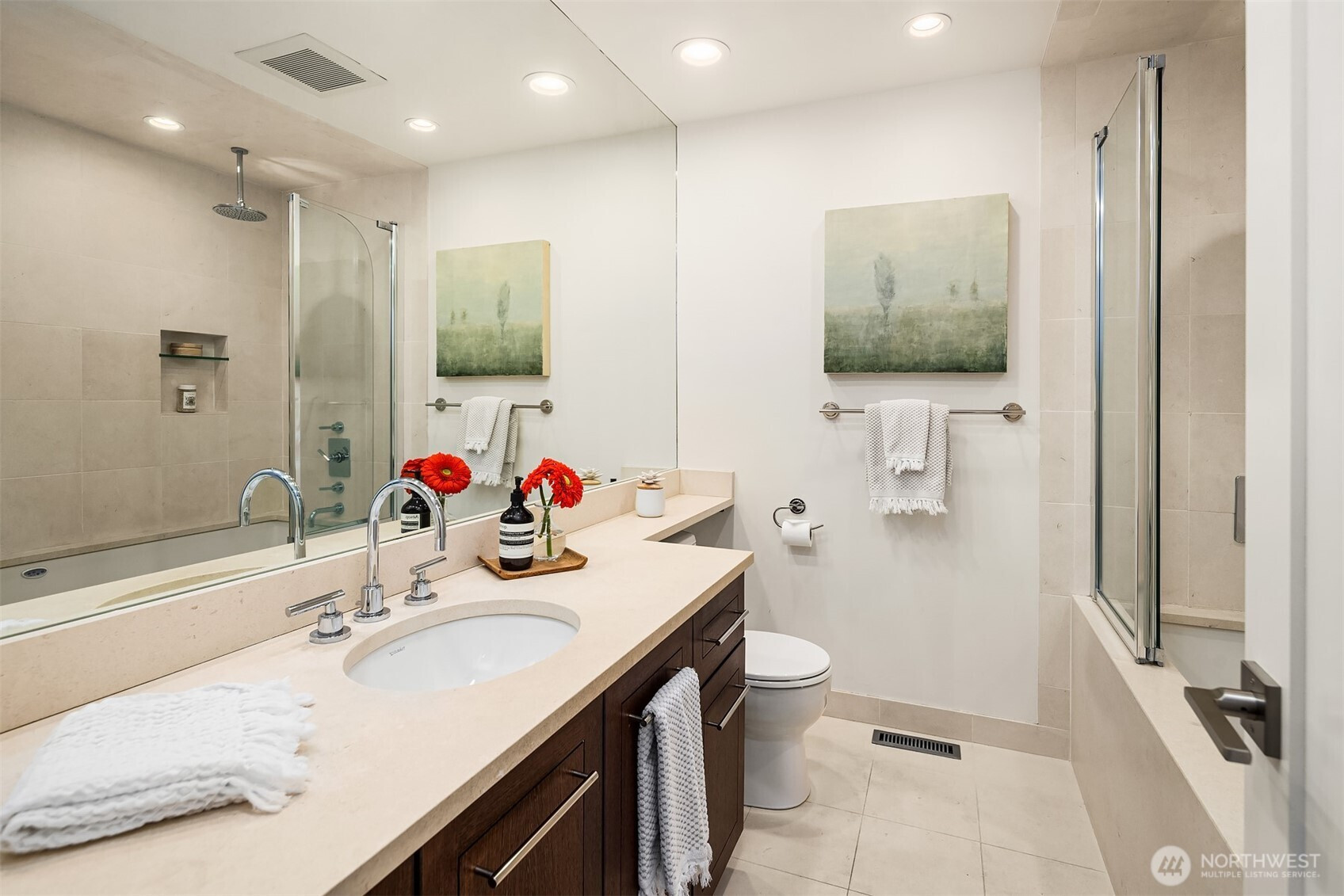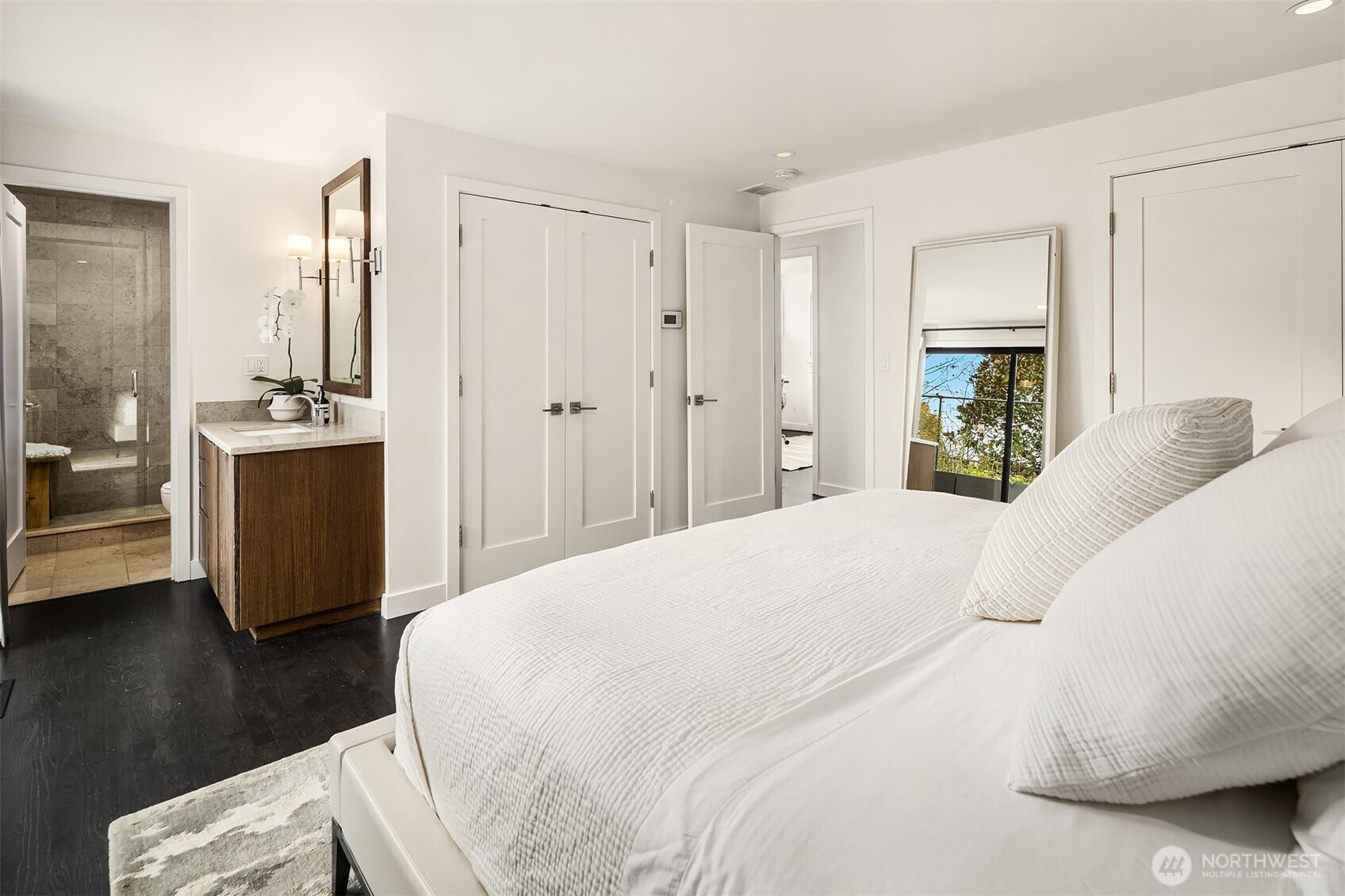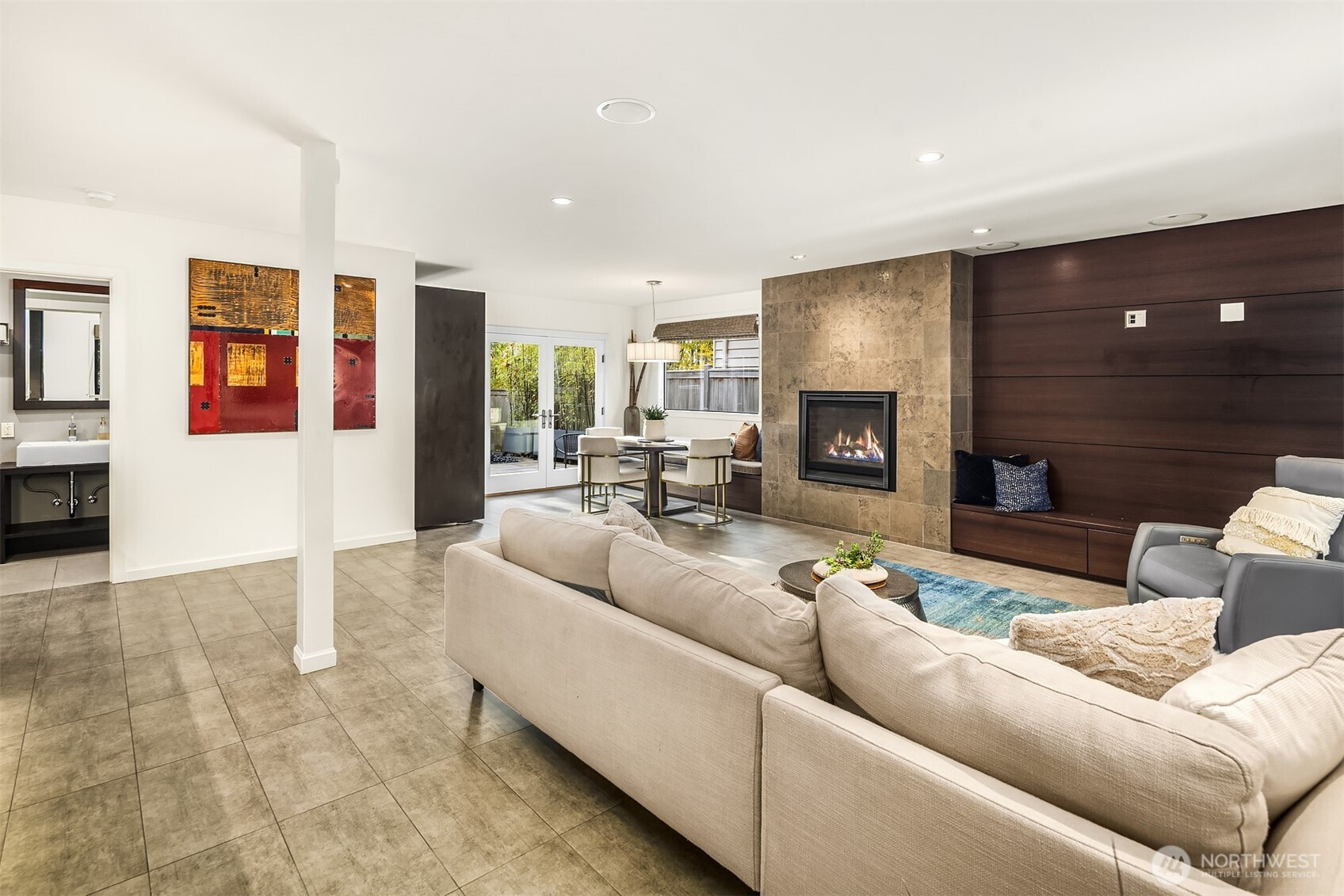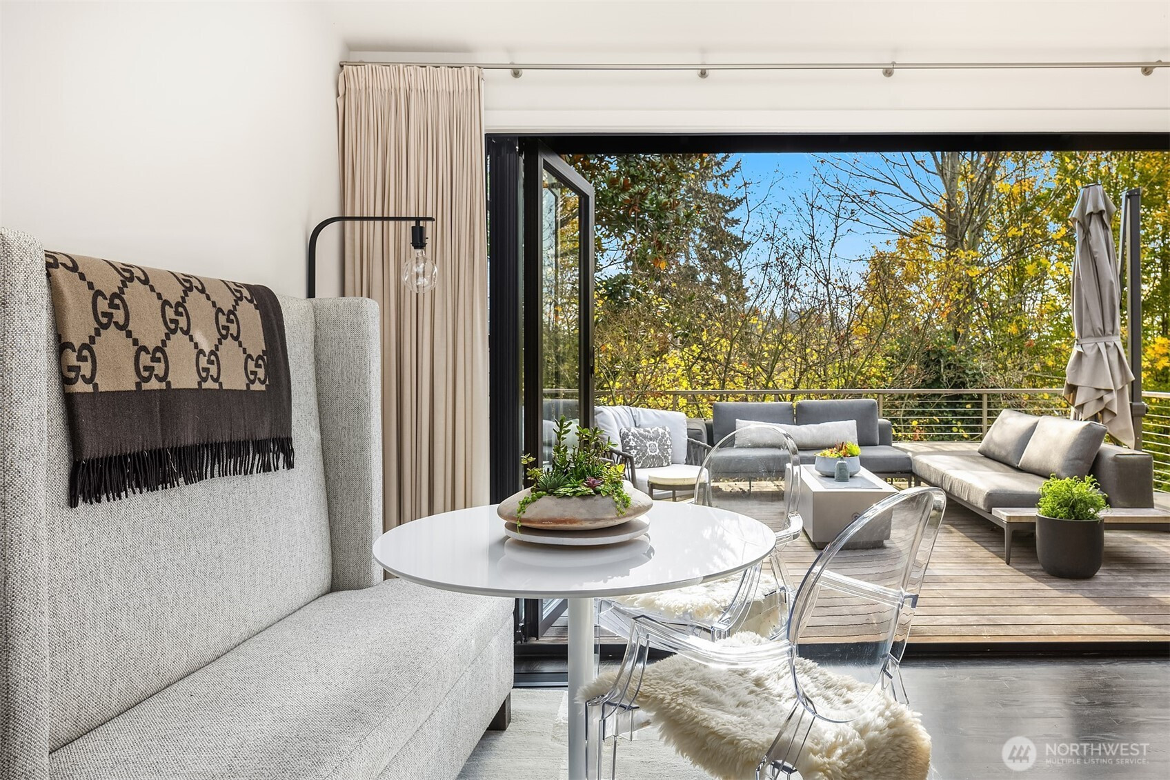 Seamless Indoor/Outdoor Living: Stunning NW Contemporary located above Ferry & Lincoln Park w/beautiful Sound & Mtn views. Light floods open-concept living space w/vaulted ceilings & dark hardwoods. Spacious living rm w/gas frplc flows to Chef's kit w/top-of-the-line appls, beautiful cabs & inviting eating area-perfect for culinary enthusiasts who appreciate views while cooking. Nanawalls lead you to private Ipe deck for alfresco dining & relaxation. Luxurious primary suite w/3/4 bath & 2nd deck w/hot tub-for unwinding. 2 more bdrms & a full bath w/jetted tub. Versatile lower level boasts rec room w/2nd gas frplc, bar area w/wine fridge, addl bath & utility rm. Landscaped yard w/patio & greenhouse. A/C, 2-car gar w/workshop on quiet street
