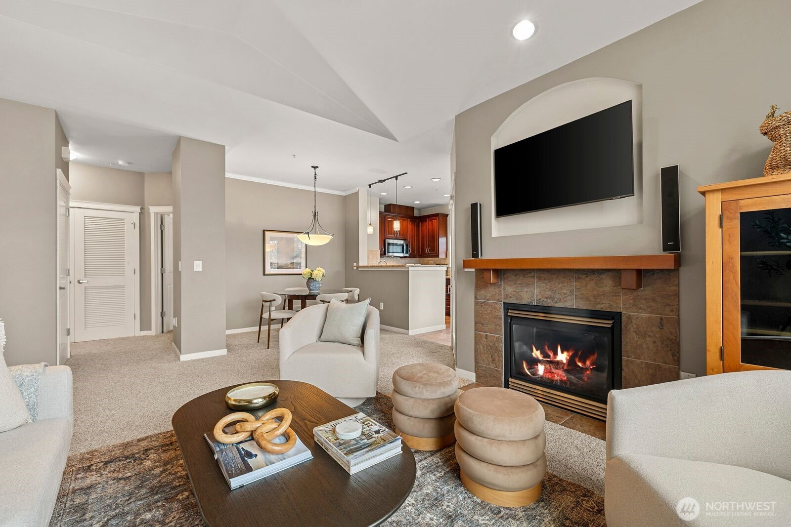 Perfect location! Jacobs Creek is one of Sammamish’s most sought-after gated communities! This desirable 2-bedroom end-unit home offers effortless one-level living with an attached garage plus driveway parking. The spacious open floor plan is filled with natural light from oversized windows and vaulted ceilings, creating a bright and inviting atmosphere. Enjoy peaceful territorial views from the great room, which flows seamlessly into the updated kitchen featuring solid wood cabinetry, slab countertops, stainless steel appliances and a sit-up breakfast bar. The dining room includes a built-in buffet, perfect for entertaining and storage. Step outside to the private, covered deck, ideal for year-round relaxation and enjoying the serene setting. The primary suite includes an en-suite bath, fireplace and walk-in closet, while the oversized second bedroom with terrace offers flexibility for guests, office, or hobbies. Community amenities include a P-Patch garden, walking trails, and BBQ picnic areas. Located within walking distance to Cedar Trails Elementary, with easy access to freeways, parks, lakes, and everything Issaquah and Sammamish have to offer. This is the one you’ve been waiting for!