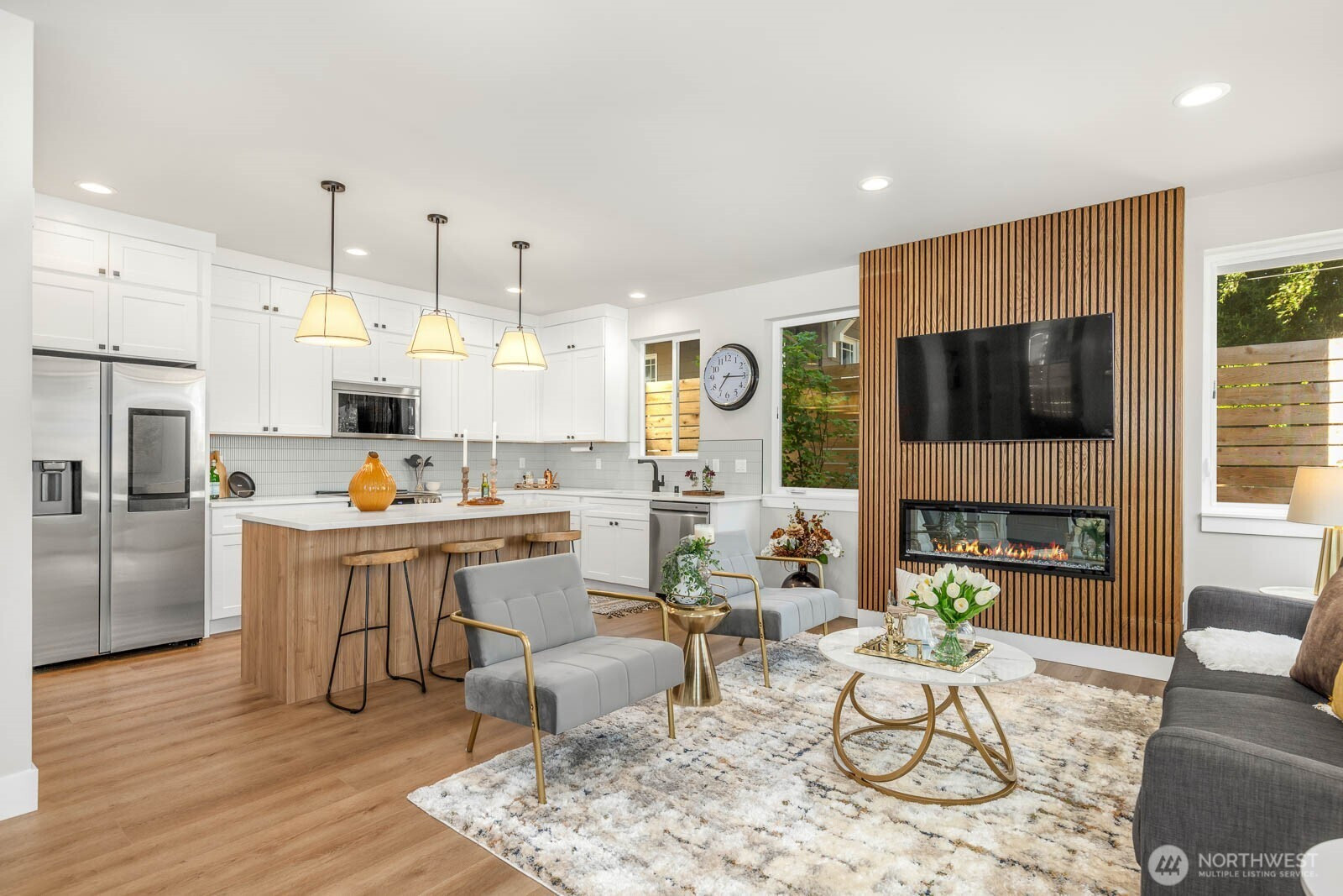 WELCOME HOME! This elevated, free-standing, luxurious 3 bed/2.5 bath home seamlessly blends luxury, function, & style. This NEW, single-family home will knock your socks off! Enjoy EV charging, high-end finishes, 2 west-facing decks w/ stunning sunset views, & fenced yard/dog run. Step into a chef-inspired kitchen featuring: spacious pantry, quartz island, open-concept living/dining area + 1/2 bath. Enjoy sun-filled entertaining or cozy up to your dreamy fireplace. The 2nd level offers two large bedrooms (one w/ deck), + full bath. Upstairs: Primary suite is a TRUE RETREAT— bask in luxury: 5-piece bath, expansive walk-in closet, & private deck with VIEWS of Puget Sound/Olympic Mountains. Blocks from Lincoln Park, Colman Pool, Ferry & Alki.