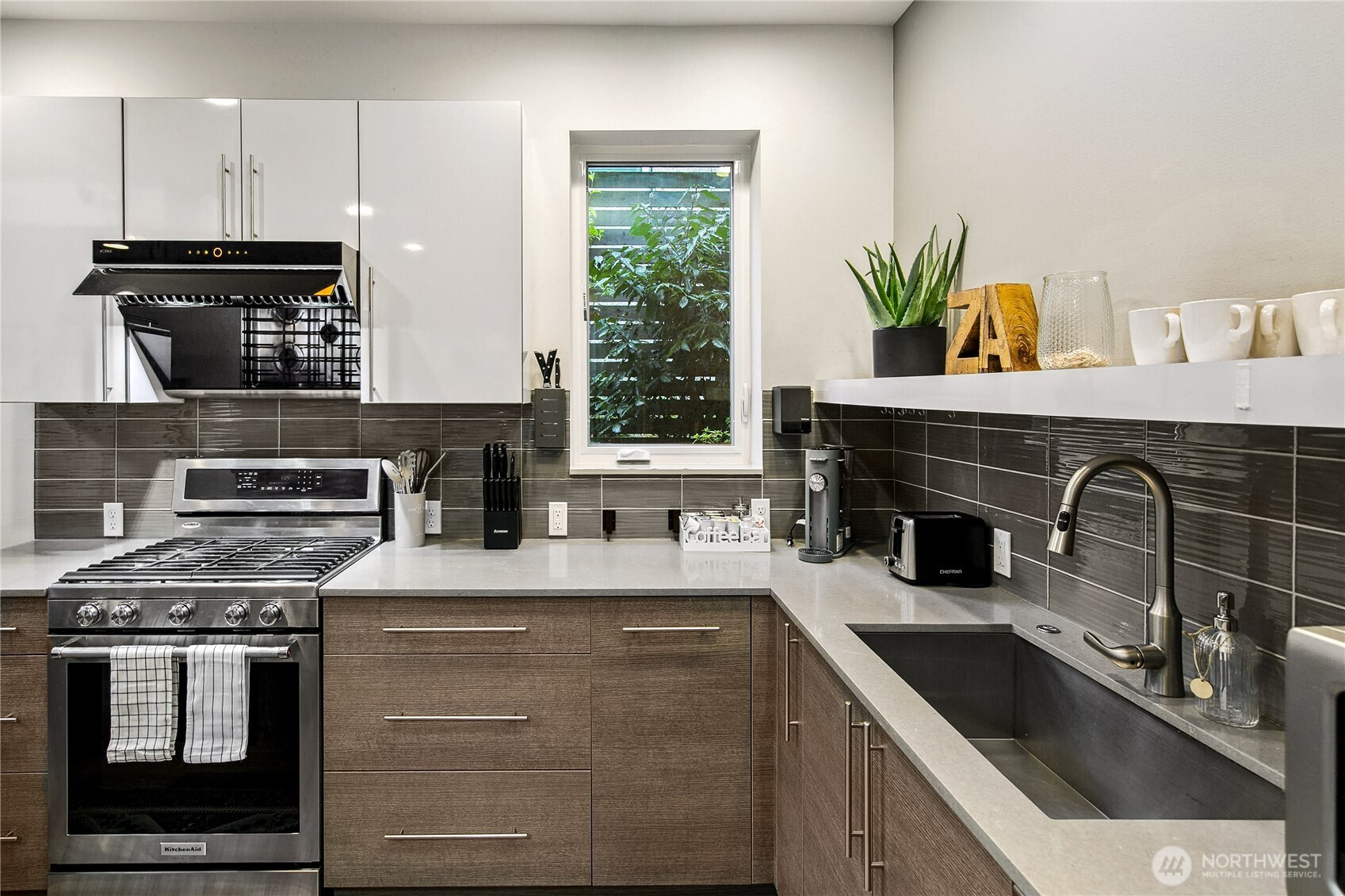 This sophisticated townhome offers enduring quality and timeless design in a vibrant urban location with an incredible Walk Score of 87. The home features a bright, open floor plan with dramatic ceilings that open to the second level. The true chef's kitchen comes equipped with a premium KitchenAid appliance package, perfect for entertaining. Gorgeous hardwood stairs and landings flow throughout the main living areas, complemented by abundant natural light from numerous windows. The master suite and private rooftop deck offer sought-after views of the city skyline and Lake Union. Enjoy seamless access to shops, restaurants, parks, Downtown, SLU, Hwy 99, and I-5 via car, bike, or transit. Includes garage parking.