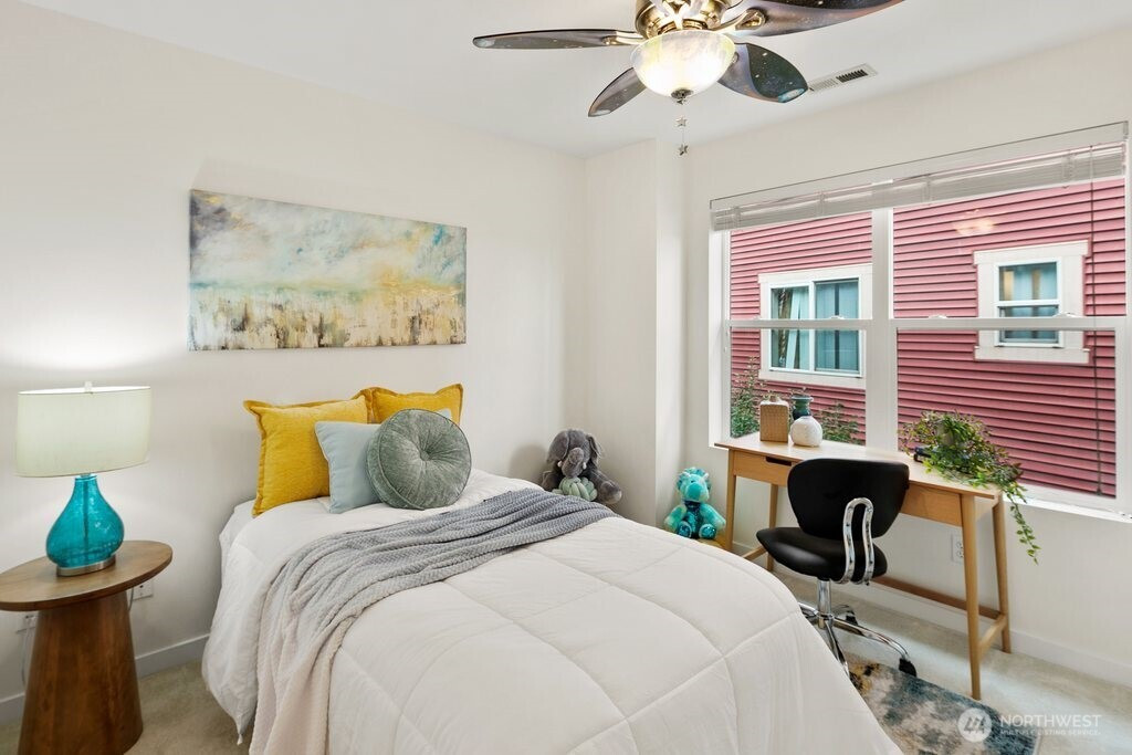 Beautifully maintained 3-bedroom home offering light-filled spaces, modern updates, and unbeatable walkability. The open kitchen features a large island, stainless steel appliances, shaker cabinetry, and a gas range perfect for everyday living and entertaining. Main-floor dining nook, powder room, and laundry add convenience. Upstairs, all bedrooms include custom closets. The spacious primary suite features peekaboo views of Downtown Bellevue and the Cascades, plus a stylish ¾ bath with dual vanities. Recent upgrades include a brand-new 2025 roof, fresh paint, new carpet, and polished bamboo flooring. Enjoy a large two-car garage, great storage, and a welcoming neighborhood vibe. Steps to coffee shops, parks, grocery stores, and Columbia City’s vibrant dining scene. Quick access to Cheasty Trails, Light Rail, Beacon Hill, and the West Seattle Bridge