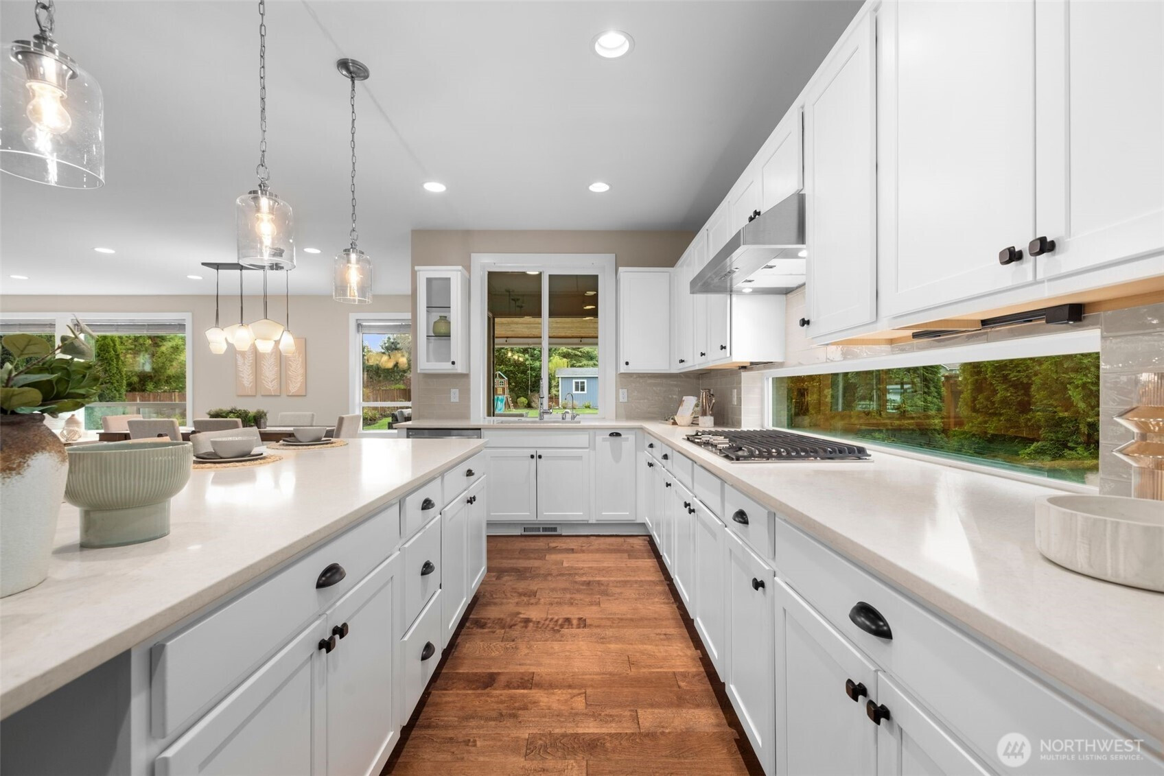 Set on a spacious 14,585 sq ft level lot, this refined Northwest Craftsman offers 5 bedrooms, a sun-drenched great room, and seamless indoor-outdoor living. Natural light pours through oversized windows, illuminating wide-plank flooring and creating a warm, inviting backdrop for both everyday living and entertaining. The chef’s kitchen anchors the home with a generous quartz island, stainless steel appliances, and walk-in pantry, flowing effortlessly into dining and living spaces and out to covered outdoor living, perfect for year-round enjoyment. A convenient main-level bedroom or office showcases custom built-in shelving, making it a perfect work-from-home haven, while the thoughtfully placed upper-level laundry room simplifies everyday routines. The primary suite offers a private escape with heated floors, a spa-inspired 5-piece bath, soaking tub, dual vanities, and a custom walk-in closet. Step out onto the expansive deck and unwind in a fully fenced backyard designed for private outdoor living, with abundant space for entertaining, play, or gardening, along with a versatile detached outbuilding. A 3-car garage and generous driveway provide ample parking. Ideally located near parks, trails, schools, and major commuter routes, this home offers a perfect balance of comfort, function, and accessibility.