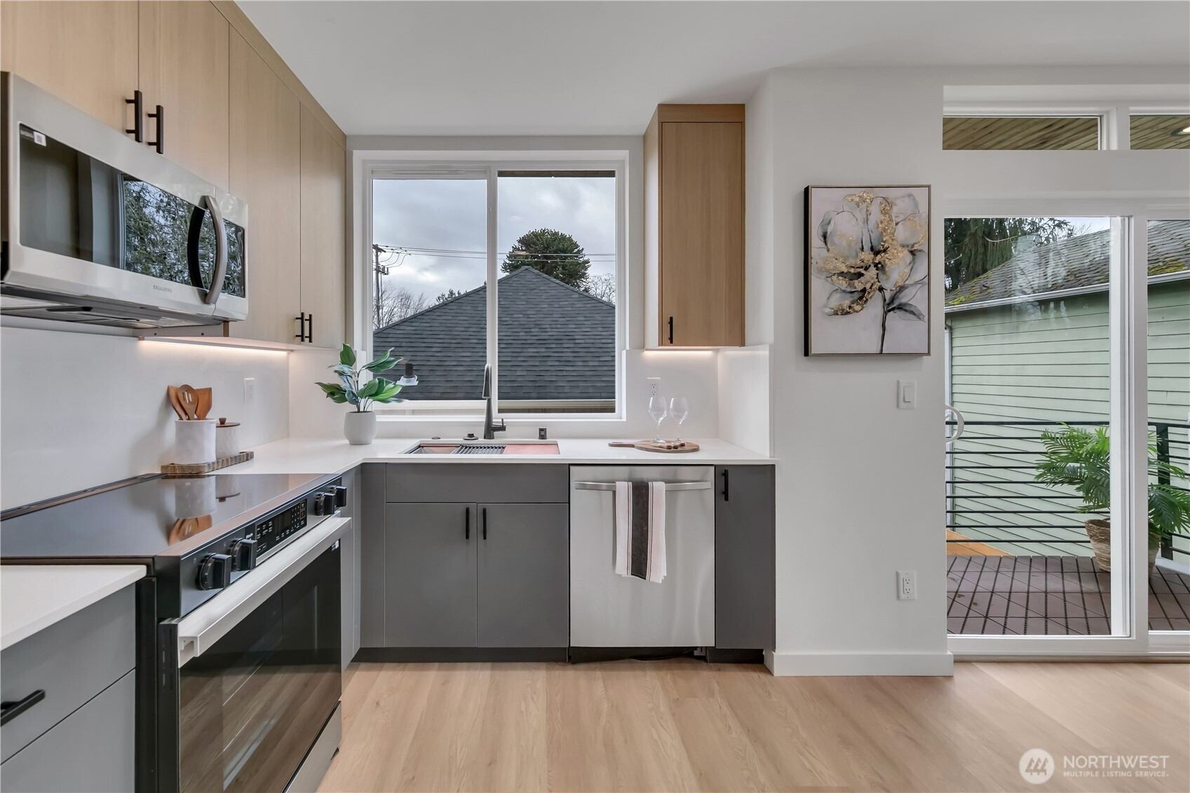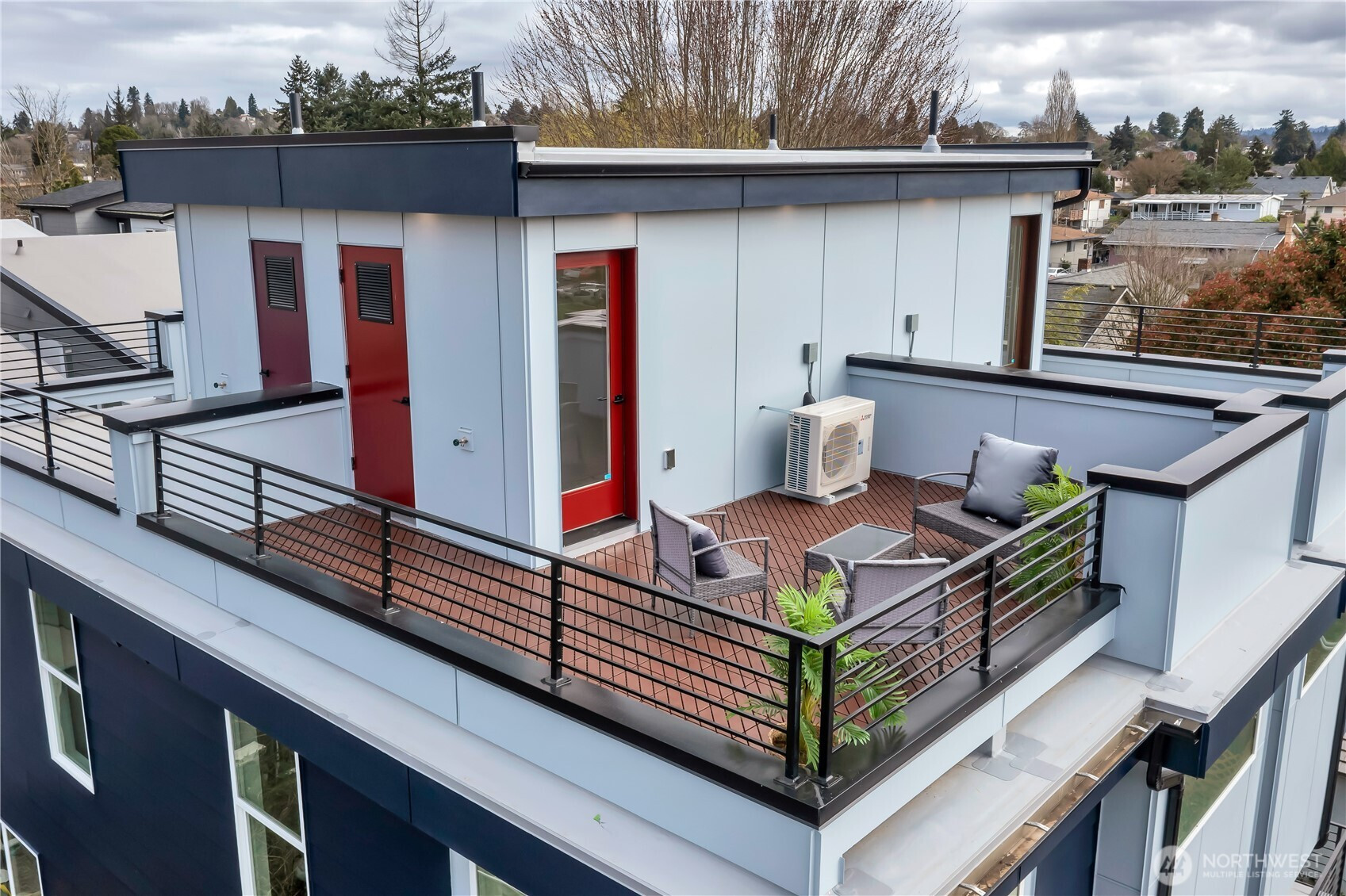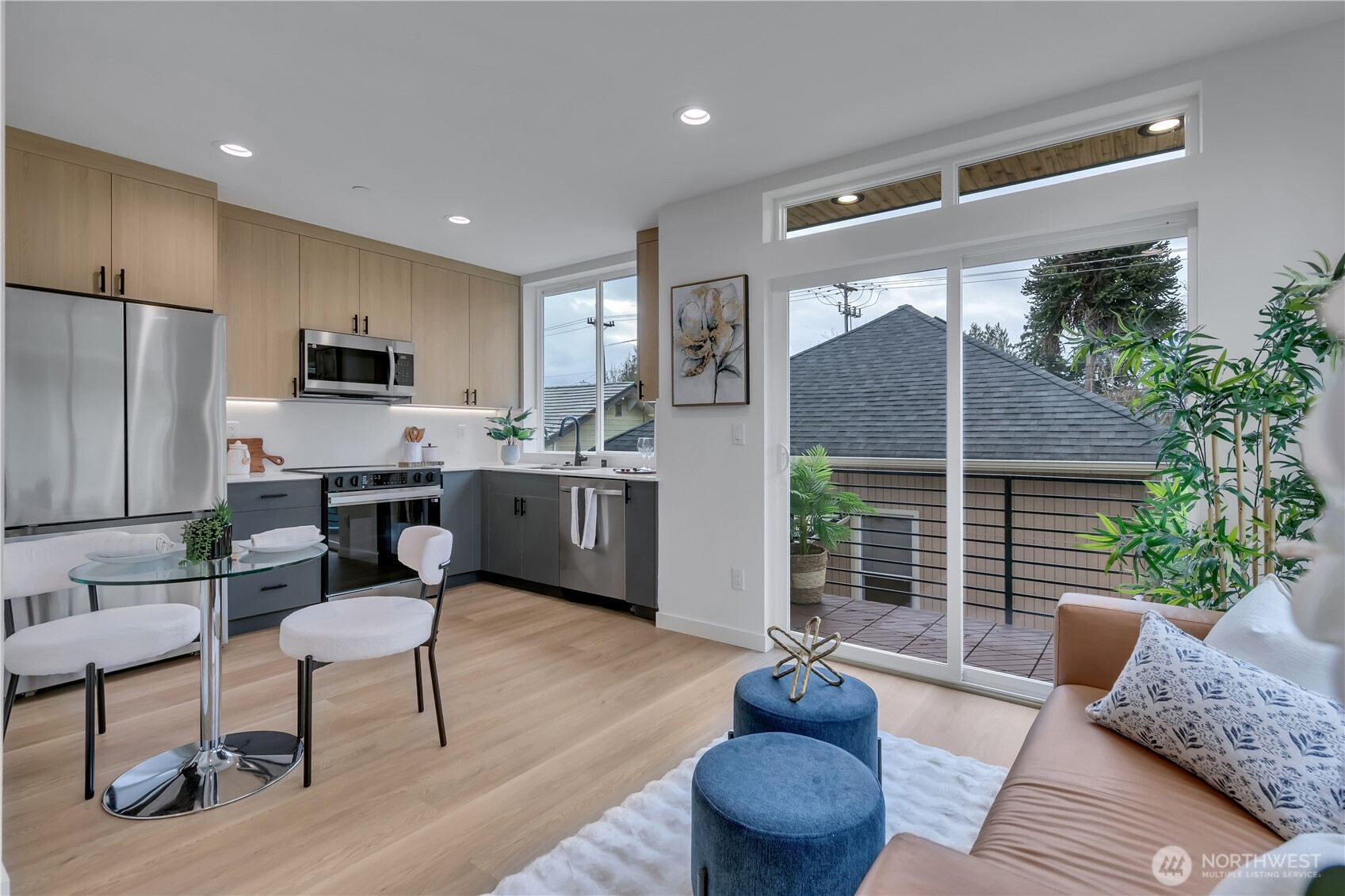 Welcome to this striking new-construction home where modern architecture meets urban convenience in vibrant Southeast Seattle. Designed with clean lines, open spaces, and contemporary style, this thoughtfully crafted residence blends form and function for today’s lifestyle. Inside, a stunning two-tone chef’s kitchen takes center stage, featuring sleek quartz countertops and backsplash for elegance and durability. The kitchen flows seamlessly into a bright, open living area anchored by a modern fireplace and extending to a private covered deck—perfect for relaxing or entertaining year-round. This smartly designed home offers 2 bedrooms, 2.5 baths, and a versatile flex room ideal for a den or home office. The top-floor primary suite is a private retreat, featuring a bathroom with heated floors, while the expansive rooftop deck captures peaceful park views for morning coffee or evening gatherings. Every home is built for comfort and efficiency with high-efficiency heating and air conditioning, modern finishes, and contemporary design throughout. Located just a short walk to Othello Light Rail, nearby shops, dining, and parks. Limited-time $10,000 buyer incentive and one-year builder warranty included! NO HOA