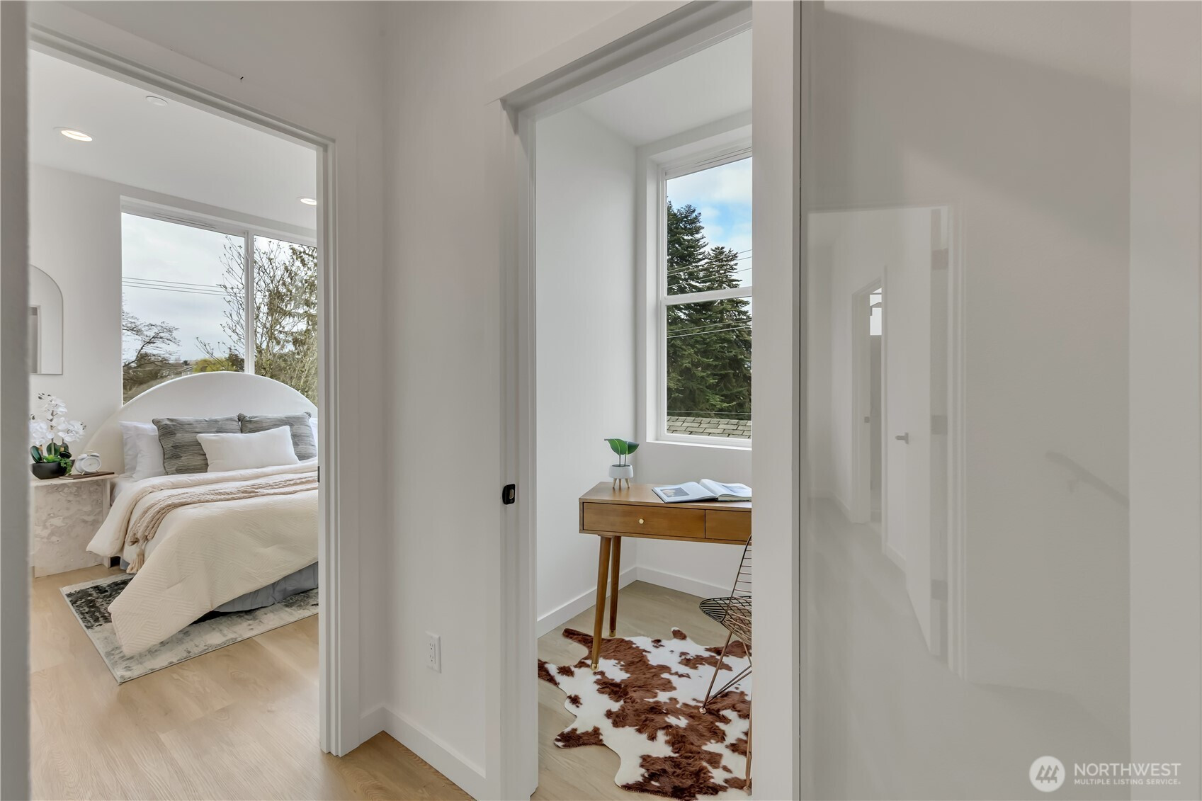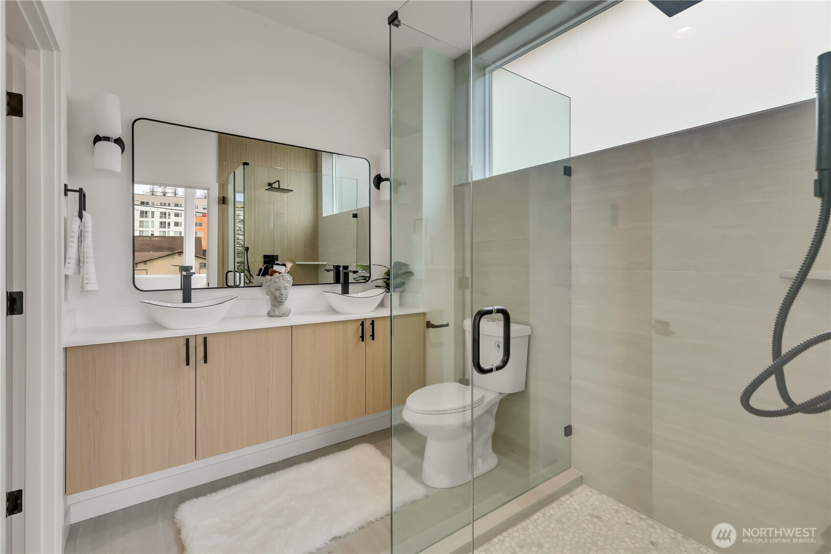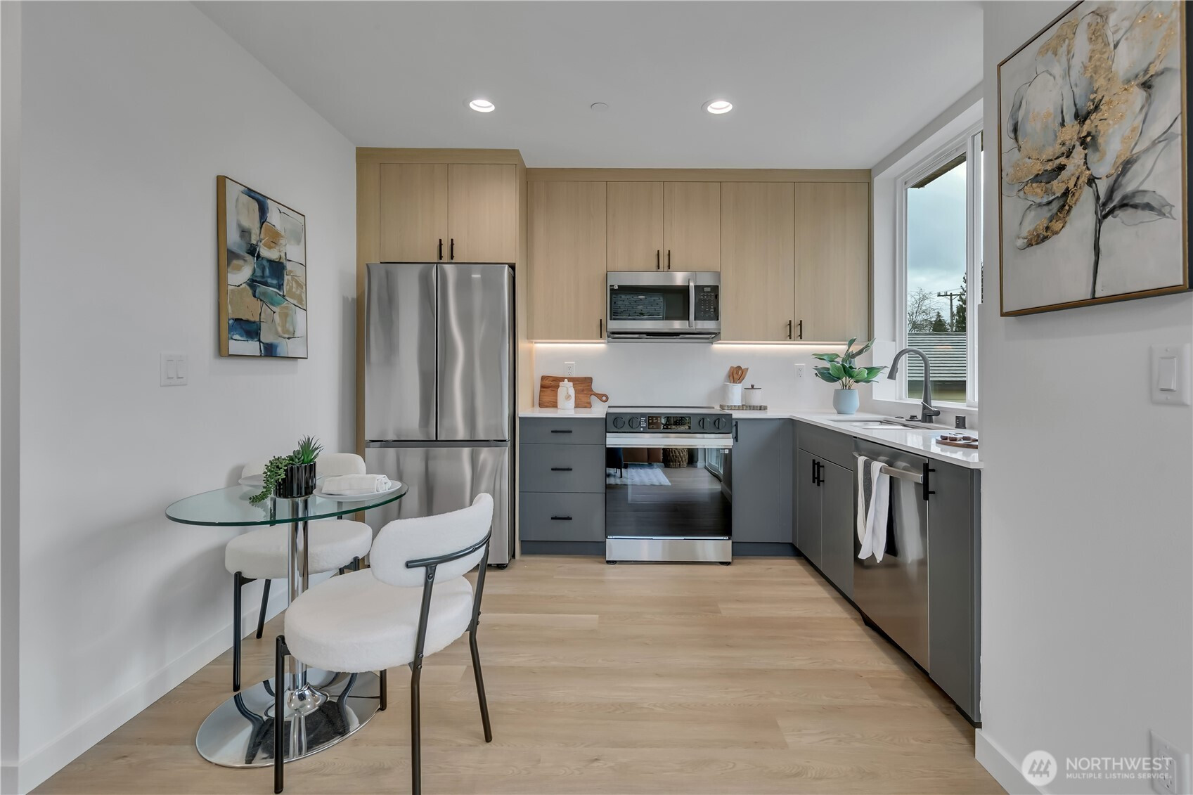 Welcome to this striking new-construction home where modern architecture meets urban convenience in vibrant Southeast Seattle. Designed with clean lines, open spaces, and contemporary style, this thoughtfully crafted residence blends form and function for today’s lifestyle. Inside, a stunning two-tone chef’s kitchen takes center stage, featuring sleek quartz countertops and backsplash for elegance and durability. The kitchen flows seamlessly into a bright, open living area anchored by a modern fireplace and extending to a private covered deck—perfect for relaxing or entertaining year-round. This smartly designed home offers 2 bedrooms, 2.5 baths, and a versatile flex room ideal for a den or home office. The top-floor primary suite is a private retreat, featuring a bathroom with heated floors, while the expansive rooftop deck captures peaceful park views for morning coffee or evening gatherings. Every home is built for comfort and efficiency with high-efficiency heating and air conditioning, modern finishes, and contemporary design throughout. Located just a short walk to Othello Light Rail, nearby shops, dining, and parks. Limited-time $10,000 buyer incentive and one-year builder warranty included! NO HOA