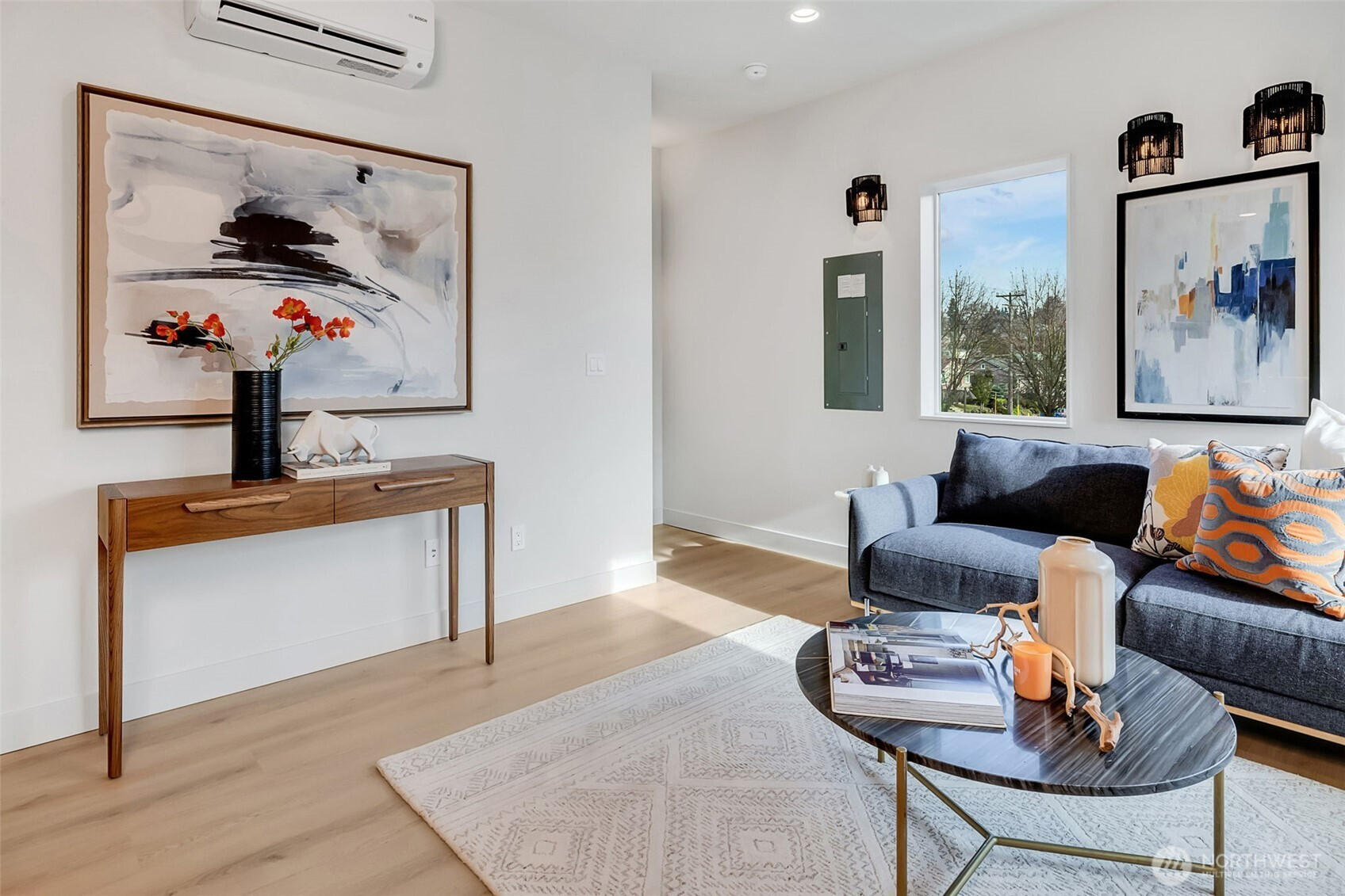 (503) 893-8874NEW PRICE! Cedar siding warms the exterior of this architecturally crafted attached ADU, designed for flexibility & modern ease. The main living level is filled with natural light. Open dining & living spaces, and a kitchen anchored by stainless appliances & refined finishes—perfect for everyday living or entertaining. The top floor is devoted to the primary suite, a calm retreat with a lux walk-in shower & integrated laundry space. The entry level hosts a private bedroom with slider access to the outdoors. The adjacent full bath with soaking tub creates an ideal guest suite or home office. Thoughtful details, A/C, dedicated parking, and nearby Light Rail enhance daily convenience. A polished urban dwelling where design, light & livability converge.