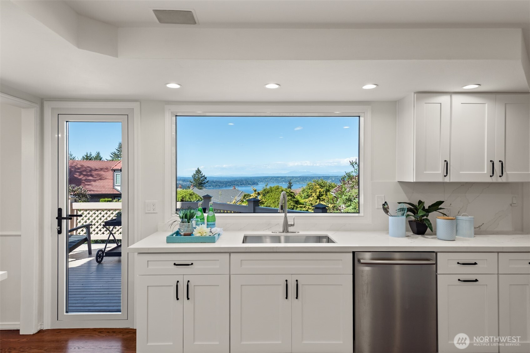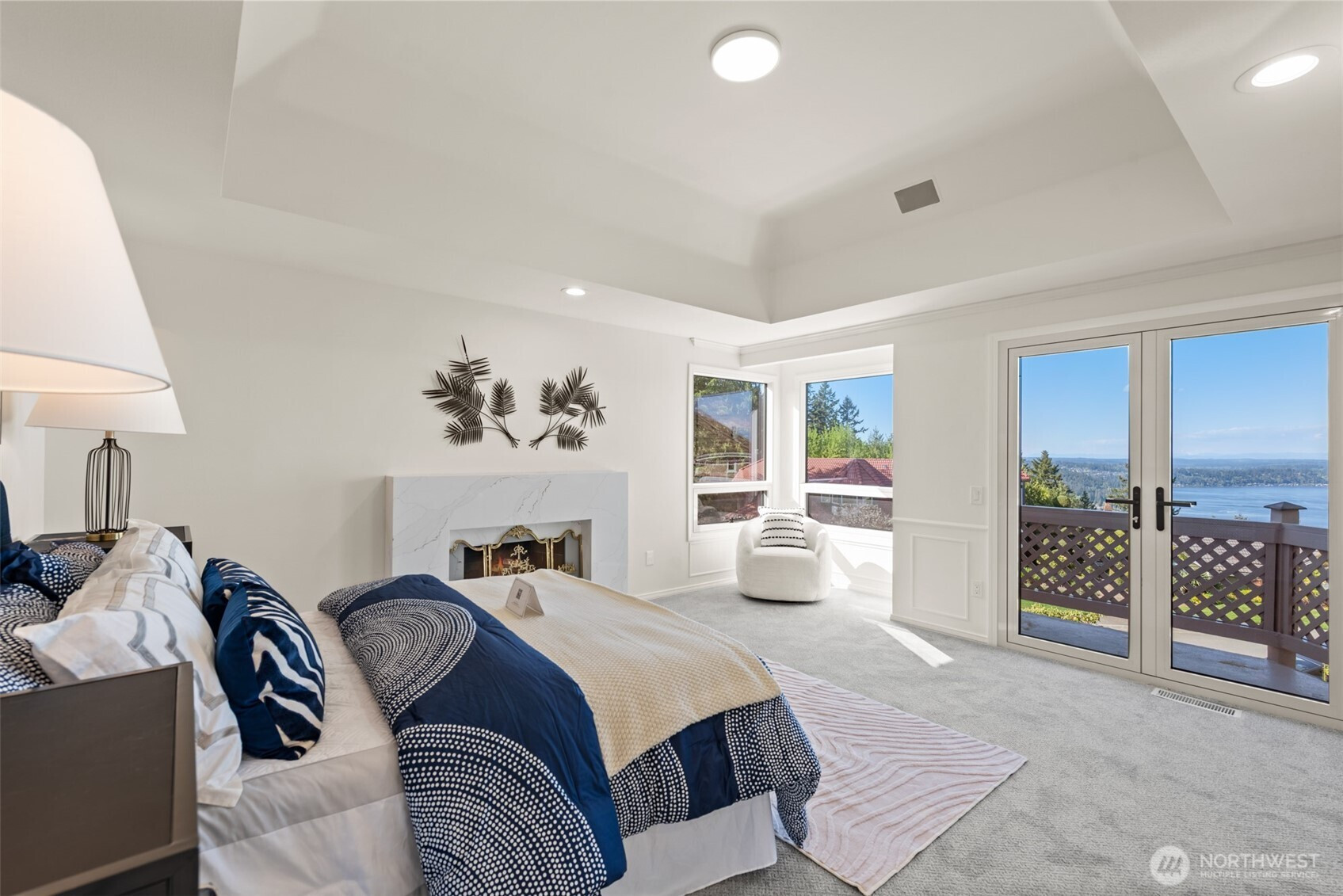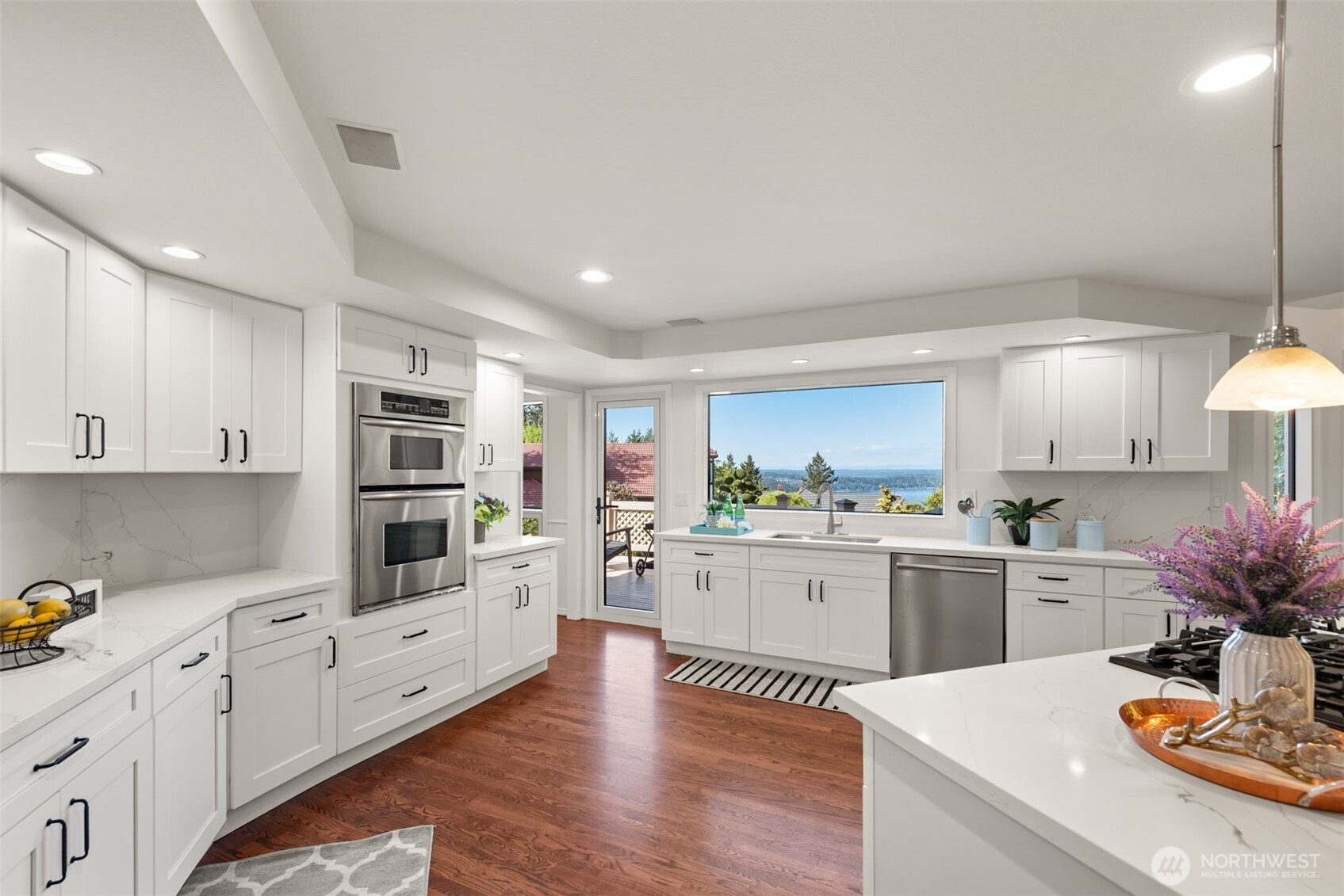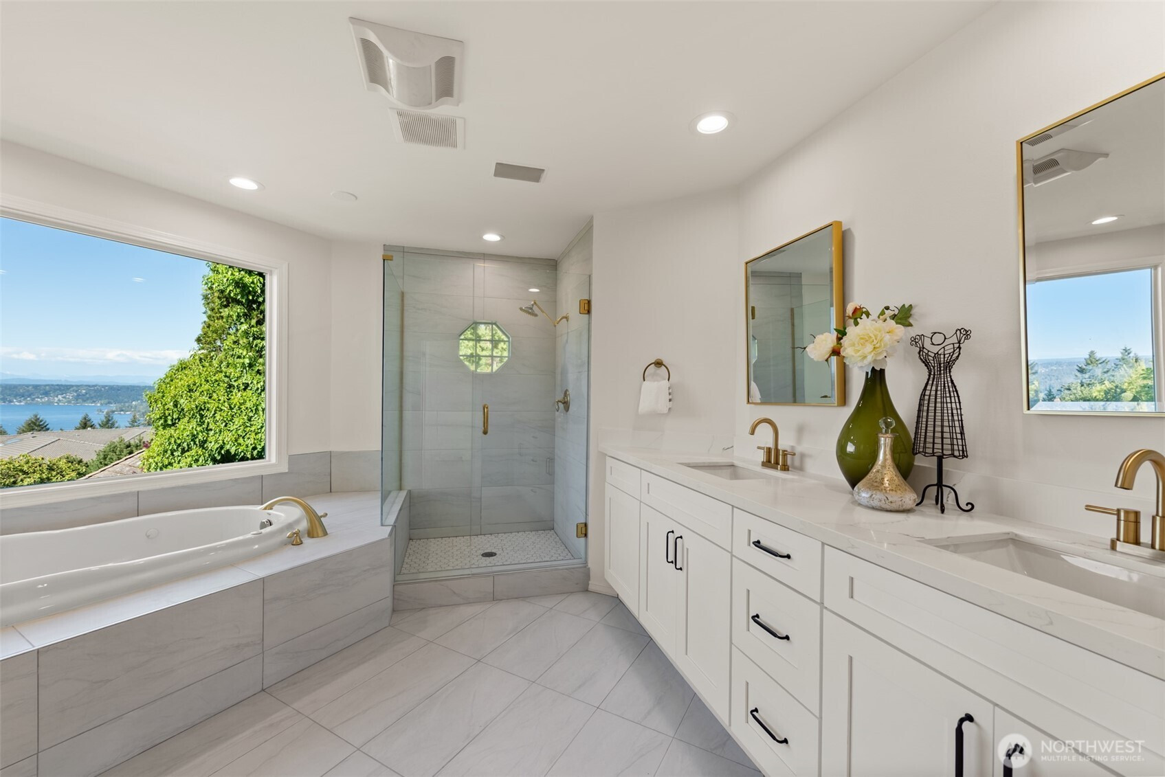 Spectacular 180-degree panoramic views of Lake Sammamish, Mt Baker and the Cascade Mountains from this lovely Vuemont home located in quiet cul-de-sac. Within walking distance to Lakemont shopping, parks, Starbucks and award winning Cougar Ridge Elementary. This home features a fully fenced private backyard, with patio, pond, Gazebo. You will enjoy the breathtaking views from the large deck and the multitude of rooms. Newly upgraded chef’s kitchen, bathrooms, fresh interior paint, stainless steel appliances, tile roof, A/C. New windows throughout. Upstairs features a spacious primary suite with walk-in closet and balcony for stunning lake and mountains view. Come to see, don't miss it.
