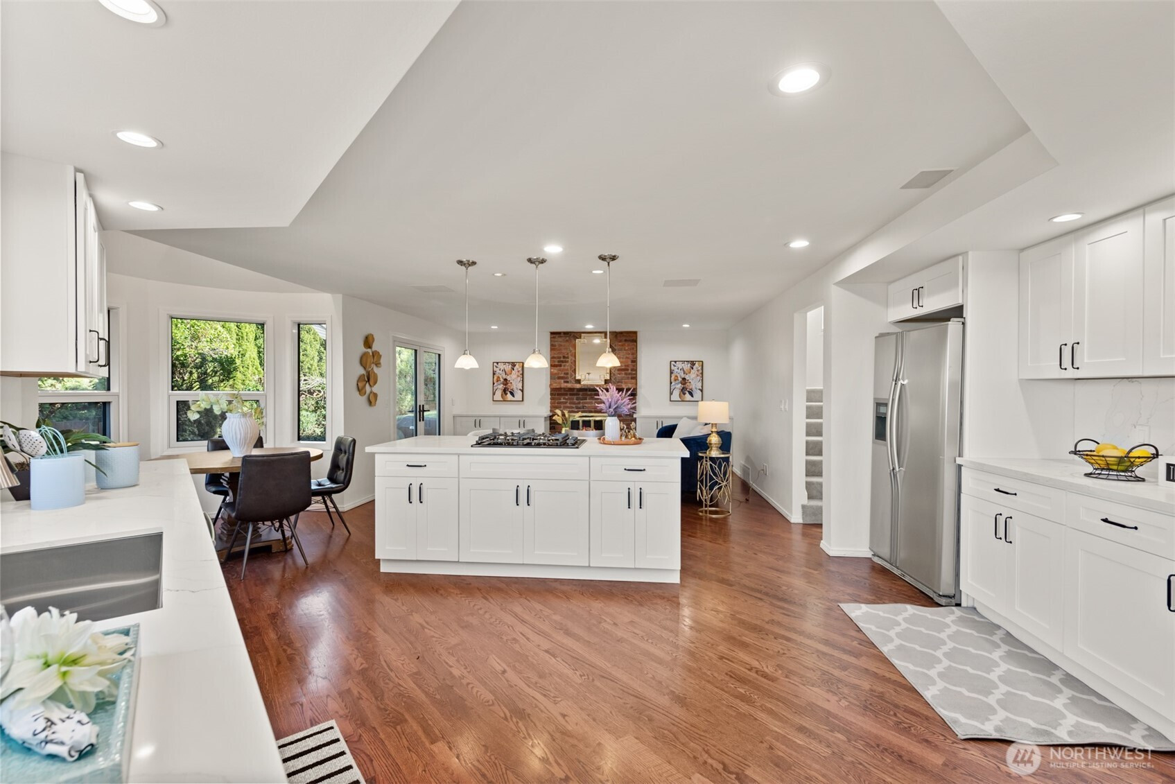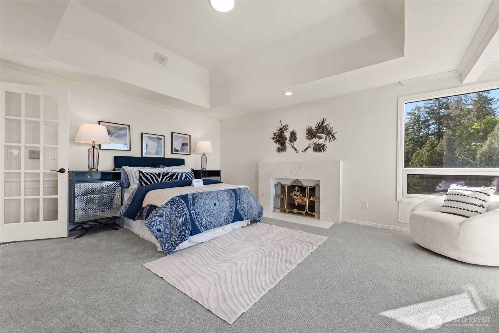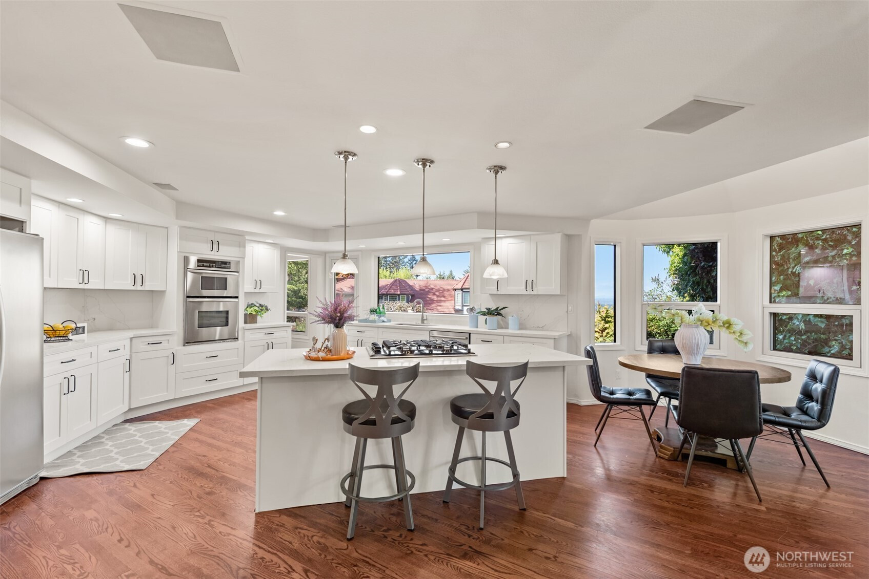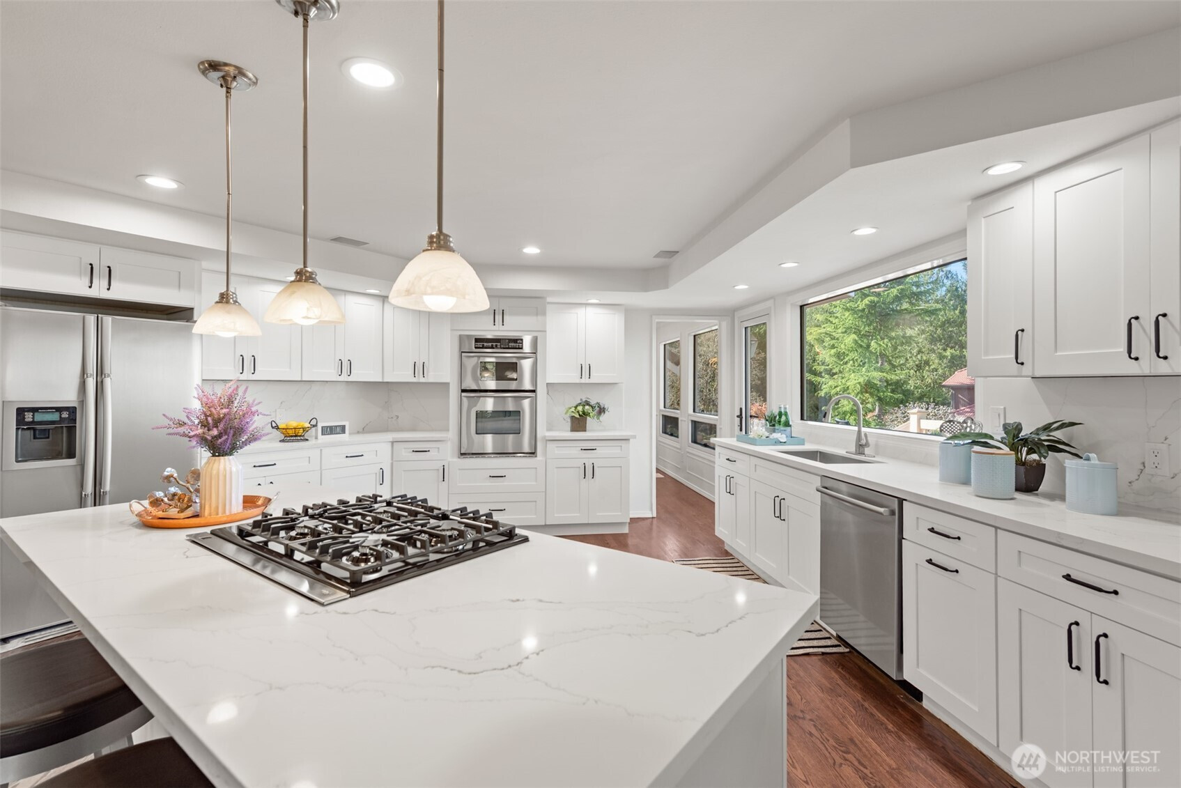 Spectacular 180-degree panoramic views of Lake Sammamish, Mt Baker and the Cascade Mountains from this lovely Vuemont home located in quiet cul-de-sac. Within walking distance to Lakemont shopping, parks, Starbucks and award winning Cougar Ridge Elementary. This home features a fully fenced private backyard, with patio, pond, Gazebo. You will enjoy the breathtaking views from the large deck and the multitude of rooms. Newly upgraded chef’s kitchen, bathrooms, fresh interior paint, stainless steel appliances, tile roof, A/C. New windows throughout. Upstairs features a spacious primary suite with walk-in closet and balcony for stunning lake and mountains view. Come to see, don't miss it.