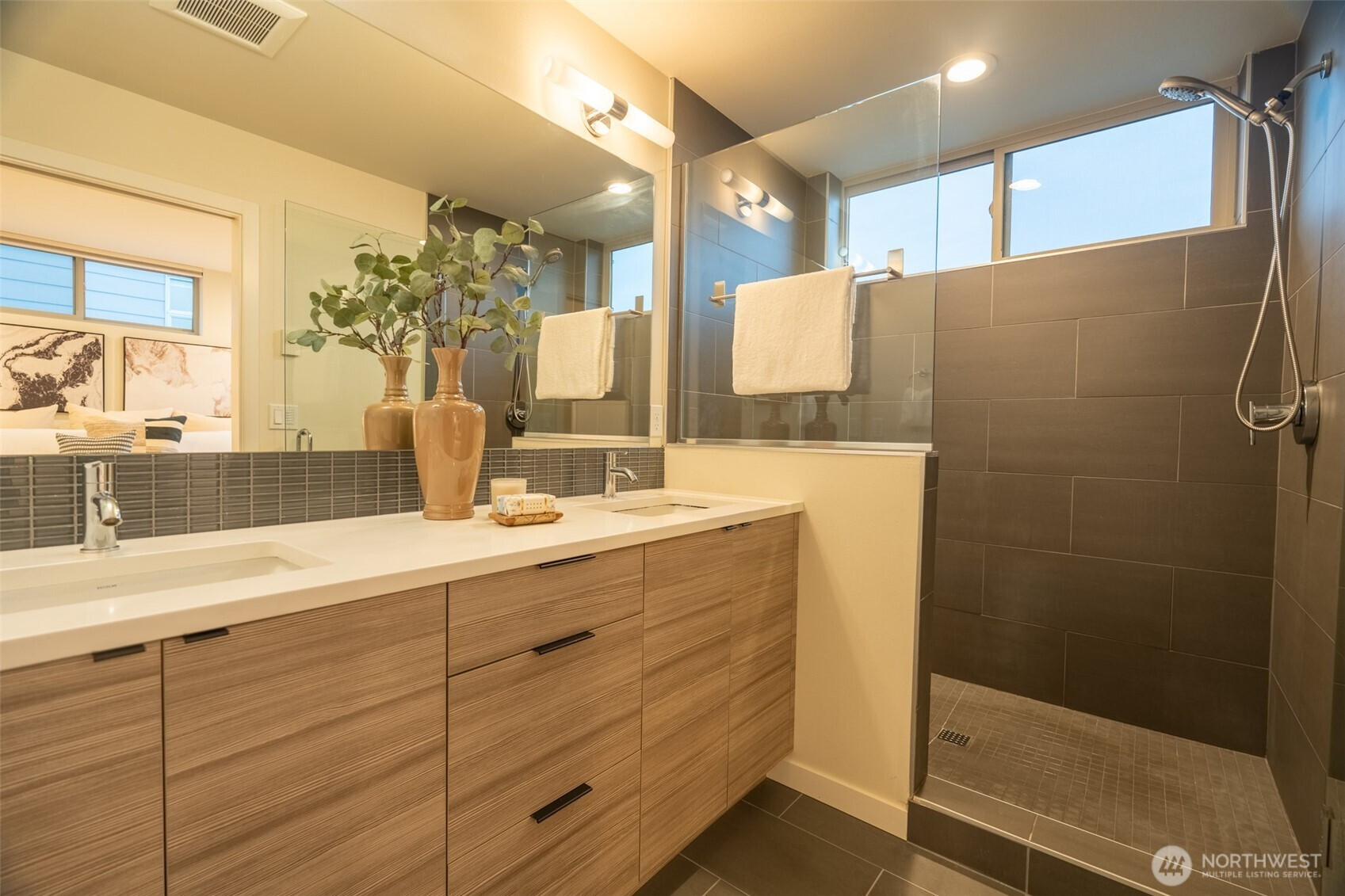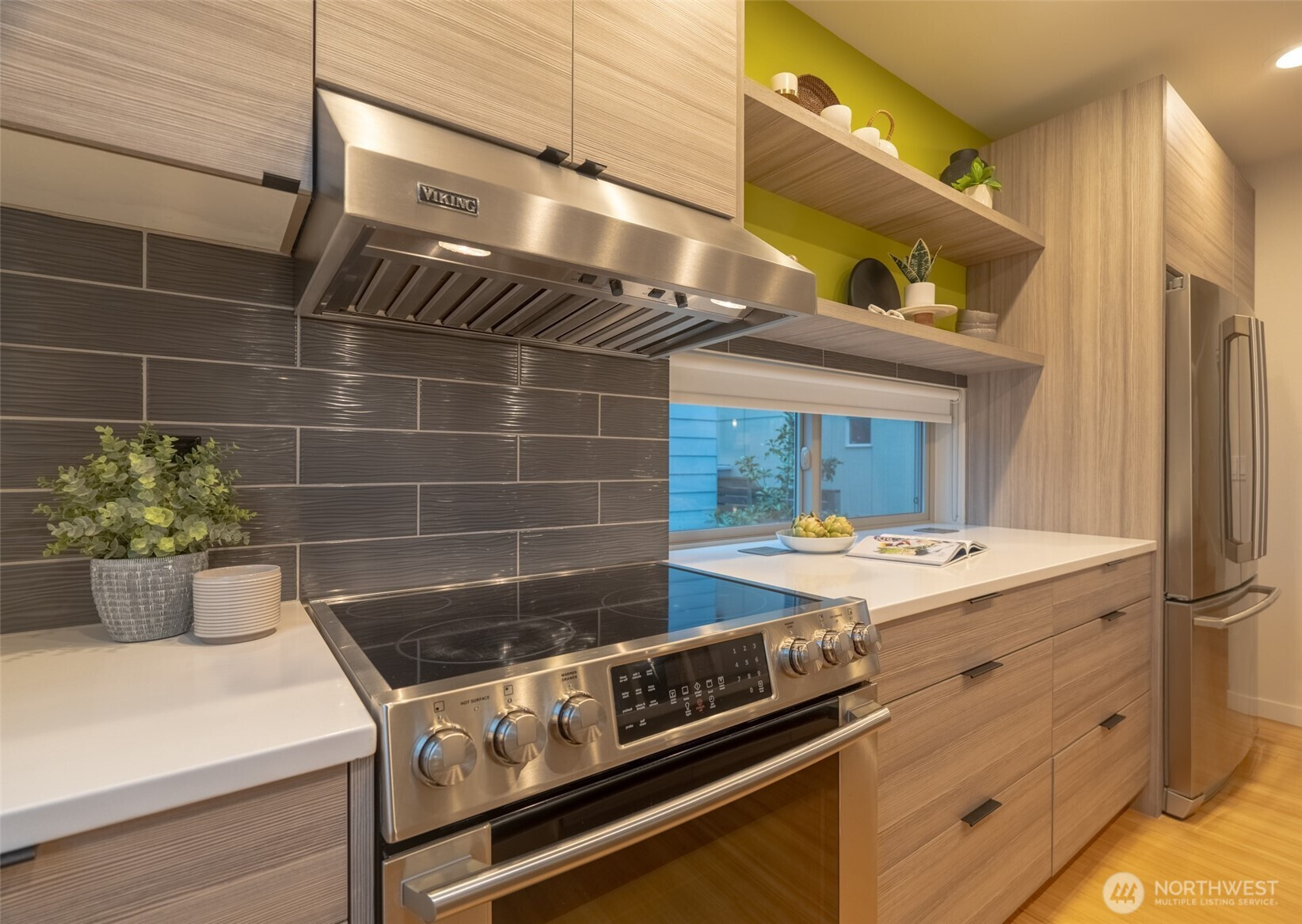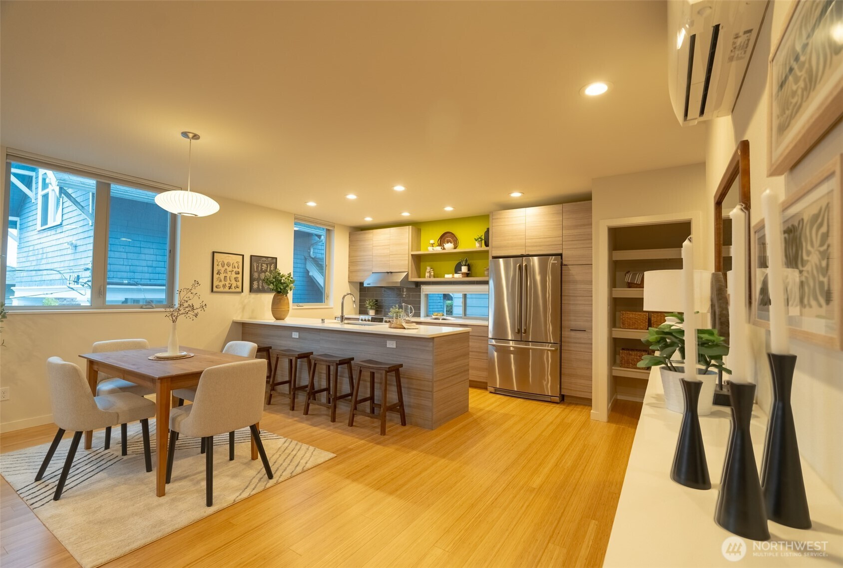 Stop the car, you're home! This sleek, built-green townhome in the heart of Wallingford, one of Seattle’s most accessible and vibrant neighborhoods, is ready for its next chapter. Bright south-facing windows, tall ceilings, hardwood floors, and an open main living area layout set the tone. The chef’s kitchen features quartz counters, premium appliances, and a walk-in pantry. Each bedroom has its own bath and don't forget about the the private rooftop deck, perfect for those stunning city and mountain views (hello, 4th of July!). Energy-efficient systems, steps to top restaurants, shops, parks, and transit make this urban living done right with a walk/bike score of 97 and 86, respectively! With private garage parking, there's no need to engage in street fights with your neighbors for coveted street parking. Add your own flavor to this vibrant neighborhood.