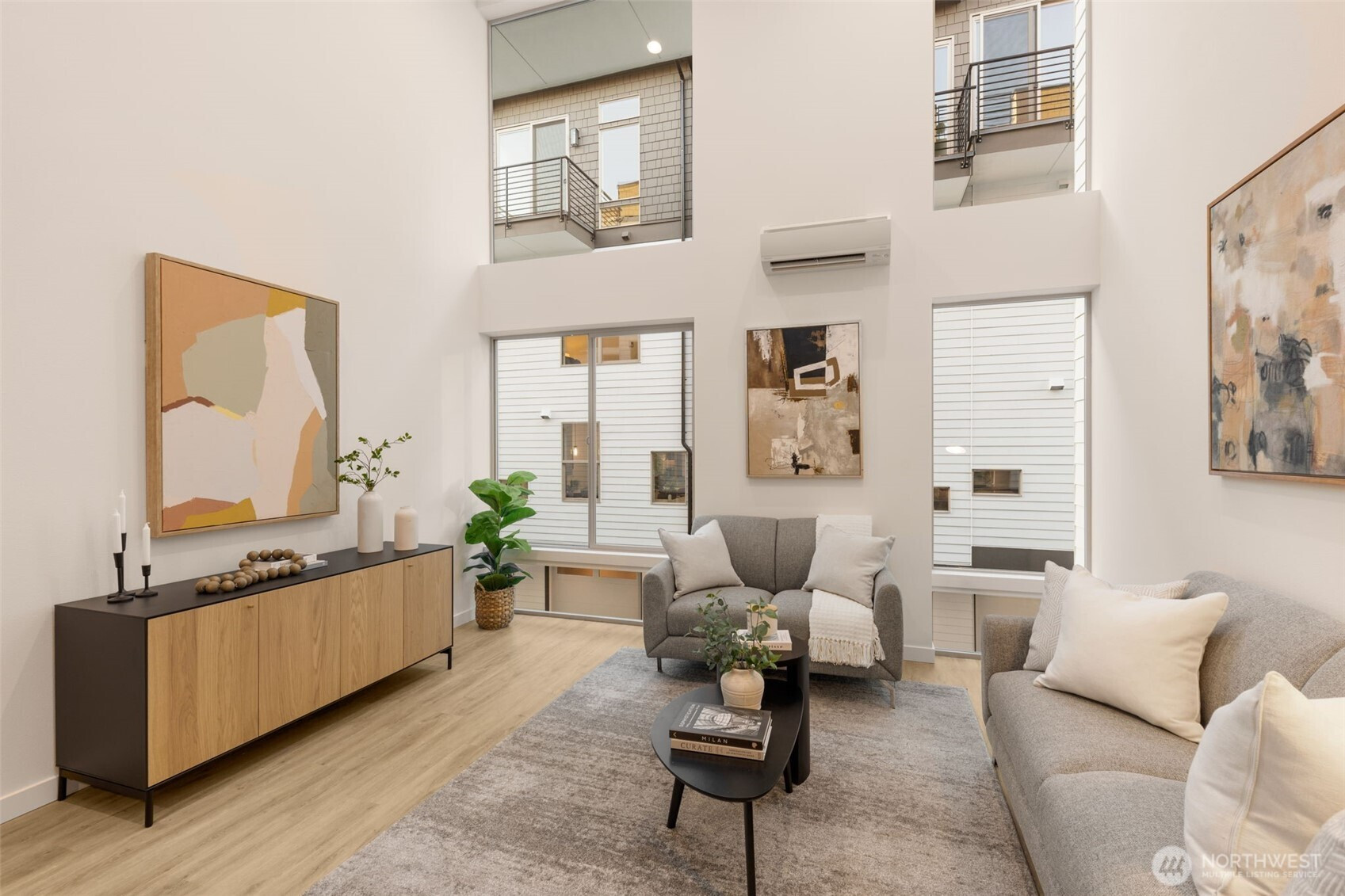Welcome to Arlo, the latest in Wallingford. Built by Greencity Homes, these residences offer unique floor plans tailored to fit a modern lifestyle. This home offers 2 bedrooms plus an additional flex space- perfect for an office for work from home. Flooded with natural light from the many massive floor-to-ceiling windows, including those on the double-height ceilings, you are able to enjoy the peaceful surroundings of Wallingford from inside your new home. In the kitchen, a luxury gas stove, a rare find in new construction, a powder bath for guests, durable hard floors throughout, and it’s all finished with a sunny & unique roof deck showcasing city, lake & big Mt. Rainier views. Your primary suite features more floor-to-ceiling windows, built-in shelving in a large walk-in closet, and best of all, an oversized twin-head rainfall shower for a true spa experience every day. Arlo has a sought-after 94 Walk Score that puts an assortment of inviting eateries, activities & transportation just seconds away, with easy access to the U District, Fremont, Green Lake, Woodland Park, I-5, and the rest of the city. Photos are of a similar but smaller floor plan. It’s a must-see, must-experience in person!