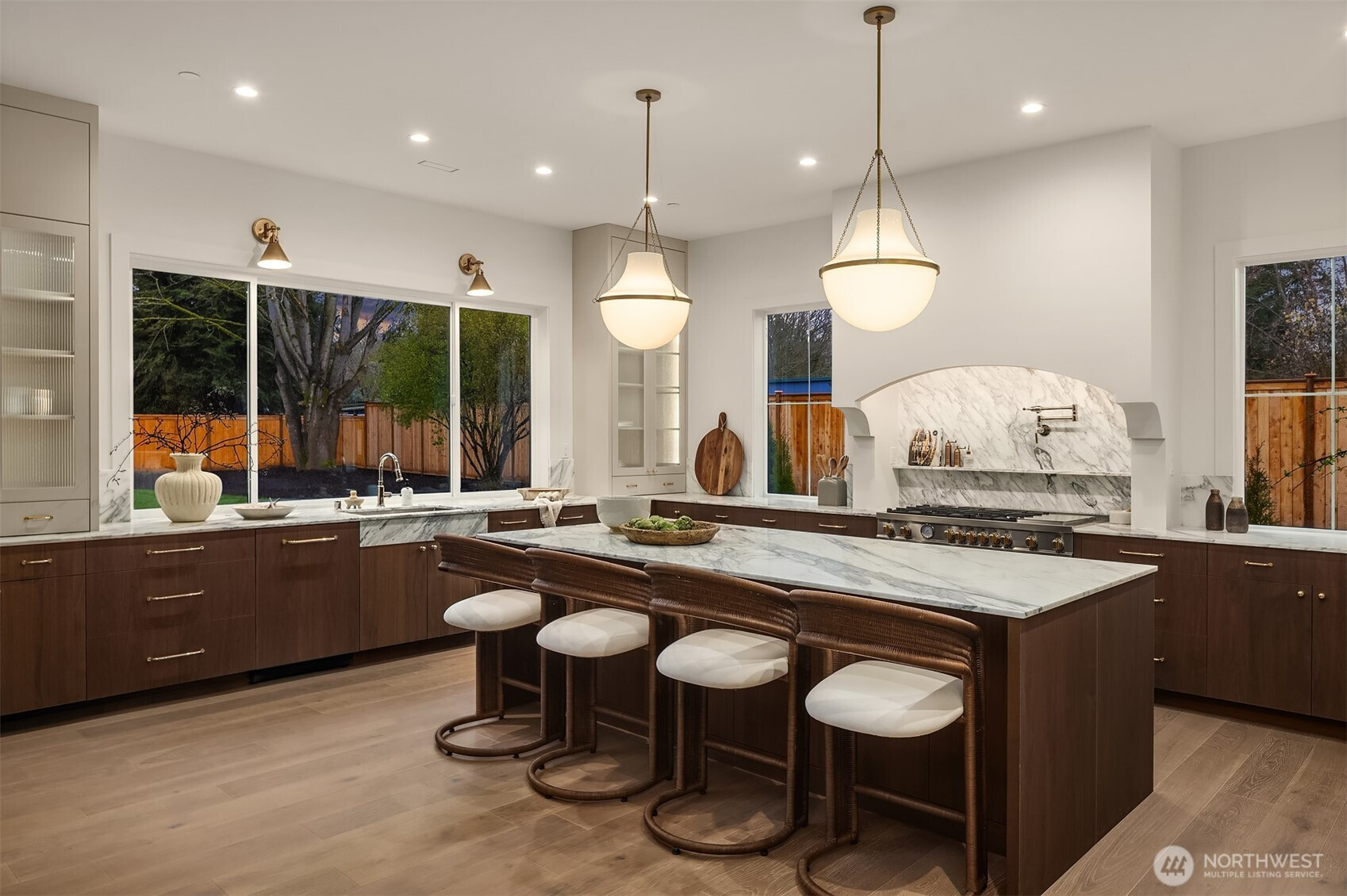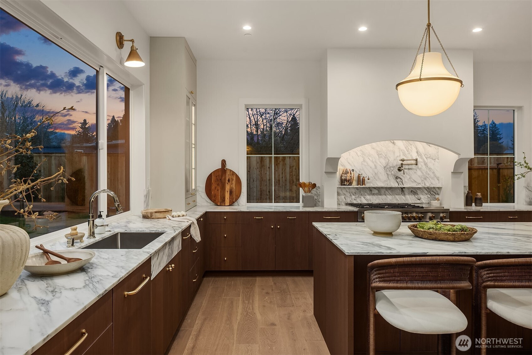Introducing an exceptional newly constructed residence by renowned builder Baluco Homes, thoughtfully designed to blend refined craftsmanship with the relaxed charm of Fall City living. Ideally located just moments from the heart of downtown Fall City, this stunning home offers walkable access to beloved local amenities including coffee shops, restaurants and the Snoqualmie River. Striking architecture is highlighted by elegant stone and brick exterior, creating timeless curb appeal. Inside, soaring ceilings, expansive windows, and a custom-designed staircase set the tone for a light-filled interior that feels both grand and welcoming. The great room flows seamlessly into a chef’s kitchen featuring custom cabinetry, marble countertops, premium appliances, and oversized island. Warm wood tones, curated lighting, and refined architectural details elevate the home’s sophisticated yet comfortable aesthetic. Sliding doors open to a covered outdoor living area with fireplace, creating a seamless indoor-outdoor experience overlooking the expansive, beautifully landscaped backyard. Spacious bedrooms and spa-inspired bathrooms finished with marble and natural stone offer a private retreat, including a luxurious primary suite. Offering a rare combination of small-town charm, natural beauty, and everyday convenience, while remaining just a short drive to Downtown Bellevue, major employers, and the Eastside. Timeless NW living where craftsmanship, design, and lifestyle come together.