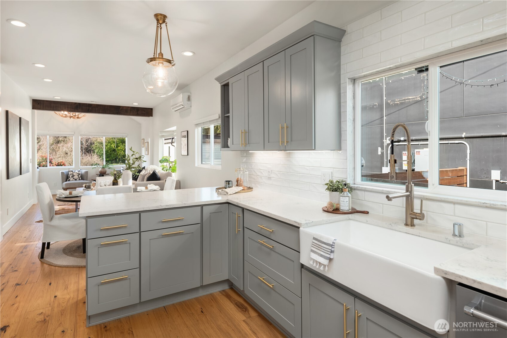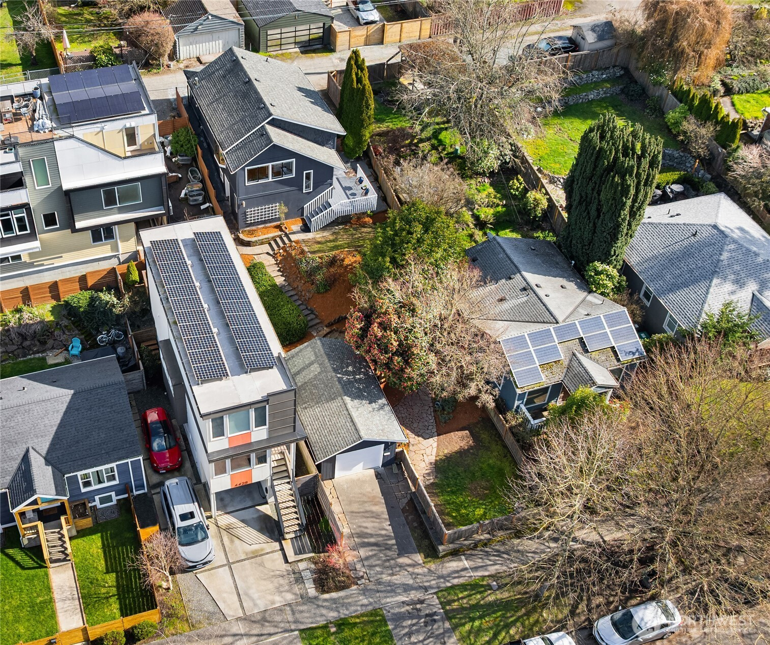 Embrace the sweet life from this beautifully renovated Alaska Junction home sited on an enviable street-to-alley lot with great DADU potential! This thoughtfully updated home lives large, blending charm with modern amenities. Vaulted ceilings, skylights and exceptional natural light enhance the open-concept layout, while hardwood floors, fresh paint, a chef’s kitchen with slab quartz counters, full tiled bath with radiant heated floors, & mini-split heating/cooling elevate everyday living. The flexible lower level with walk-out access features a big rec room, office nook & utility room with storage space. The terraced lot offers a host of possibilities. Enjoy the elevated deck and meandering flagstone path that leads to the lovely garden area. Or explore your options for building a DADU or 2nd home on this level front yard. Oversized single-car garage with driveway + bonus parking space off the alley. Live just moments from the heart of West Seattle with a 91 Walk Score and outstanding access to neighborhood restaurants, retailers, Trader Joes & Whole Foods, transit, parks & more!