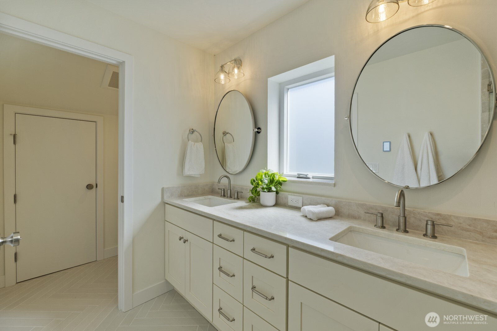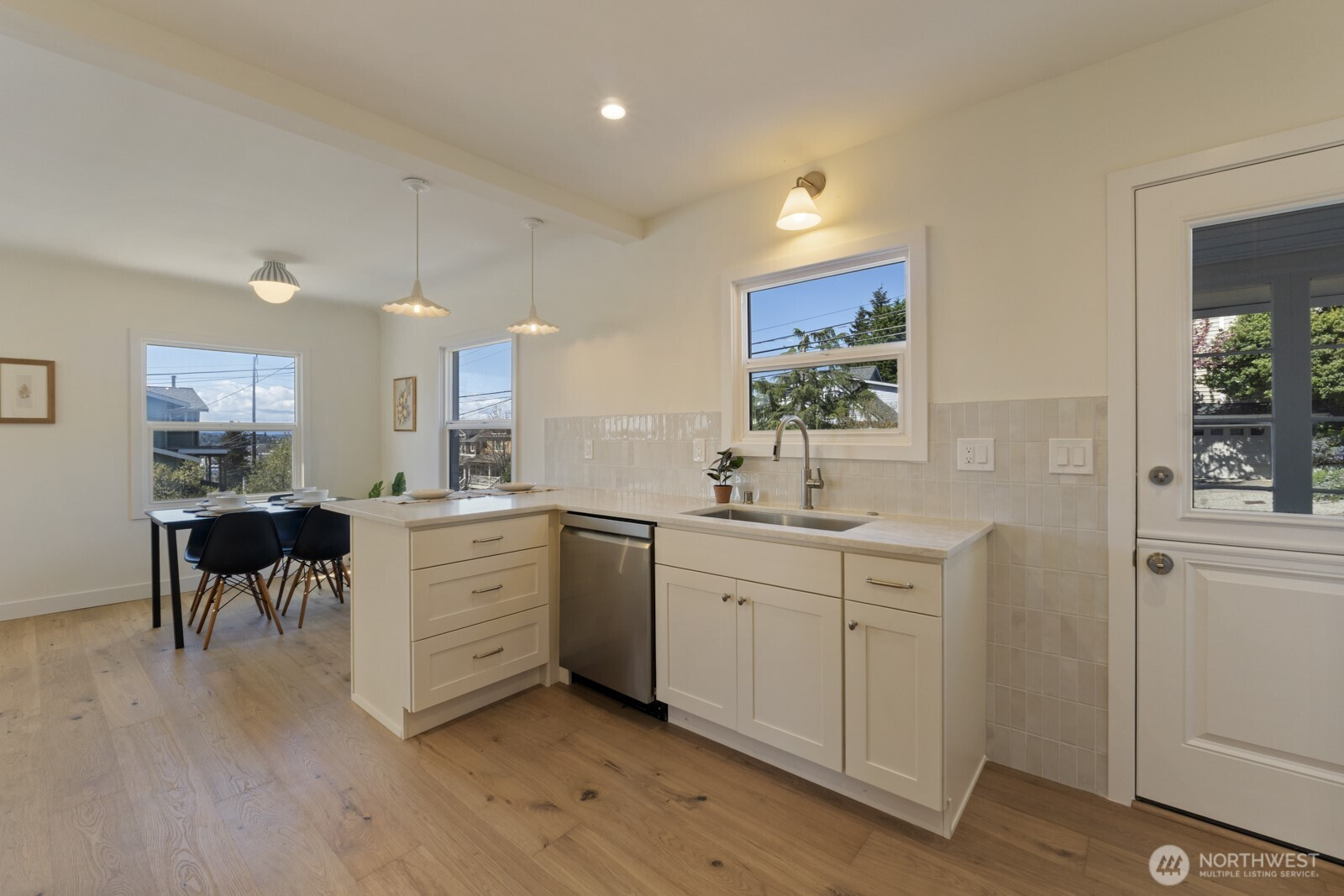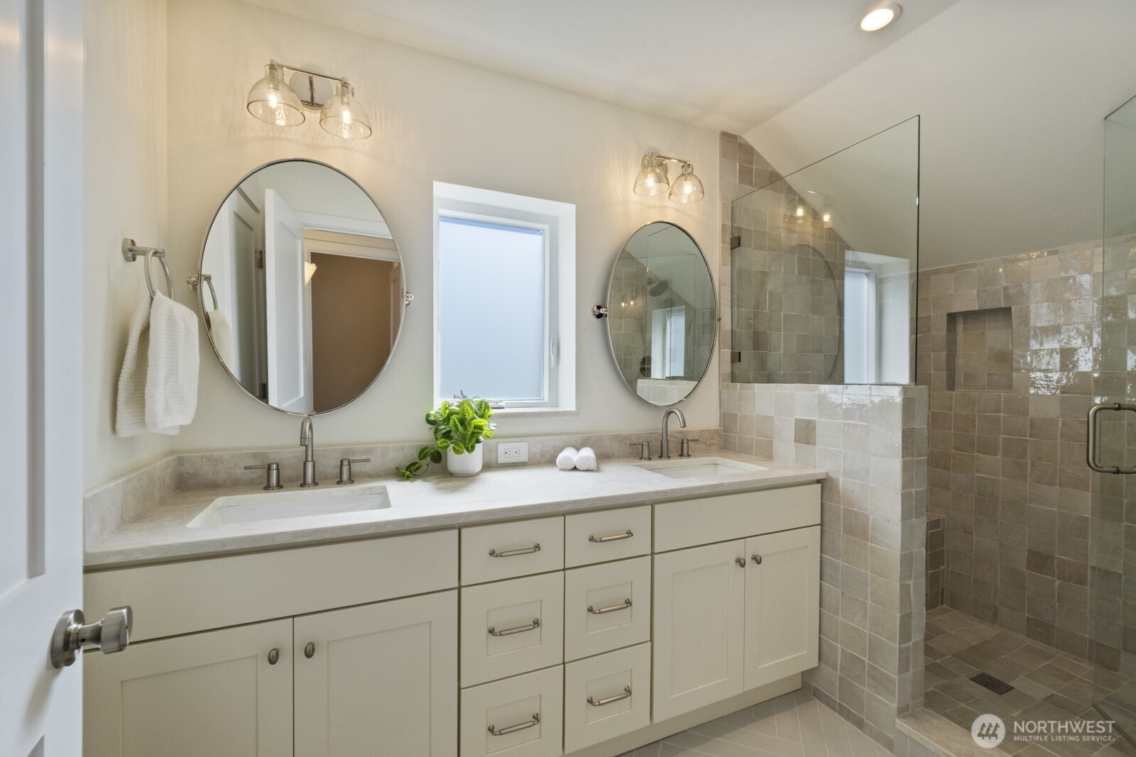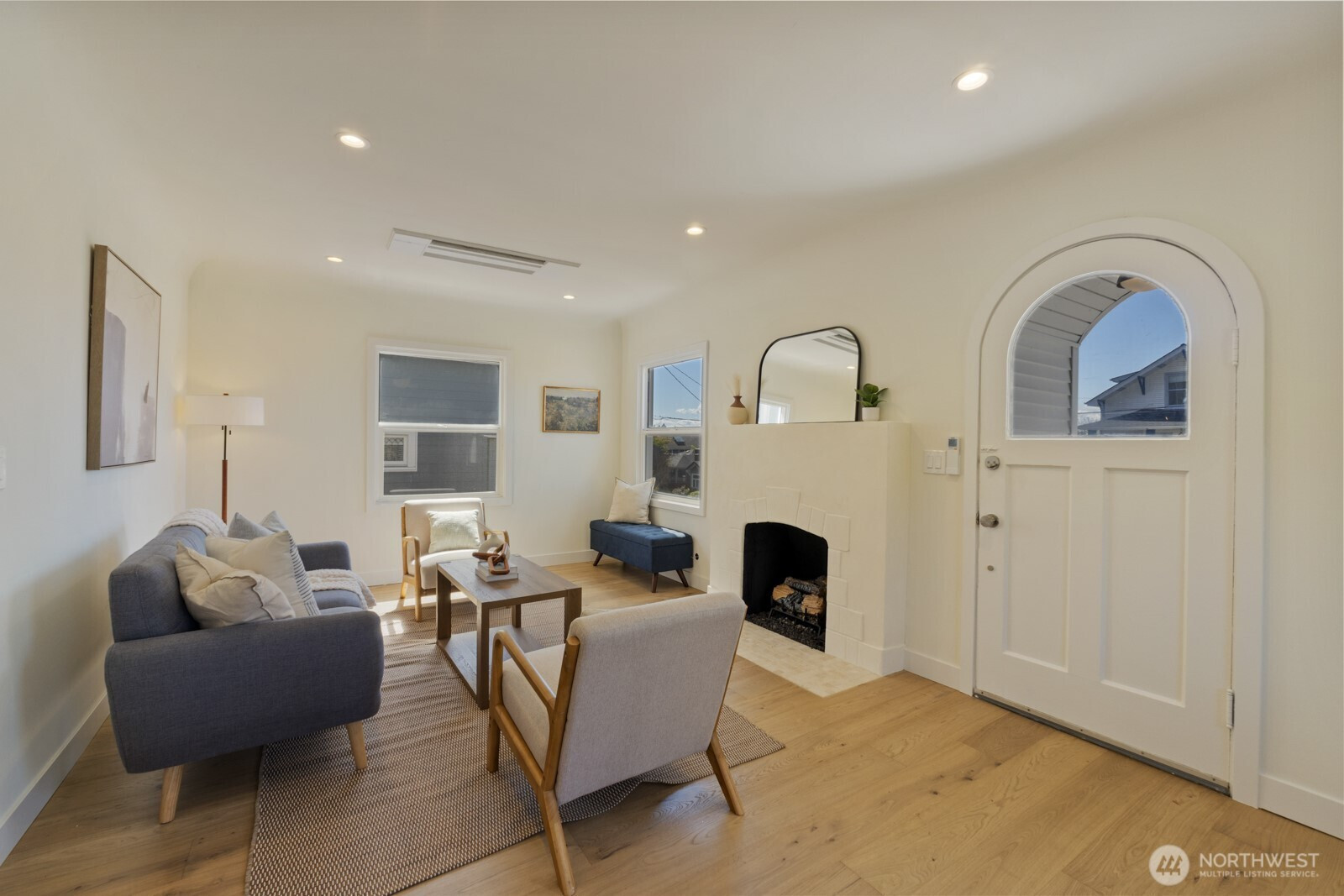 Discover the charm of this stunning 1927 Tudor, beautifully remodeled with modern amenities while preserving its historic character. This spacious home features 4 bedrooms plus a versatile bonus room, and 2.5 baths. Enjoy the newly added primary bedroom dormer, complete with Olympic Mtn Range views, a walk-in closet, an en-suite bath w/ heated flooring & a double-sink vanity. The basement offers potential for an MIL setup, complete with a private bath and separate entrance. Recent updates include a new roof, a chimney with a gas fireplace insert, and upgraded electrical systems with an EV charger in the garage. The brand-new kitchen showcases stylish cabinets and counters, complemented by all new appliances and luxurious bathrooms with elegant tile work. Gas range, gas tankless hot water heater. Heat/AC throughout. Step outside to your fully fenced yard with fresh landscaping, perfect for outdoor gatherings! Studs-out, permitted remodel. Seller Provided 2-10 Warranty for peace of mind!