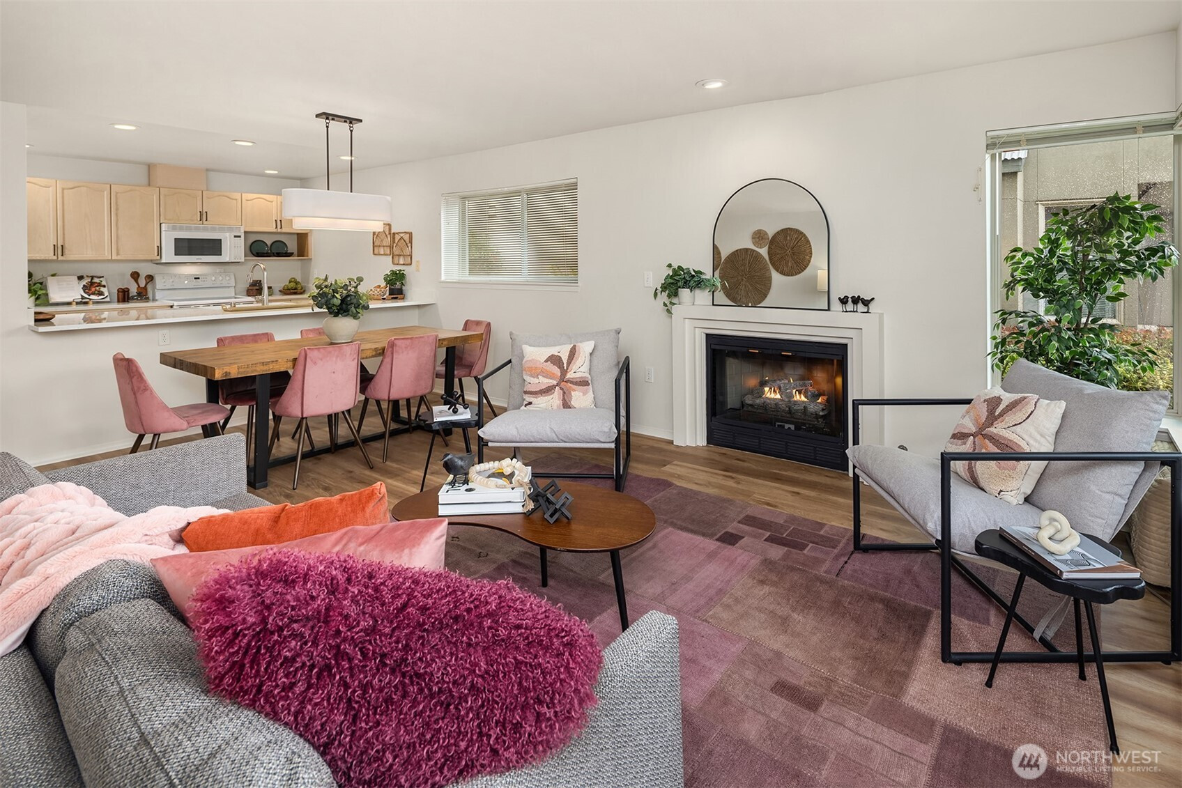 Thoughtfully updated west-facing unit just steps from the heart of West Seattle’s Alaska Junction, where neighborhood favorites, local cafés, shops, restaurants, and everyday conveniences are easily woven into everyday life. All while living in a building designed by Roger H. Newell— an award winning Seattle-based architect known for unique, highly crafted design. The refresh includes new flooring, quartz countertops, new paint throughout and updated lighting/hardware, giving a polished finish. Make the most of your generous west-facing deck with additional storage—perfect for sunsets and evening unwinds—plus an in unit laundry with full-size washer and dryer, and a natural gas fireplace. Secure garage parking includes two spaces plus TWO storage units for all of your sporty gear. Elevator access, a welcoming lobby and friendly neighbors complete the building. HOA dues include water, sewer, gas and, garbage. You just pay for scrolling and streaming! With easy access to transit, beaches, and downtown Seattle, this is classic Alaska Junction living: walkable, connected, and effortlessly cool.