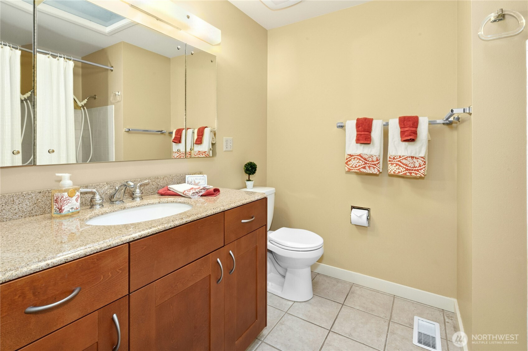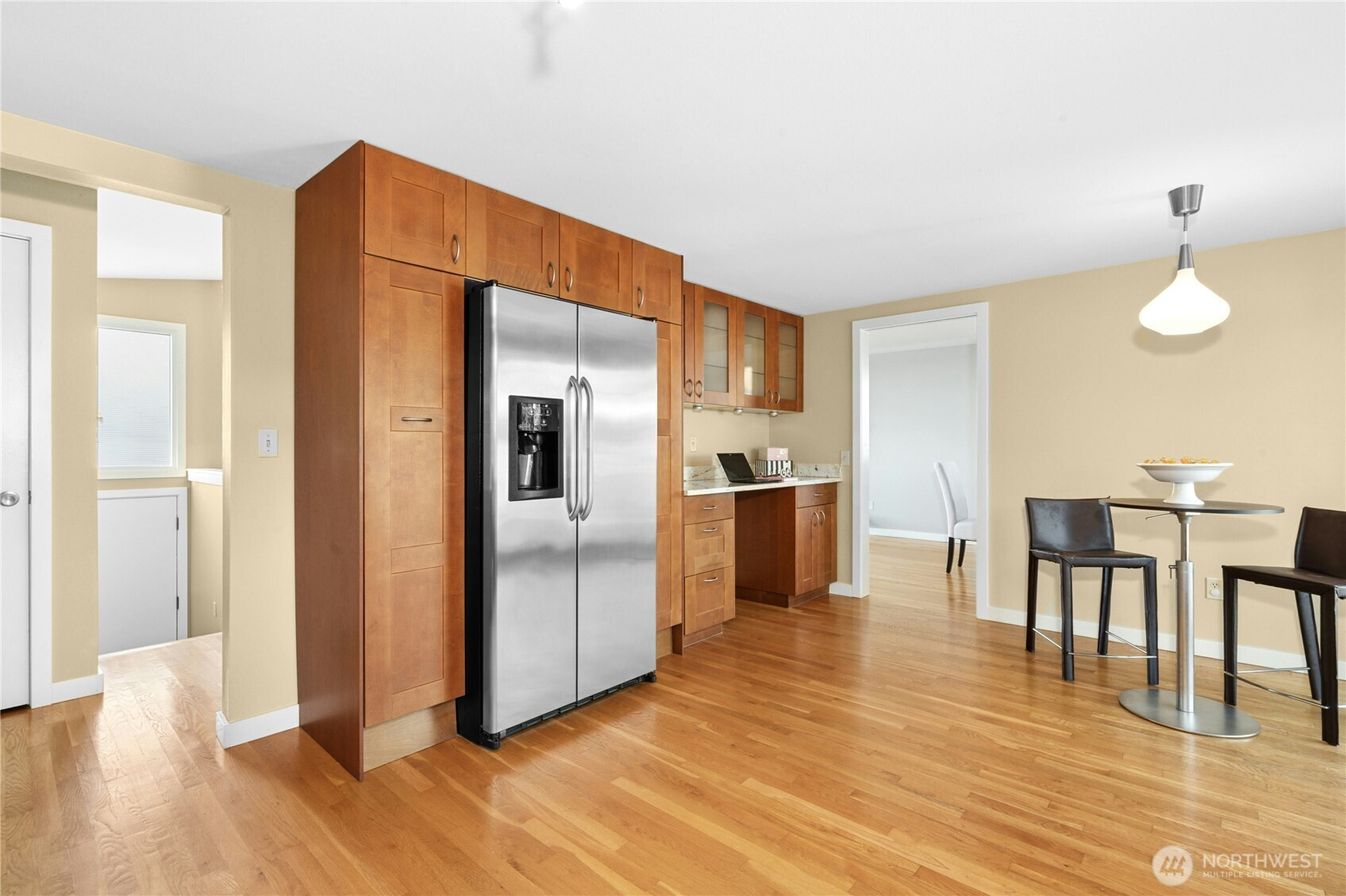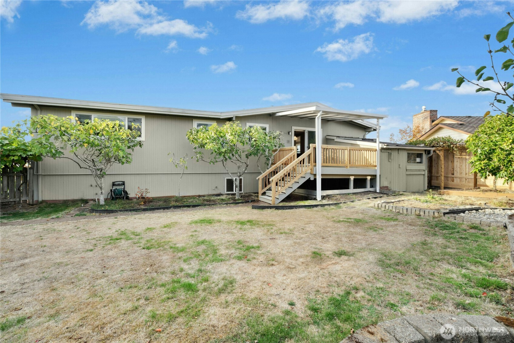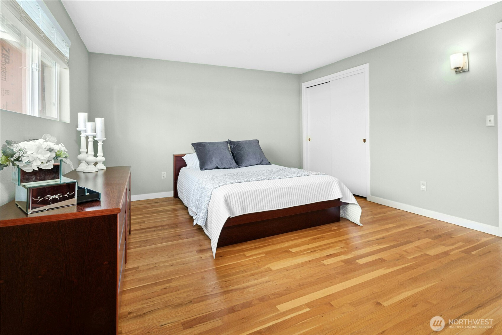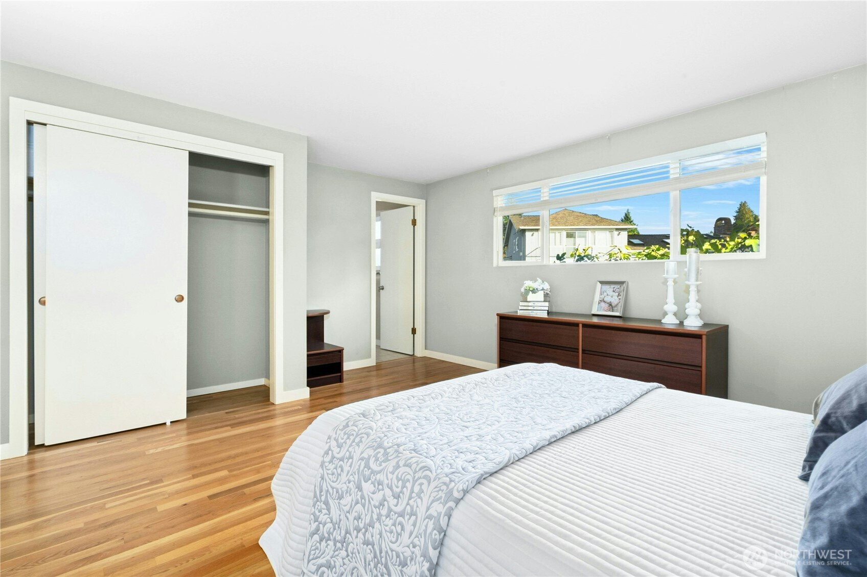 Welcome home to this meticulously cared for Somerset home, perfectly perched above the street with partial views of Lake WA, Seattle, Bellevue & the Olympics. Main living room features vaulted ceilings, a wall of windows & access to the front deck with new composite decking & railing. Large remodeled spacious kitchen with eat-in nook features SS appliances, granite counters, built-in desk & plenty of cabinets and storage. Oak hardwood floors on the upper floor with 3 bedrooms upstairs. Downstairs features a large family room, large utility room, bedroom and 3/4 bathroom. Fully fenced backyard features a covered back deck, mature landscaping with garden space, and fruit trees. Award winning BSD schools: Somerset, Tyee, & Newport HS.