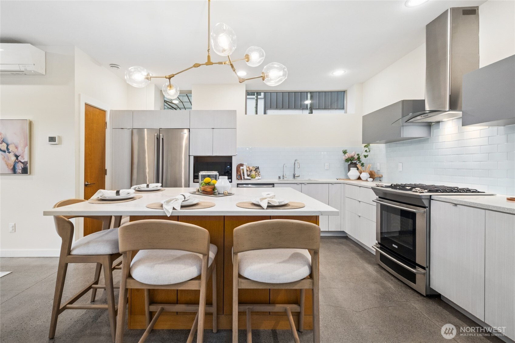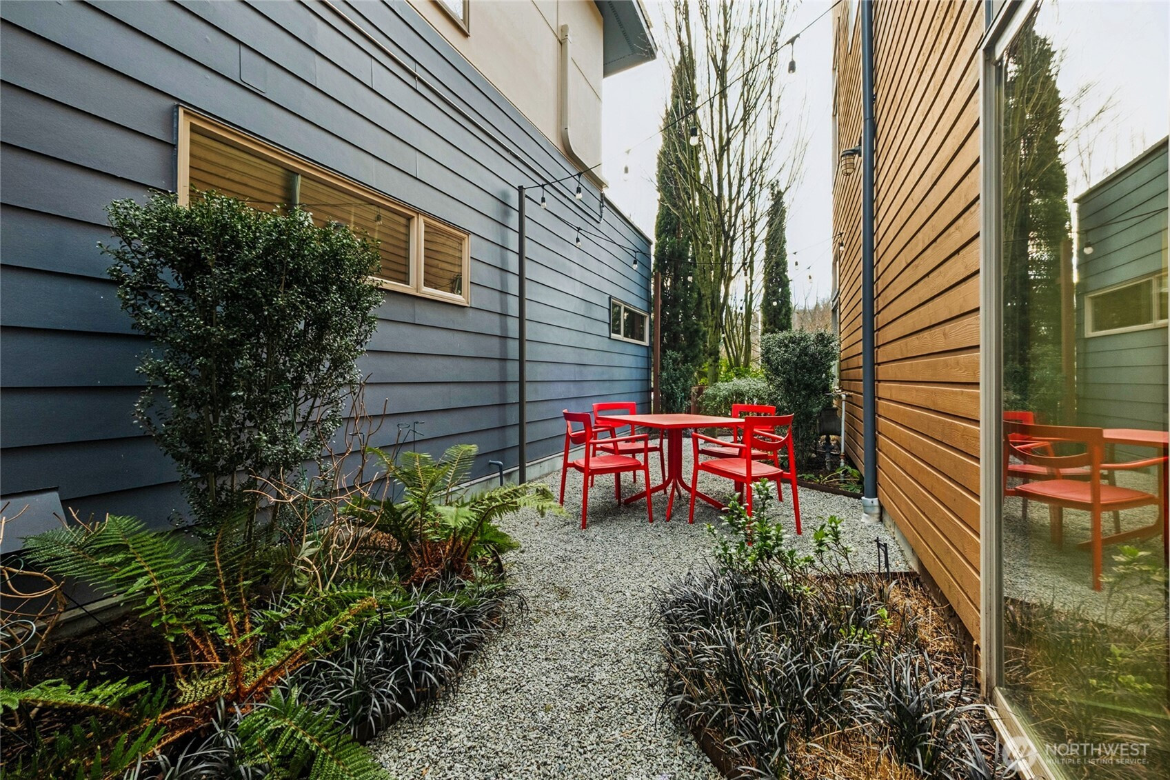 Freestanding and 5-Star Built Green by revered sustainability innovator Dwell Development, this Rainier Vista gem offers true independence. No shared walls, dedicated parking, and a usable yard set it apart. Just steps from Columbia City light rail, parks, restaurants, cafes, shopping, breweries, and Farmer's Market, the location delivers genuine urban convenience. The thoughtful three level layout provides flexibility for real life: main level living anchored by concrete floors with radiant heat, an updated kitchen with oversized island and direct patio access, two mid level bedrooms joined by a Jack-and-Jill bath, and a spacious top-floor primary retreat with walk-in closet, balcony, and updated bath featuring dual shower heads. A rooftop deck expands entertaining space, while the architect-designed garden oasis with irrigation creates a private outdoor setting that will shine in the months ahead. Access from the quieter rear side with dedicated parking just steps from the door. The fenced yard offers space for gardening, pets, or outdoor dining—breathing room in such a connected setting. Tankless hot water, triple pane windows, and whole-house A/C complete this sustainable, practical home designed to grow with you. Vibrant neighborhood filled with life, connection, and neighborly gatherings; amenities include community garden P-patch, parks, and more.