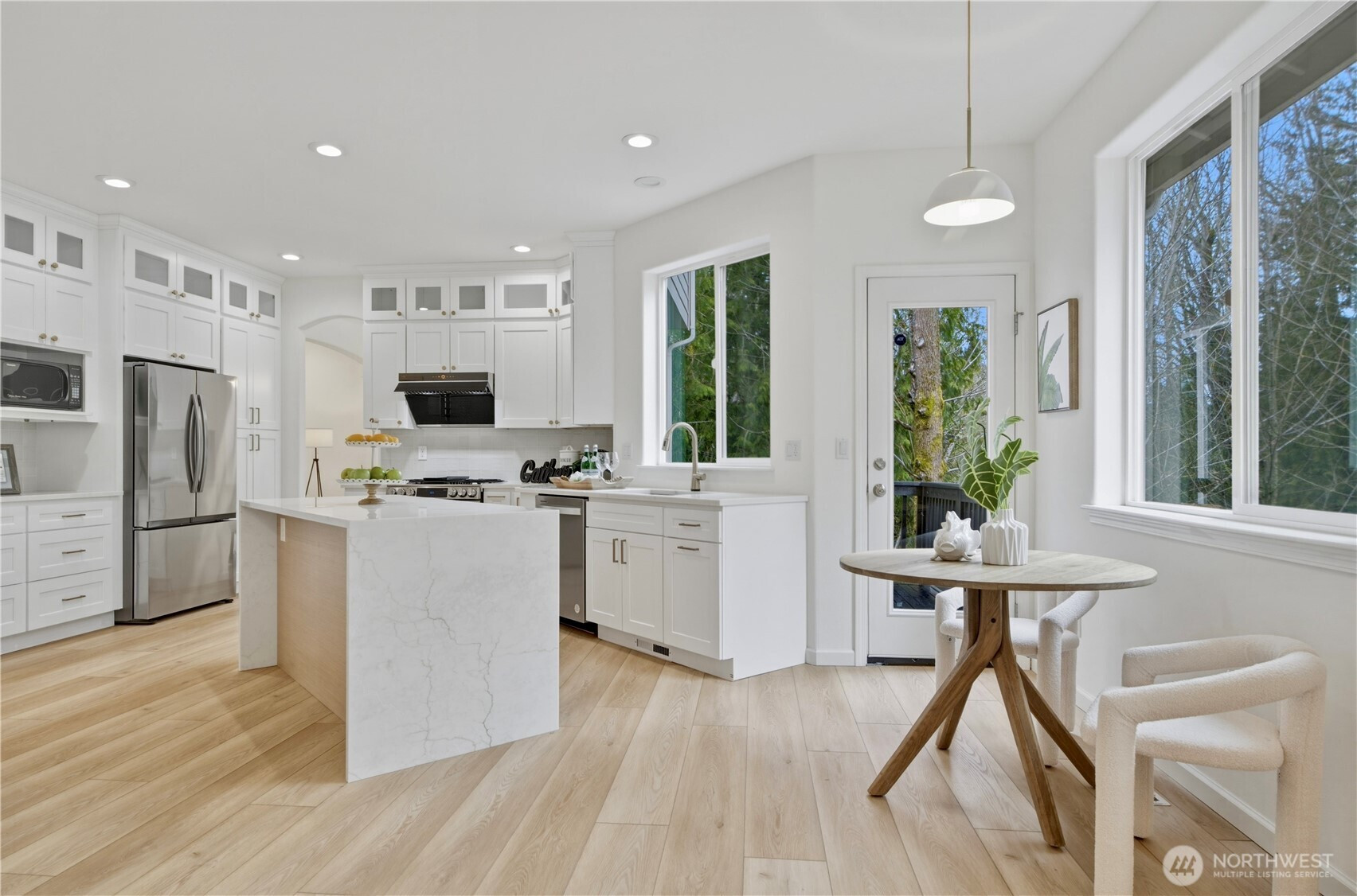 Northwest contemporary architecture paired with a high-end designer remodel defines this unforgettable Lakemont home. Meticulous attention to detail creates a refined atmosphere inviting you into the formal living and dining room, seamlessly connected to a stunning gourmet kitchen. The waterfall island, designer tile backsplash, gas cooktop, newer appliances, and abundant custom cabinetry provide both beauty and functionality. Retreat to the luxurious primary suite, thoughtfully designed to offer comfort and indulgence. Upstairs features three additional bedrooms and a full bath. A spacious bonus room showcases nature views and abundant natural light. The lower level is perfect for entertaining, complete with a gas fireplace and wet bar. An additional bedroom with a shower suffices multi-generational living or guests needs. Assigned office on main. Enjoy the dedicated deck and fully fenced, multifunctional outdoor space that provides serenity and privacy. New roof, new water heater, furnace and A/C 2023. No carpet. Rare opportunity to own a newer, luxury, turnkey home designed for comfort and functionality in one of the area’s most sought-after neighborhoods.