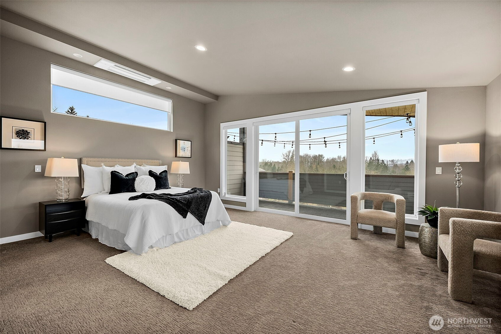 Are you looking for a modern luxury home for sale in Auburn with space to entertain, smart upgrades, and peaceful, unobstructed views? Located in the River Rock neighborhood, this single family home offers 4 bedrooms, 3 bathrooms, and 3,658 square feet of thoughtfully designed living space built in 2021. The main level features an open-concept layout with a large chef’s kitchen complete with an industrial-size refrigerator, walk-in pantry, and direct access to a spacious balcony with an outdoor fireplace overlooking the surrounding landscape. Smart home features, high tech cabling, air conditioning, and ceiling fans provide comfort and convenience throughout the home. The top floor private suite offers its own balcony, spa style bathroom, and a dedicated washer and dryer, creating a peaceful retreat away from the main living areas. The lower level expands the living space with a rec room featuring a projector, large screen, and wet bar, with direct access to the patio for seamless indoor outdoor living. Set on a 0.29 acre lot, the grounds include more than $250,000 in upgrades including terraced garden areas, custom retaining walls, rockery, a fire pit gathering area, irrigation, and black steel fencing with treated wood posts. An electric gated entrance, security system, and finished three car garage add convenience, class and privacy.