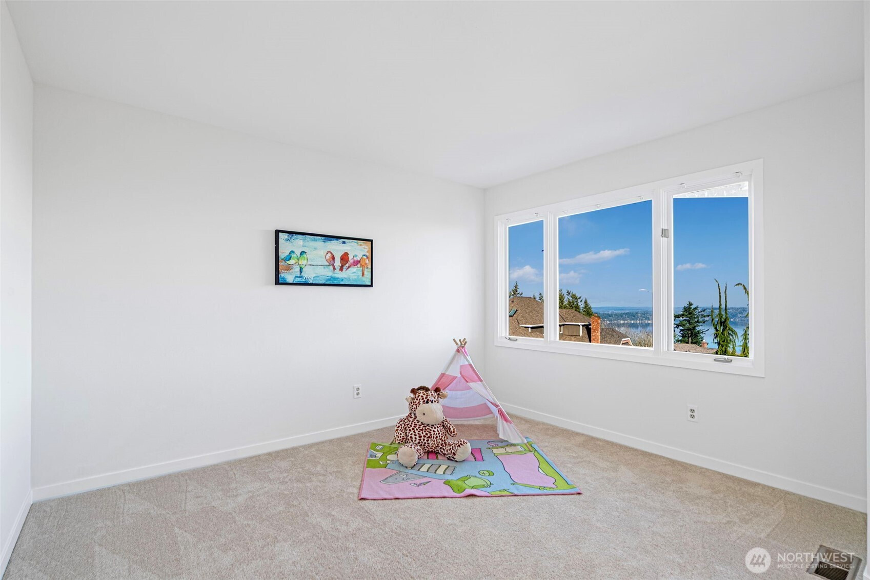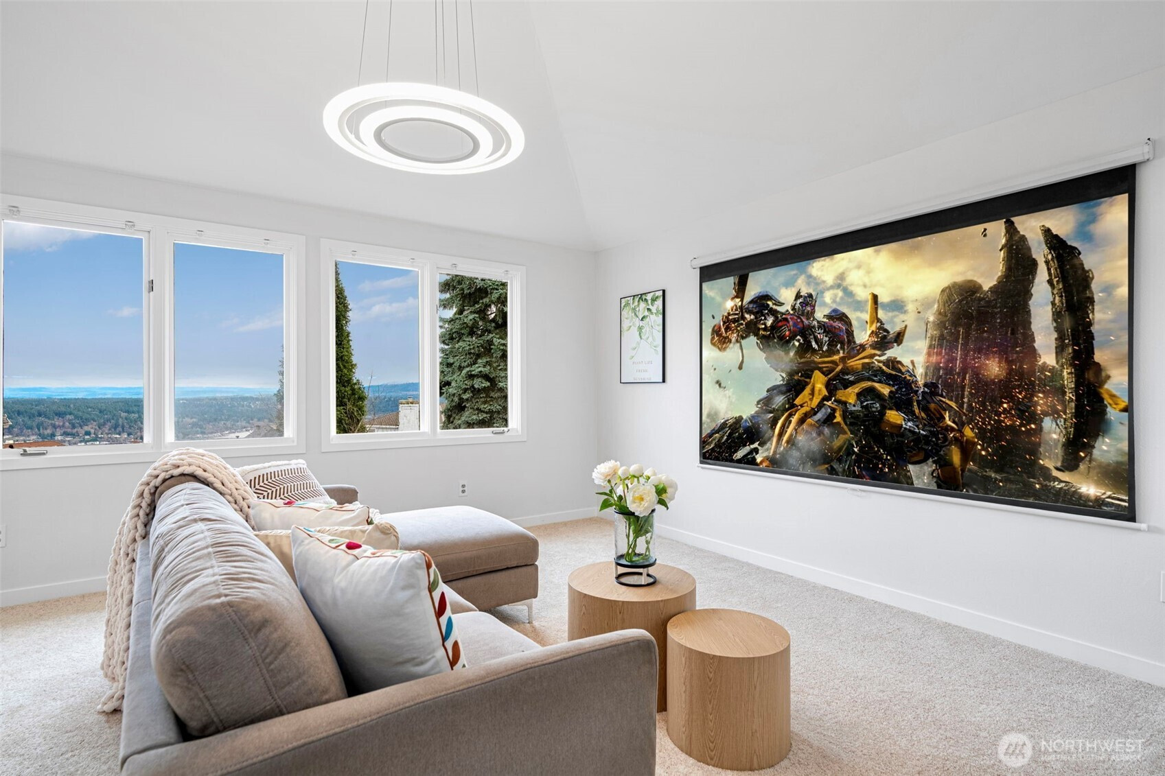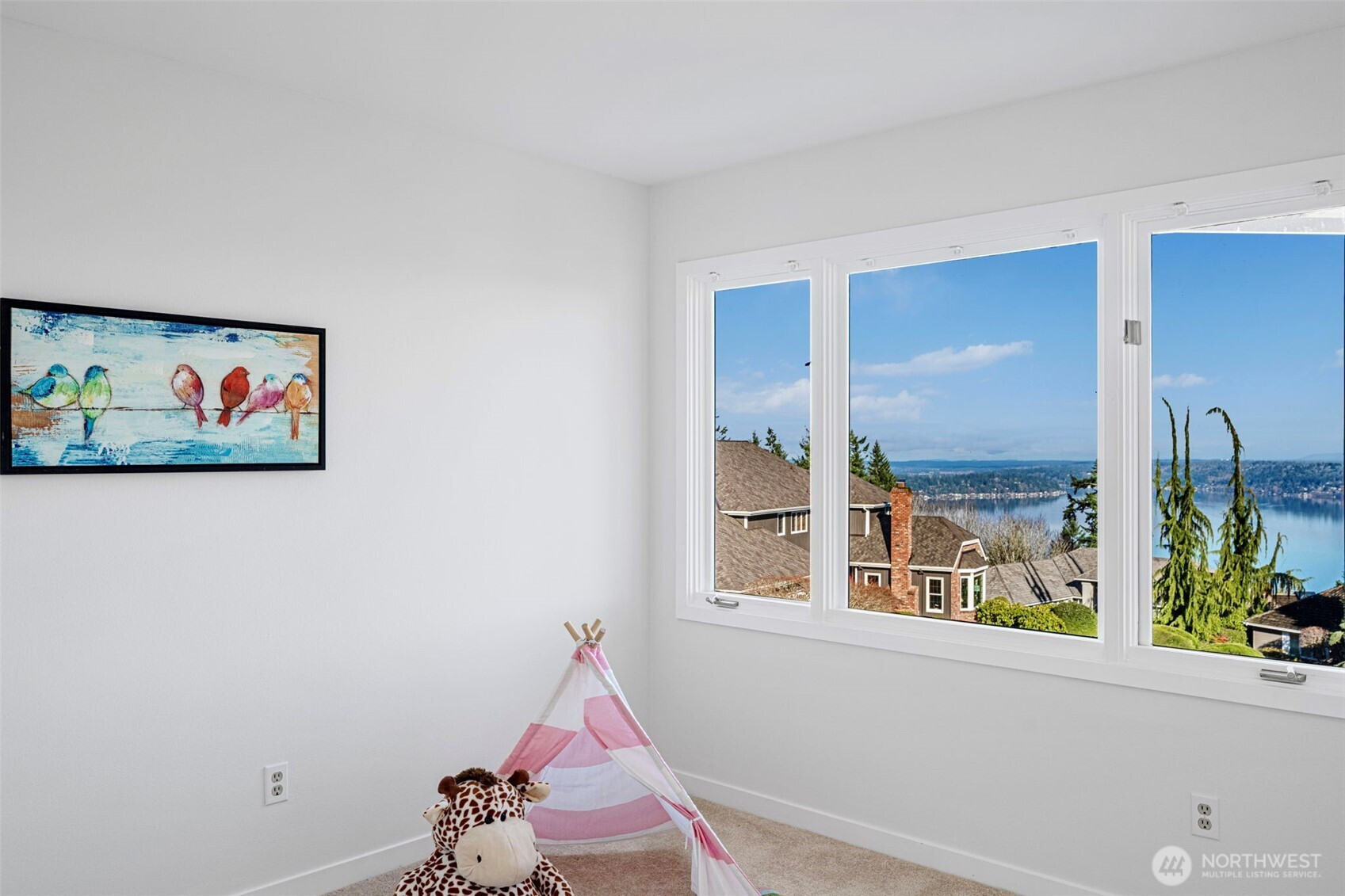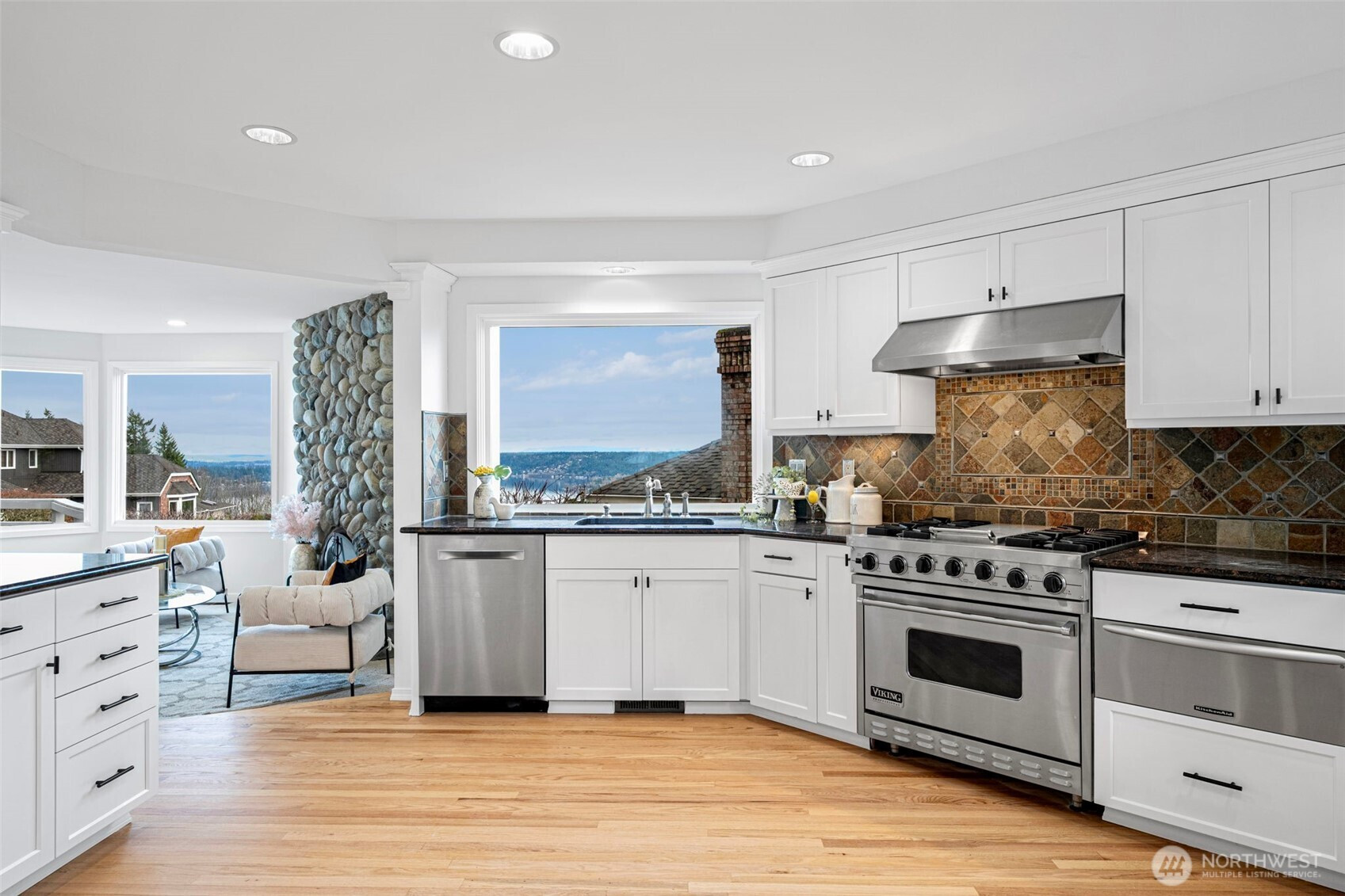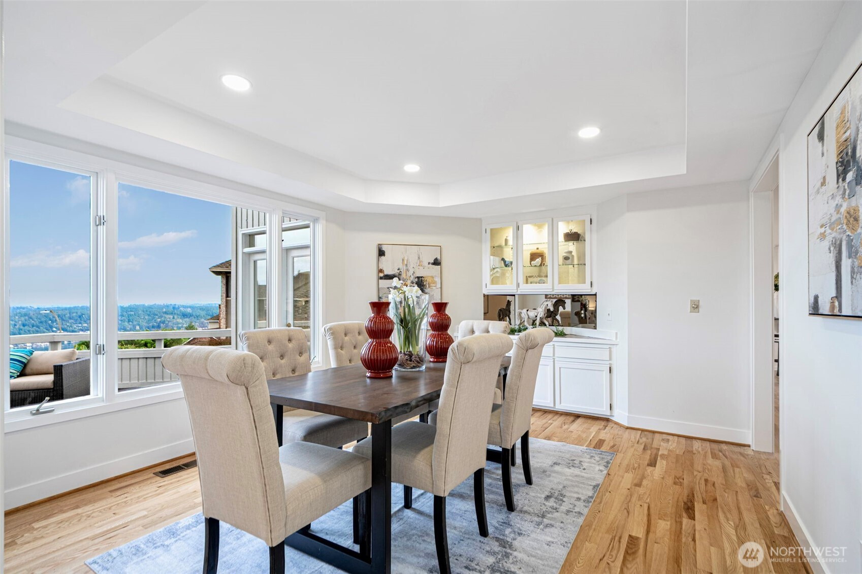 Stunning 180-degree panoramic views of Lake Sammamish, Mt. Baker and the Cascade Mountains define this elegant two-story Lakemont home in the sought-after Vuemont community. Enjoy breathtaking scenery from multiple living spaces and the backyard, offering a rare blend of privacy and views. The bright, open floor plan is designed for both everyday living and entertaining, featuring a chef’s kitchen with bar seating and abundant natural light. The dramatic high-ceiling living room flows seamlessly to a large view deck, perfect for gatherings or quiet evenings overlooking the landscape.The home offers 4 bedrooms and 3.25 baths, including a flexible main-floor office/den with a nearby shower, ideal for guests or multi-generational living. Upstairs features a spacious primary suite with walk-in closet, additional bedrooms and a generous bonus room providing excellent separation of space. Recent updates include a new roof (2023), fresh interior and exterior paint, updated bathrooms, refinished hardwood floors and new carpet, offering true move-in-ready peace of mind.Situated on a corner lot near a quiet cul-de-sac, the 10,091 sq ft lot includes a scenic backyard with views and excellent usability. Exceptional location close to top-rated schools, neighborhood parks, shopping, dining, trails and year-round recreation, combining comfort, convenience and long-term value in one of Lakemont’s most desirable neighborhoods.