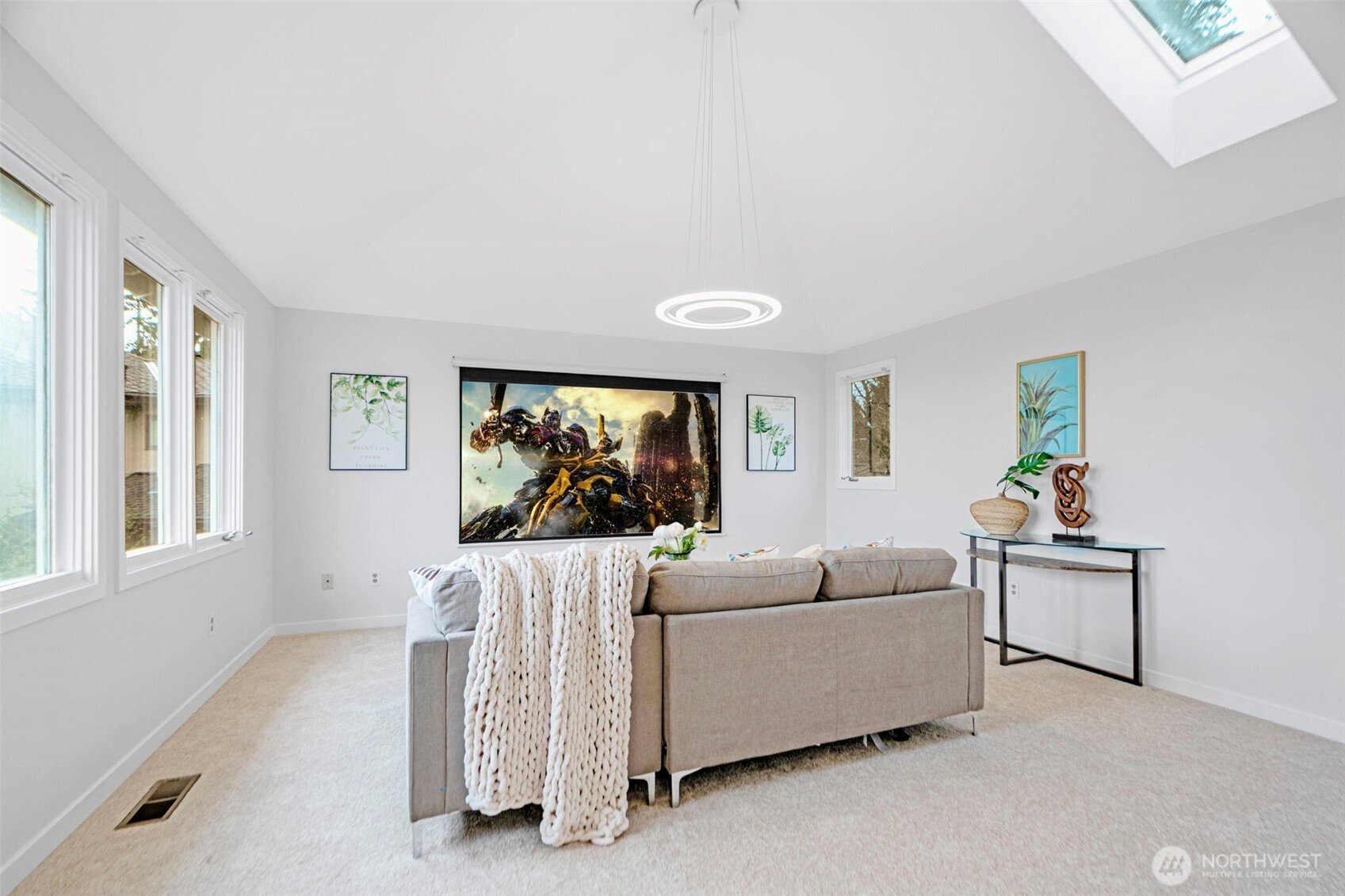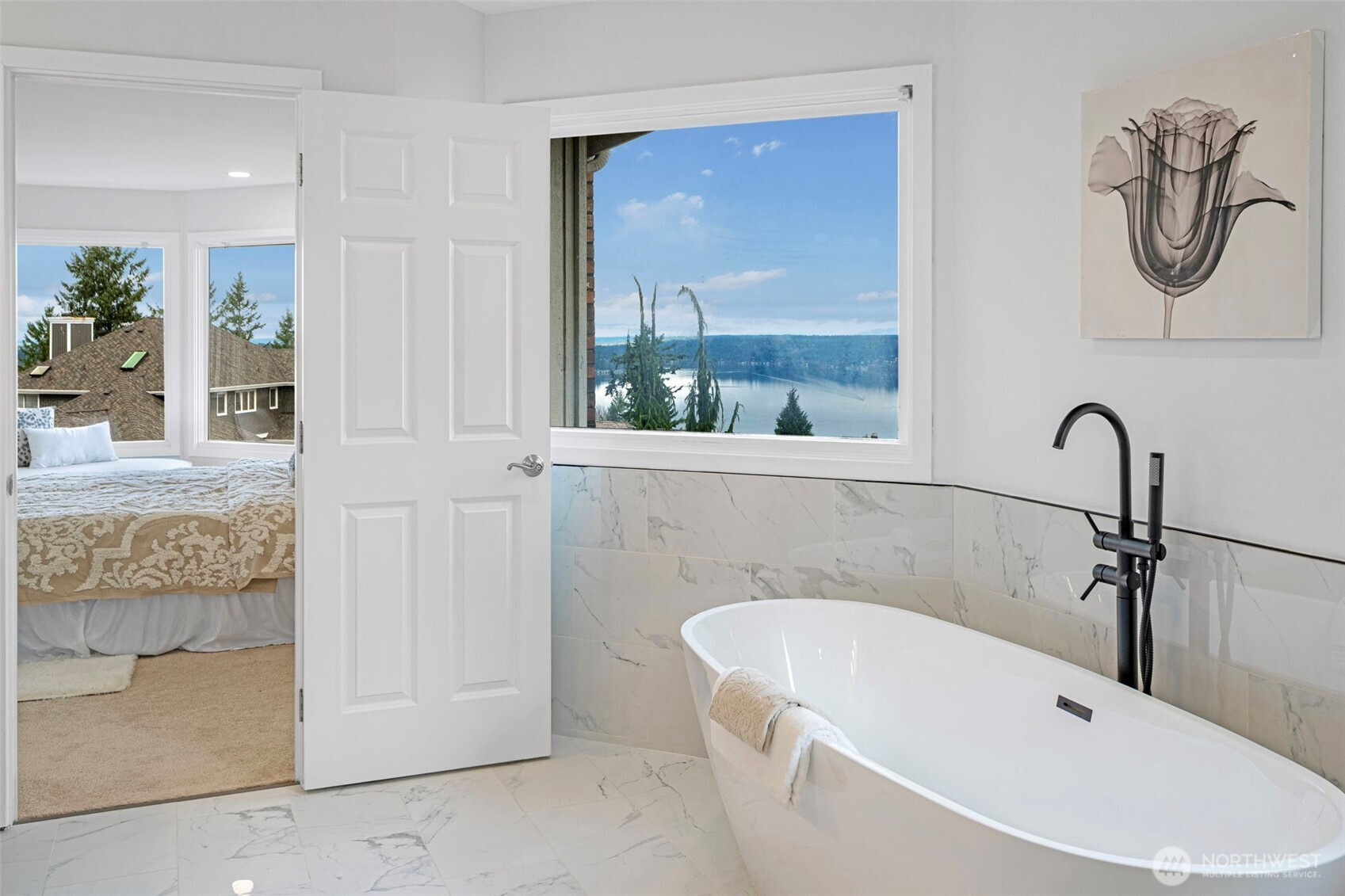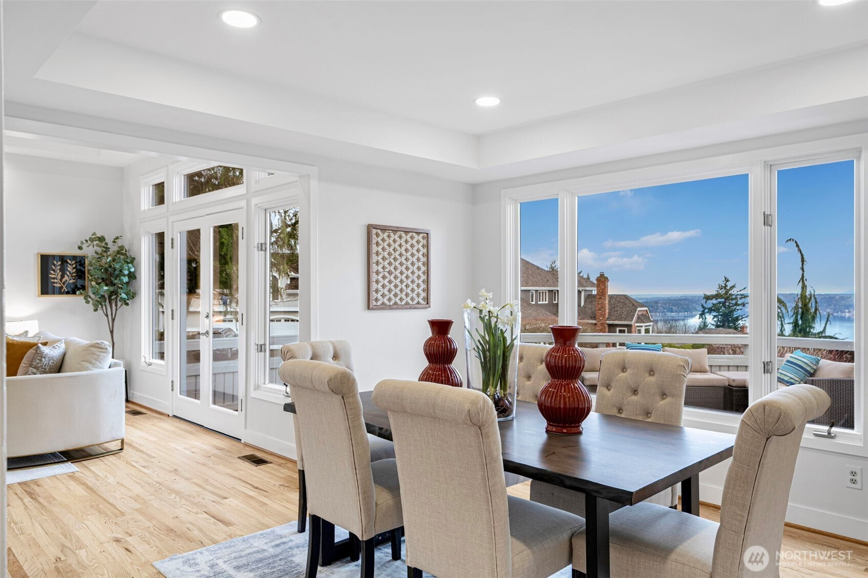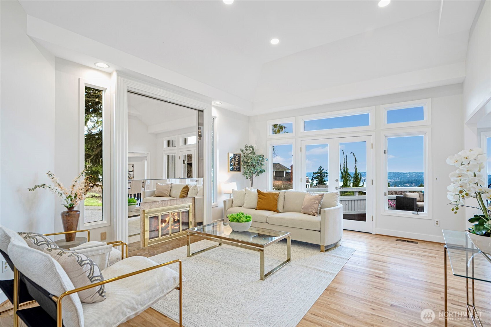 Stunning 180-degree panoramic views of Lake Sammamish, Mt. Baker and the Cascade Mountains define this elegant two-story Lakemont home in the sought-after Vuemont community. Enjoy breathtaking scenery from multiple living spaces and the backyard, offering a rare blend of privacy and views. The bright, open floor plan is designed for both everyday living and entertaining, featuring a chef’s kitchen with bar seating and abundant natural light. The dramatic high-ceiling living room flows seamlessly to a large view deck, perfect for gatherings or quiet evenings overlooking the landscape.The home offers 4 bedrooms and 3.25 baths, including a flexible main-floor office/den with a nearby shower, ideal for guests or multi-generational living. Upstairs features a spacious primary suite with walk-in closet, additional bedrooms and a generous bonus room providing excellent separation of space. Recent updates include a new roof (2023), fresh interior and exterior paint, updated bathrooms, refinished hardwood floors and new carpet, offering true move-in-ready peace of mind.Situated on a corner lot near a quiet cul-de-sac, the 10,091 sq ft lot includes a scenic backyard with views and excellent usability. Exceptional location close to top-rated schools, neighborhood parks, shopping, dining, trails and year-round recreation, combining comfort, convenience and long-term value in one of Lakemont’s most desirable neighborhoods.