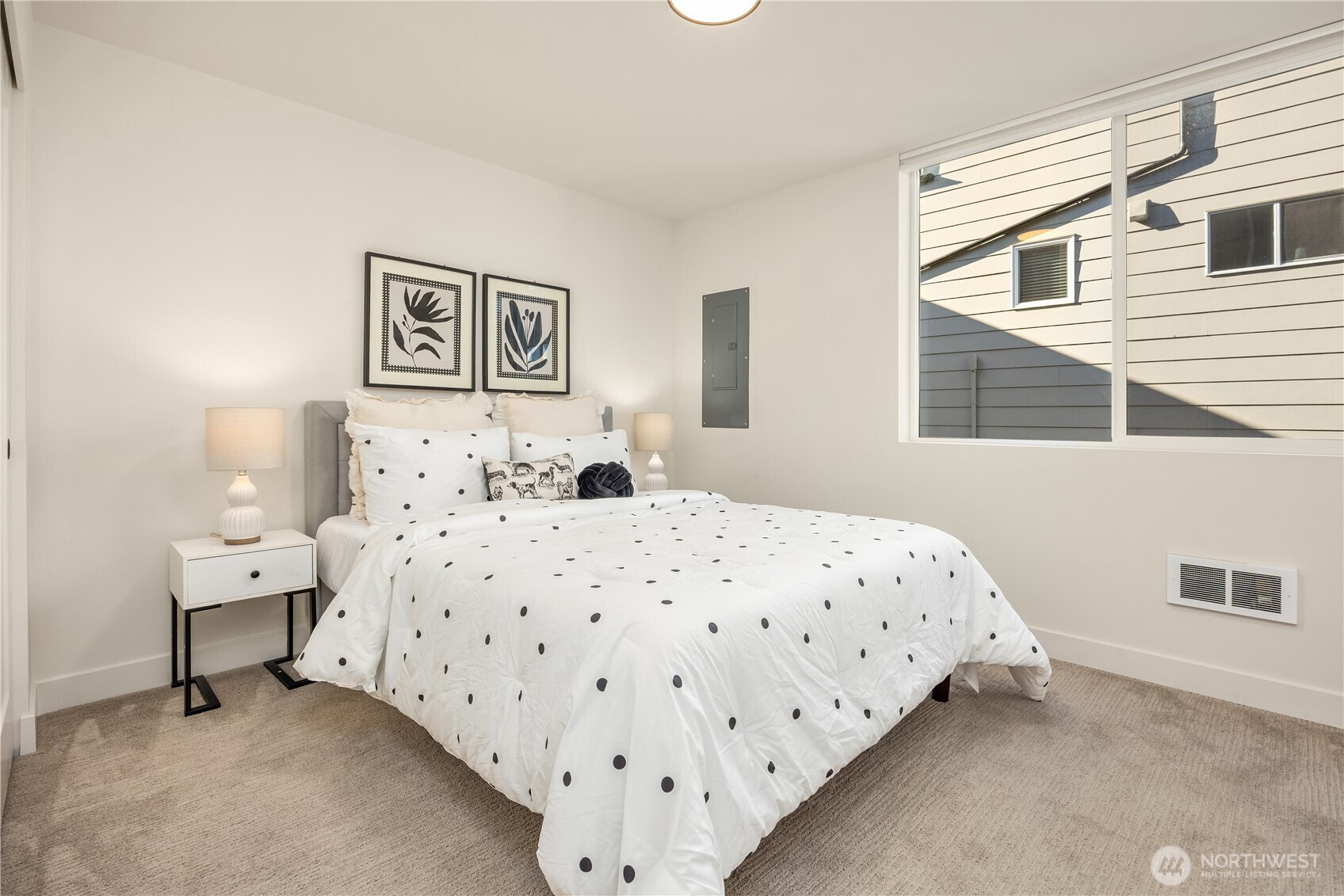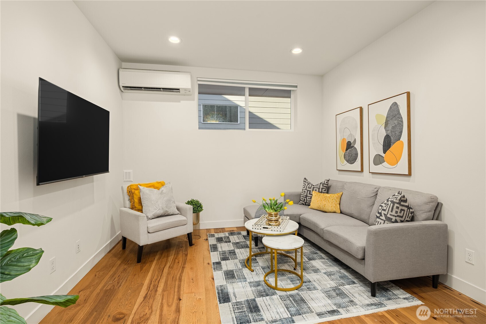 Discover vibrant urban living in Wallingford, just north of Lake Union, in this elegant contemporary residence by Coombes Development. Showcasing superior craftsmanship, this like-new home features a thoughtful open floorplan with clean lines, abundant natural light, and wide-plank hardwood floors throughout. The professionally equipped kitchen offers custom cabinetry and vein-infused quartz slab countertops, perfect for any culinary enthusiast. The three-bedroom layout provides comfortable and flexible living across three levels. Enjoy modern amenities including efficient heating and cooling, a private rooftop deck, bike storage. Steps to shops, dining, and entertainment, with easy access to Gas Works Park, the Burke-Gilman Trail, I-5, and nearby Microsoft Connector stops.