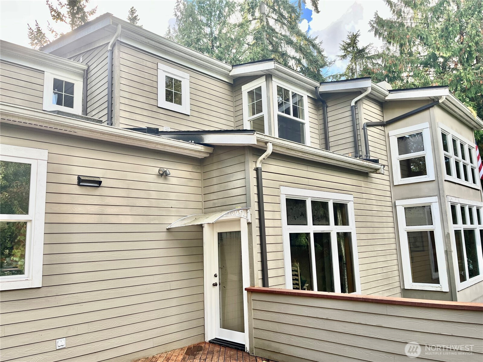 Beautifully private and surrounded by nature, this spacious home sits on a quiet, flat street with lush greenbelt privacy. Enjoy low-maintenance living and a sunny, oversized deck with treetop views. The light-filled kitchen and great room offer extensive granite counters and a large pantry. A 600 sq. ft. finished basement provides flexible space for a media room, gym, office, or play area. Upstairs features a generous primary suite, three additional large bedrooms, 2.5 baths, and a convenient laundry room. Skylights brighten the home throughout, and ample storage adds easy organization. Centrally located near top schools, parks, the library, and the Amazon Shuttle stop.