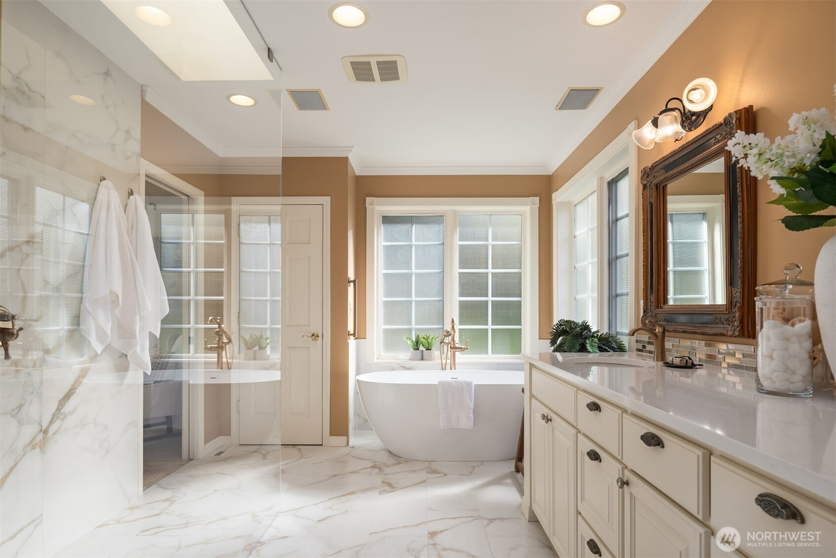 (503) 893-8874This stunning Campus Estates home sits on a premier corner lot and showcases soaring vaulted ceilings, a grand staircase, and elegant formal living and dining rooms. The chef’s kitchen features high-end appliances, including a Sub-Zero refrigerator and freezer, Viking range, and dual dishwashers. The main-floor primary suite offers an updated spa-inspired bath with a soaking tub, walk in closet and a private office. Upstairs, discover three additional bedrooms including a second ensuite, guest bath, bonus room, and laundry. Lush, mature landscaping surrounds a private patio designed for relaxing and effortless entertaining. All conveniently located near restaurants, shopping, transit, and I-5.