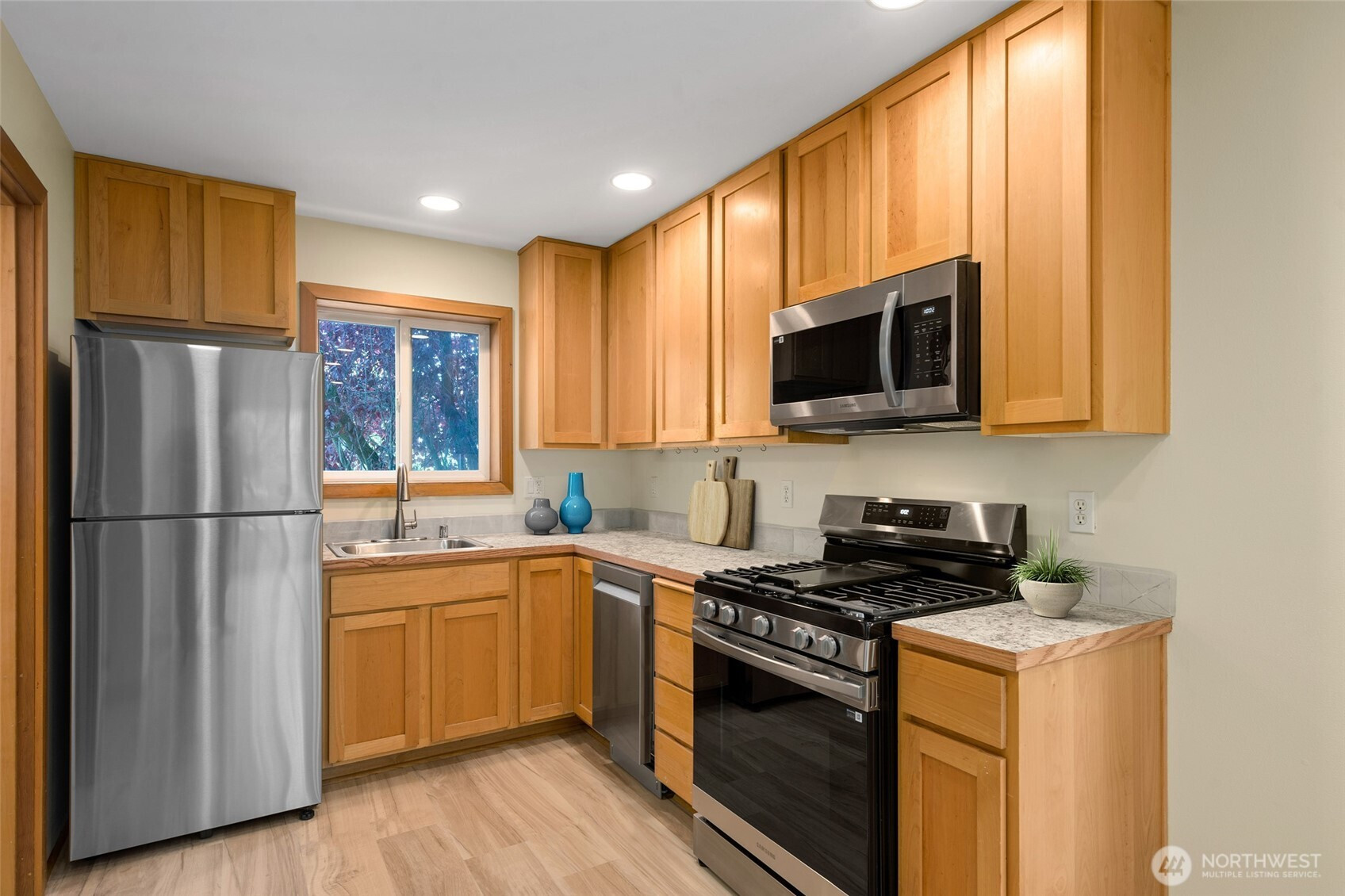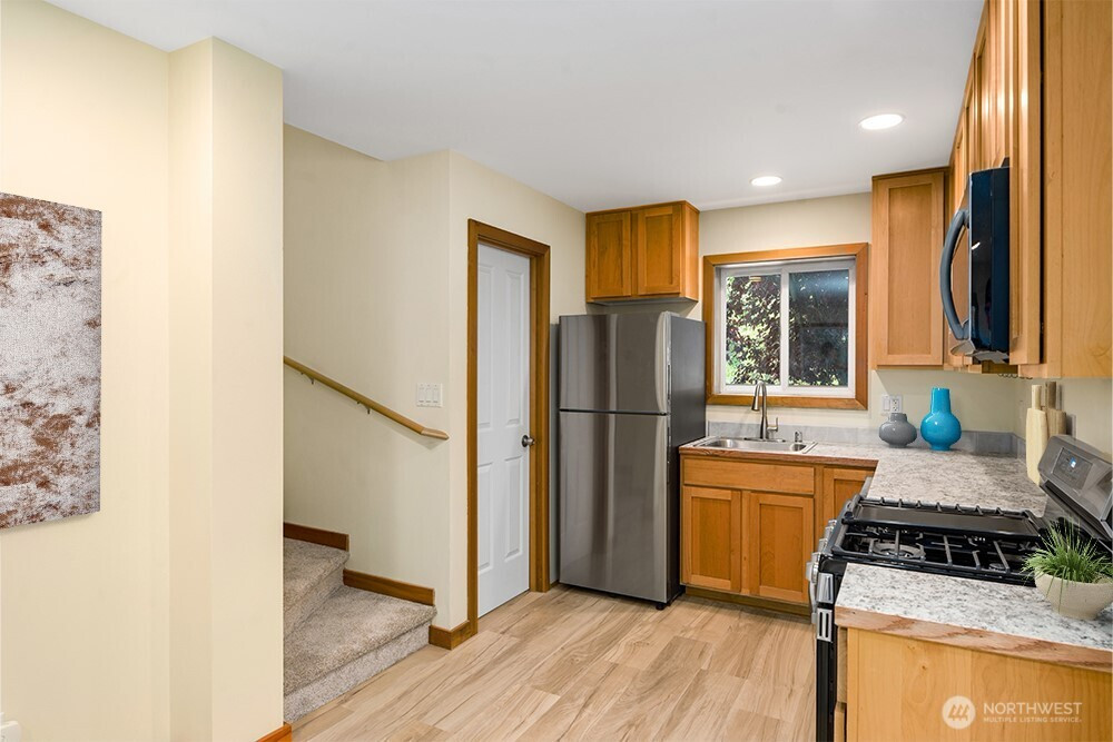 Prime location for this newly remodeled end-unit Townhome in the heart of the vibrant Alaska Junction. Updates include new Paint, Carpet, & beautiful LVP Flooring in the living spaces. The Kitchen has new Countertops, Sink, & Samsung SS Appliance set including Gas Range. Bedrooms upstairs feature Vaulted Ceilings & new Carpet. Lower-level Bedroom has access to private, Fenced Patio + Garden Space. Walk-in Utility Room with new Washer/Dryer. Fantastic walkable location near Whole Foods, Trader Joe's, QFC, Gym, & Rapid Ride Transit stop. Also nearby are multiple Restaurants, Cafes, Farmer's Market, Bars, & all the boutique shops on California Ave. Dedicated parking space right outside. No HOA or Dues. Easy access to WS Bridge or Alki.