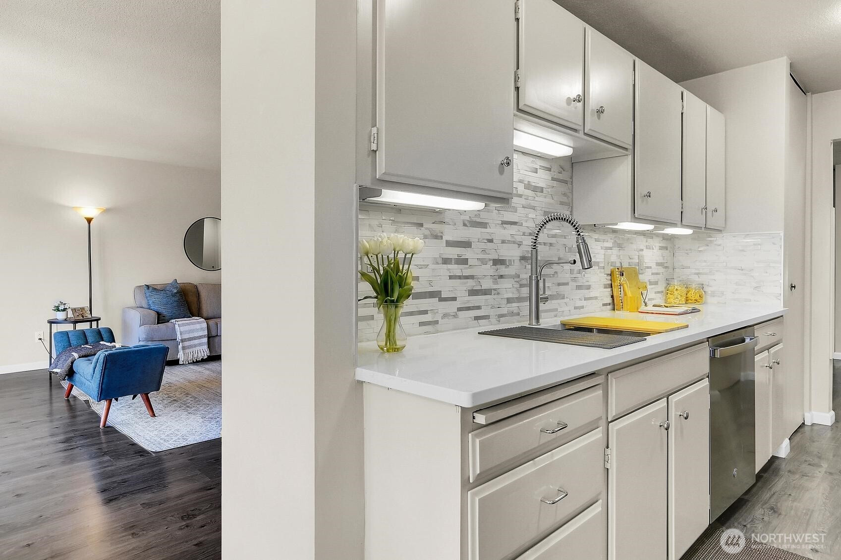 This spacious 2 bedroom 2 bath at The Laurelhurst is a great opportunity to purchase. Large living room that opens up to a south facing patio for lots of sunshine year around. The open layout features laminate flooring throughout and a massive living room with ample space to host. Updated kitchen with new appliances and white silestone counters and tons of storage space. Well-run HOA with designated parking, storage unit, game room, on-site gym. University Village, Light Rail & Seattle Children's, Burk Gillman Trail. Walk score of 85!