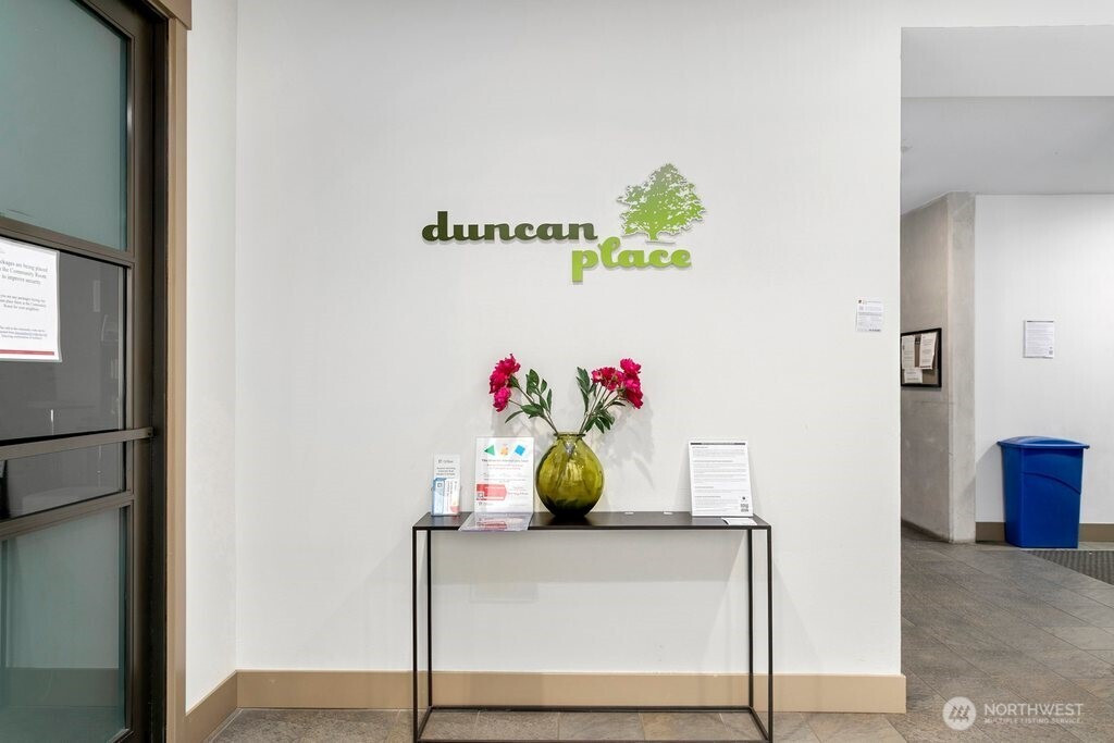 Experience city living at Duncan Place Condominiums, ideally situated in Seattle’s dynamic University Districtneighborhood. Thoughtfully designed with comfort and convenience in mind, this quiet East-facing residence features an open-concept great room, and large windows that fill the space with natural light. Enjoy the added ease of an in-unit washer and dryer. This secure, pet-friendly building offers exceptional amenities, including dedicated parking space, storage unit, guest parking, a community room, and elevator access. With no rental cap, it presents a fantastic opportunity for both homeowners and investors seeking strong rental potential.With an exceptional Walk Score of 93, dining, shopping, parks, transit and more are just steps away! Located moments from Downtown Seattle and the renowned University of Washington, this address offers unmatched accessibility and lifestyle appeal.