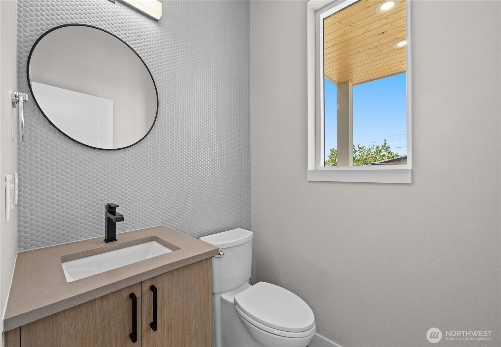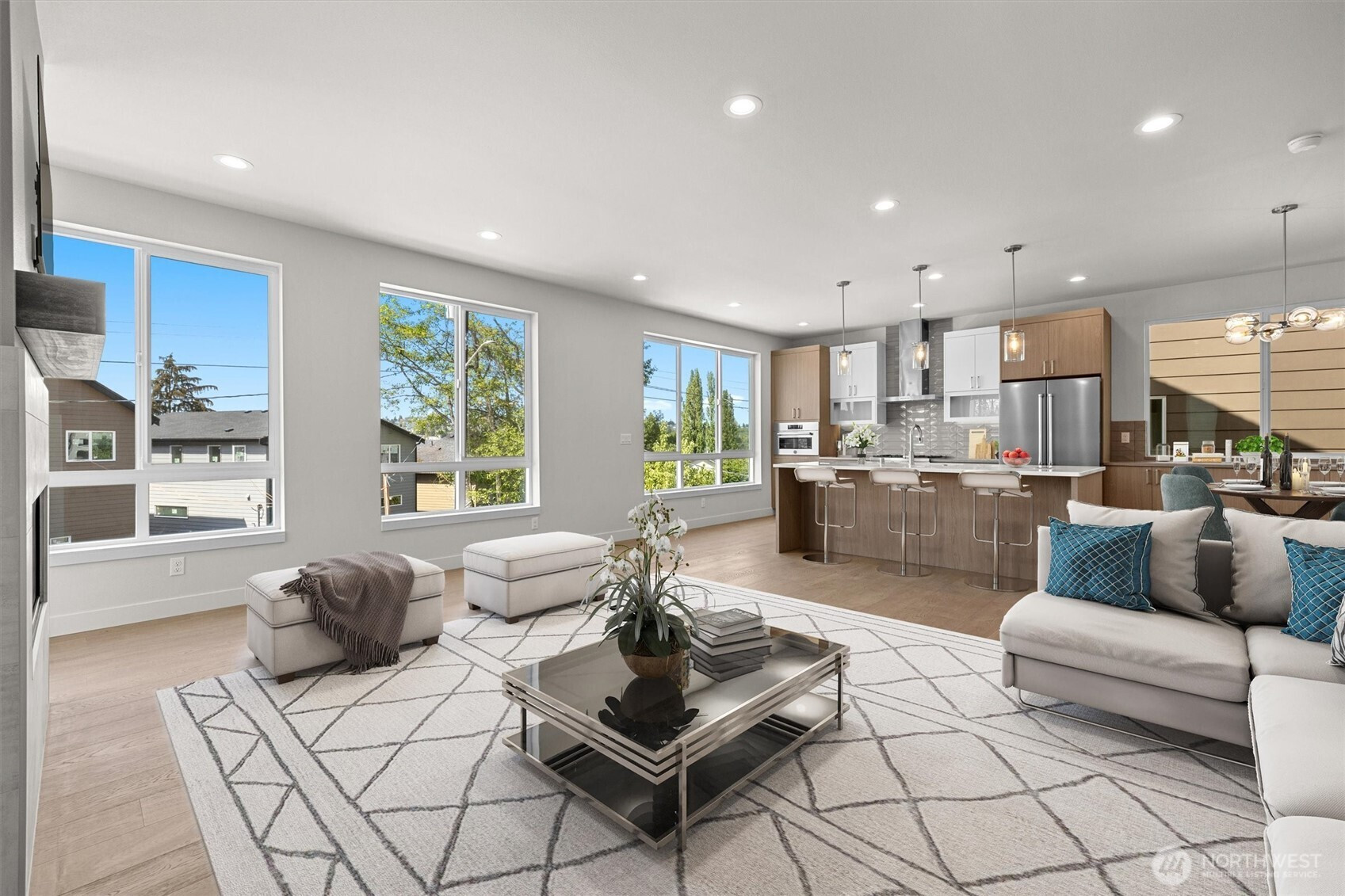 Welcome to Youngstown Reserve a premier community of luxury new construction homes! At the entry level you will find a guest room ensuite with 3/4 bath. Head upstairs to your great room where there is plenty of space for cooking alongside friends in the beautifully appointed kitchen w/European cabinetry, quartz counters, & high end appliances. You'll appreciate the designated dining area, living room with fireplace & the covered deck perfect for your BBQ. The spacious primary has lovely golf course views & features 5 piece bath with soaking tub, large shower & walk in closet. Highlights: gas furnace & forced air & mini split A/C, tankless H2O & 1 car garage. 10 minutes to DT Seattle and 5 minutes to Alki!